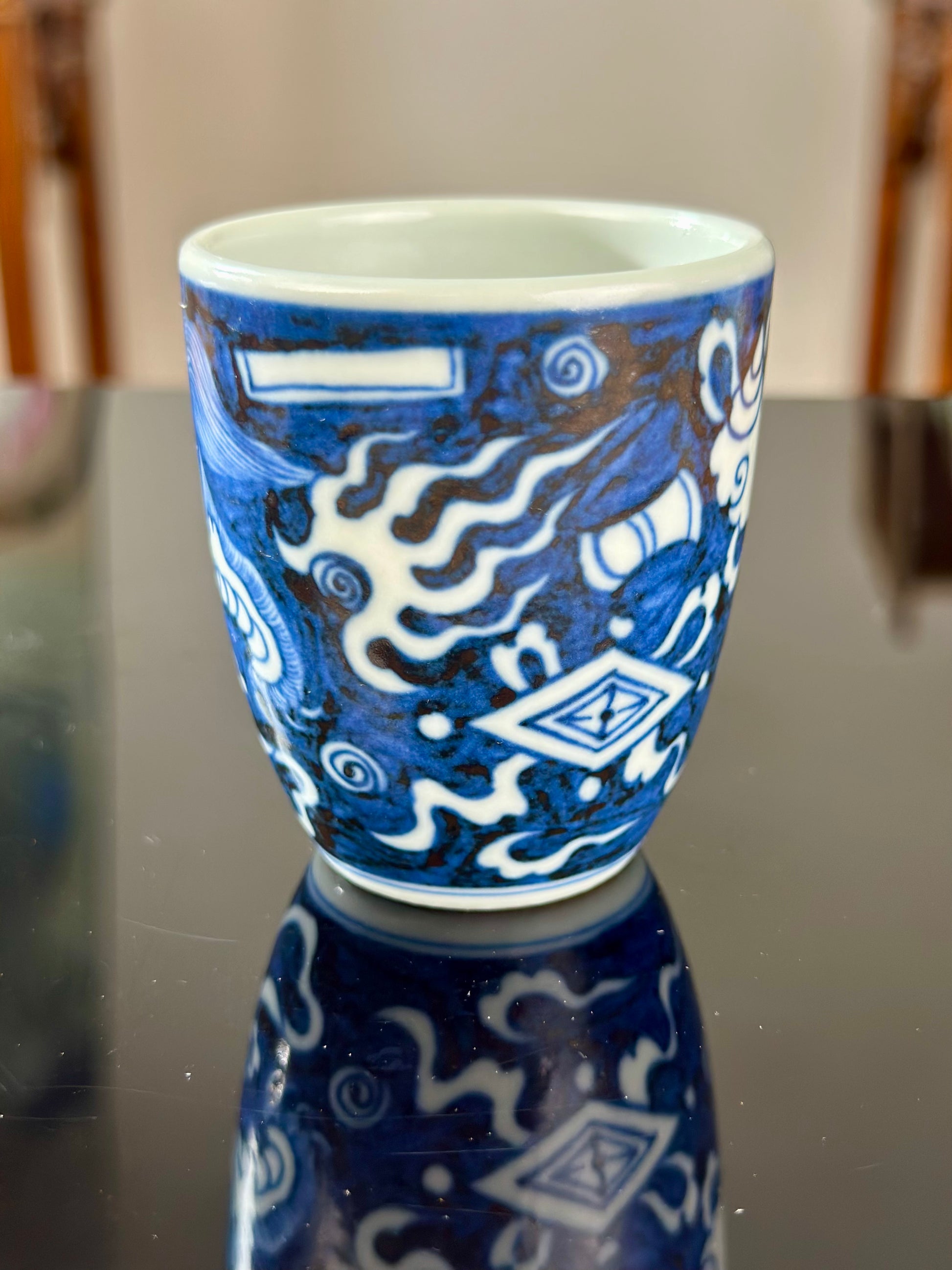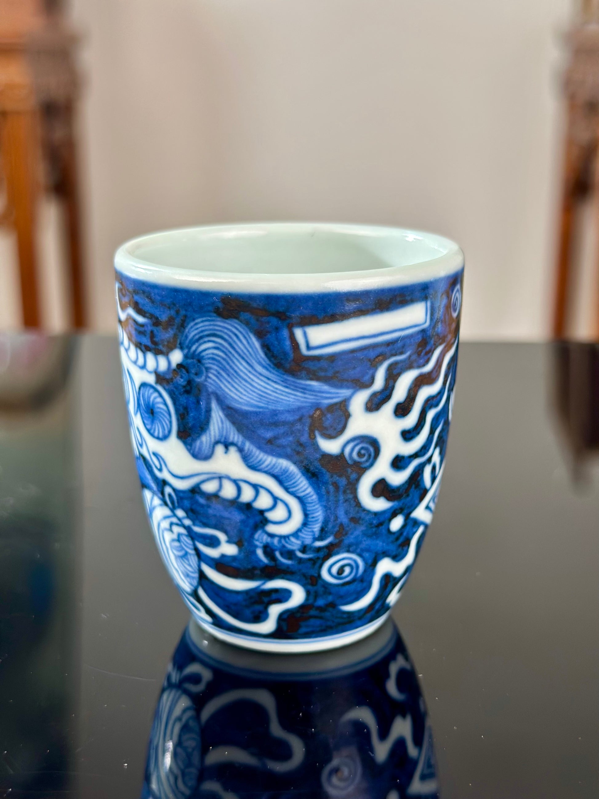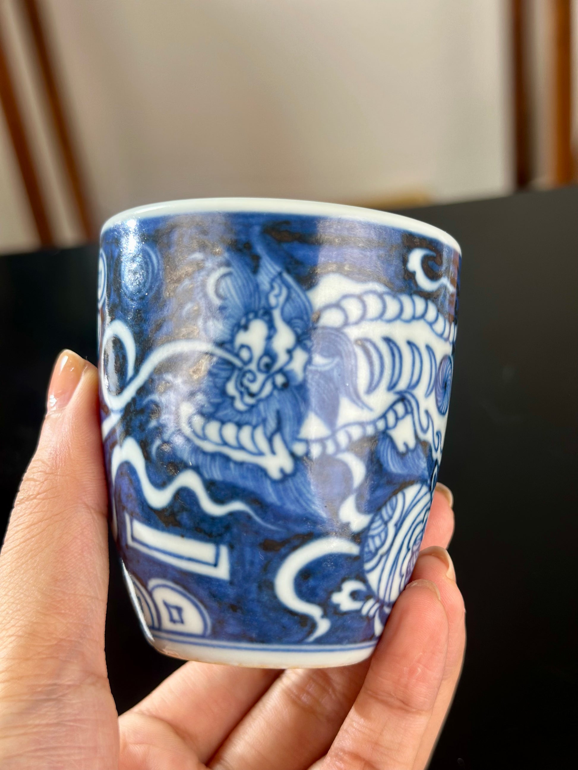 Hand Painted Chinese Blue And White Porcelain Classic Lion Pattern Jingdezhen Master Ceramic Artwork Teacup