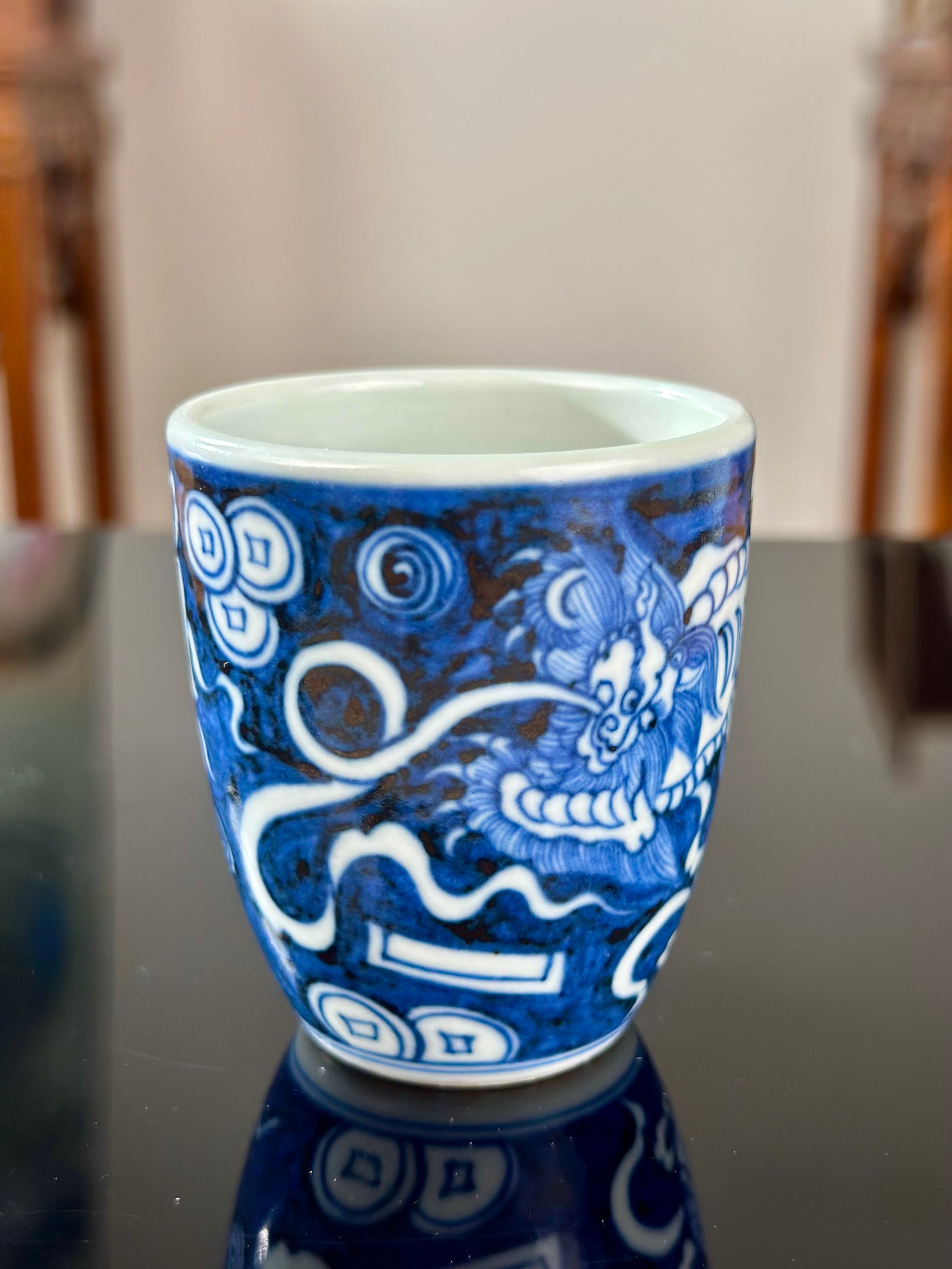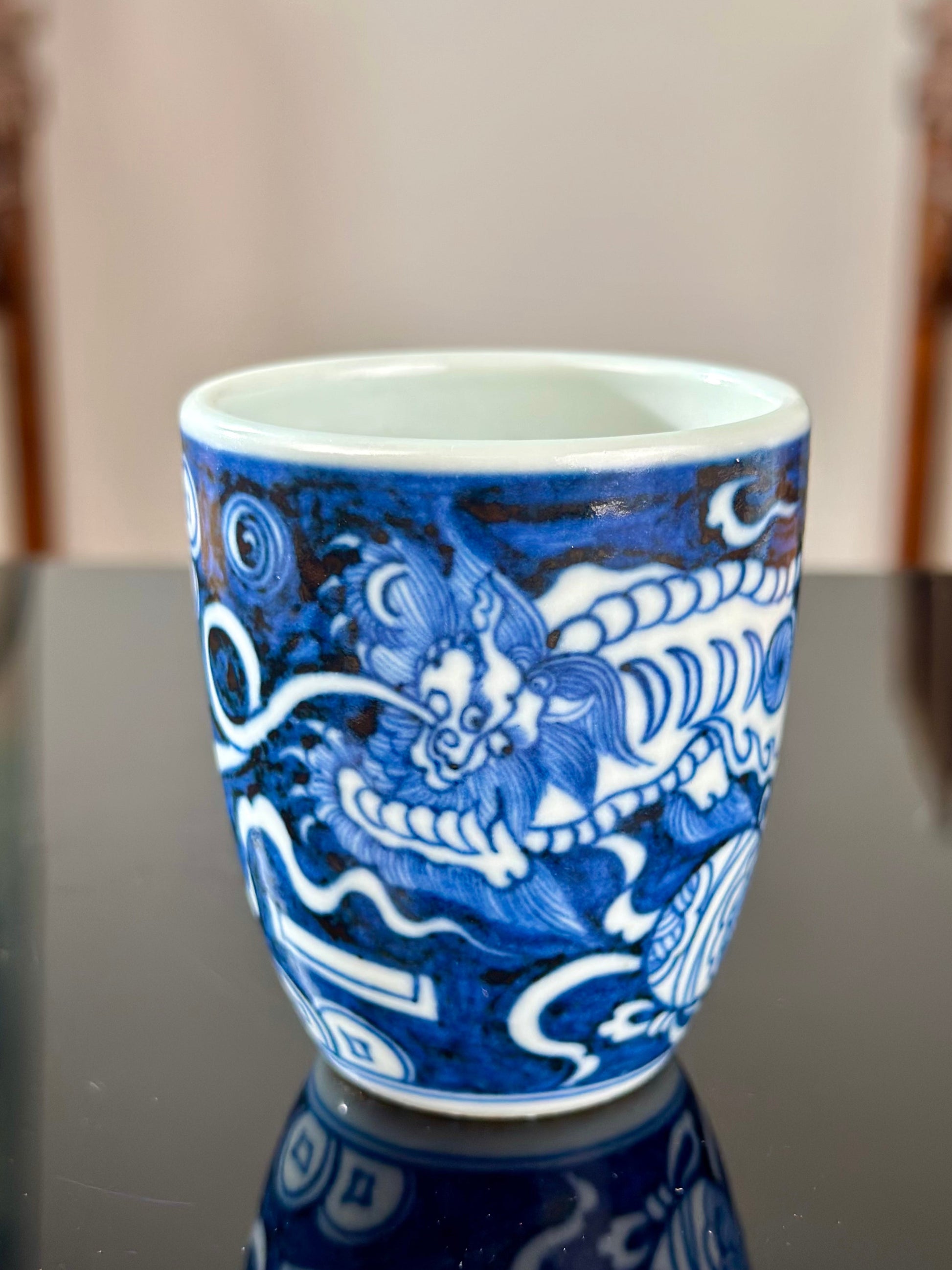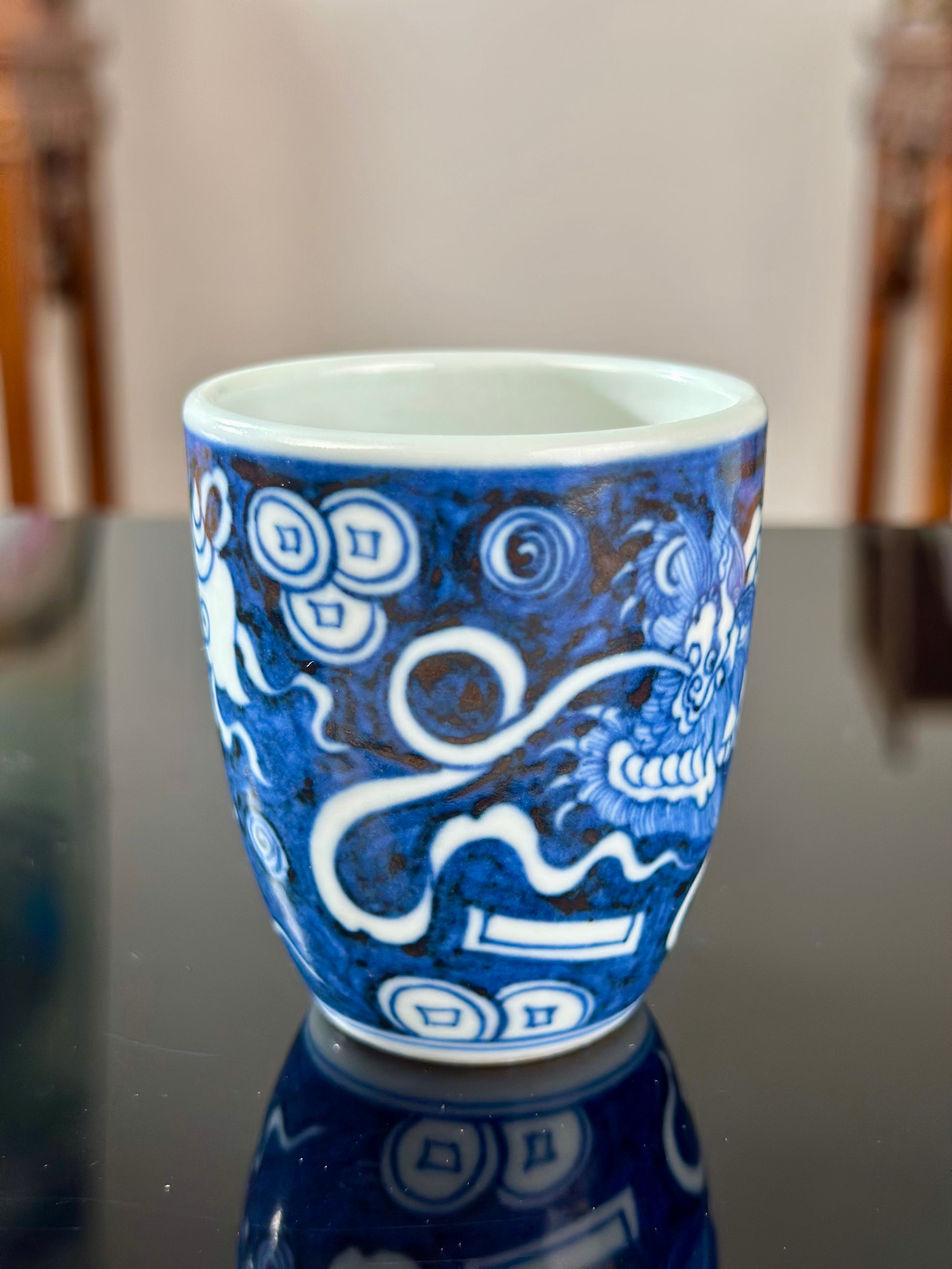 This Jingdezhen artwork teacup is handpainted with the Chinese lion pattern and by Jingdezhen experienced ceramic painter.