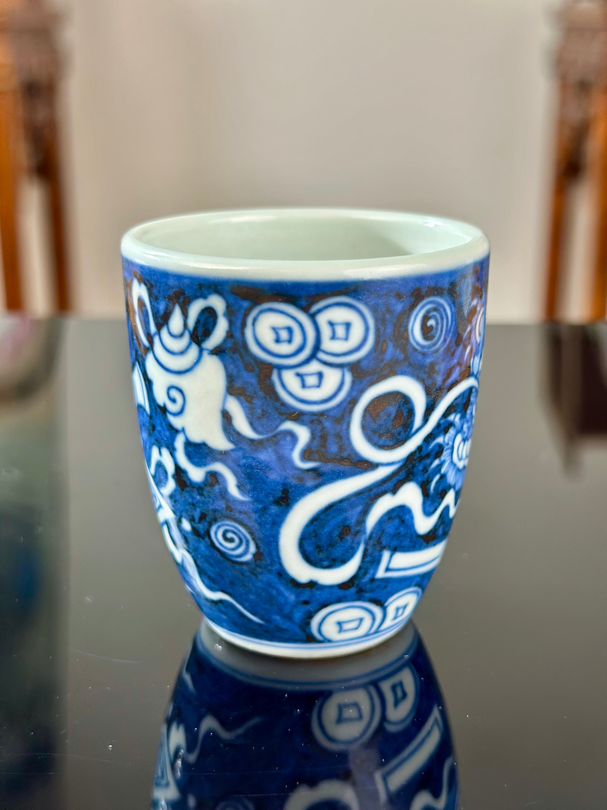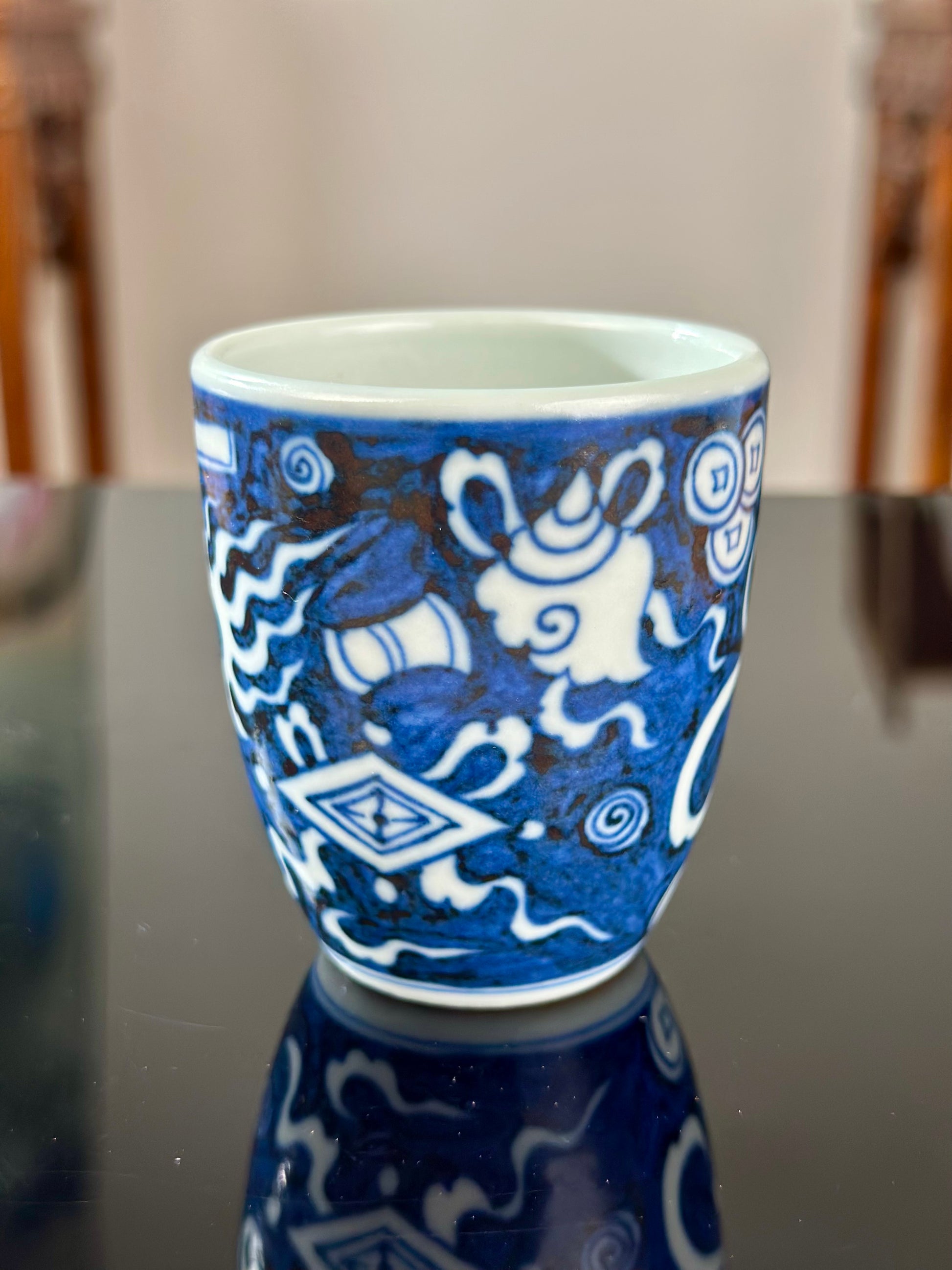 The pattern of this teacup comes from the traditional Chinese auspicious pattern -Varied Treasure lion, which is usually composed of lion, Chinese currency pattern Tongqian,varied treasure patterns. The lion is the king of beasts and has great deterrence. It is a symbol of exorcism.
