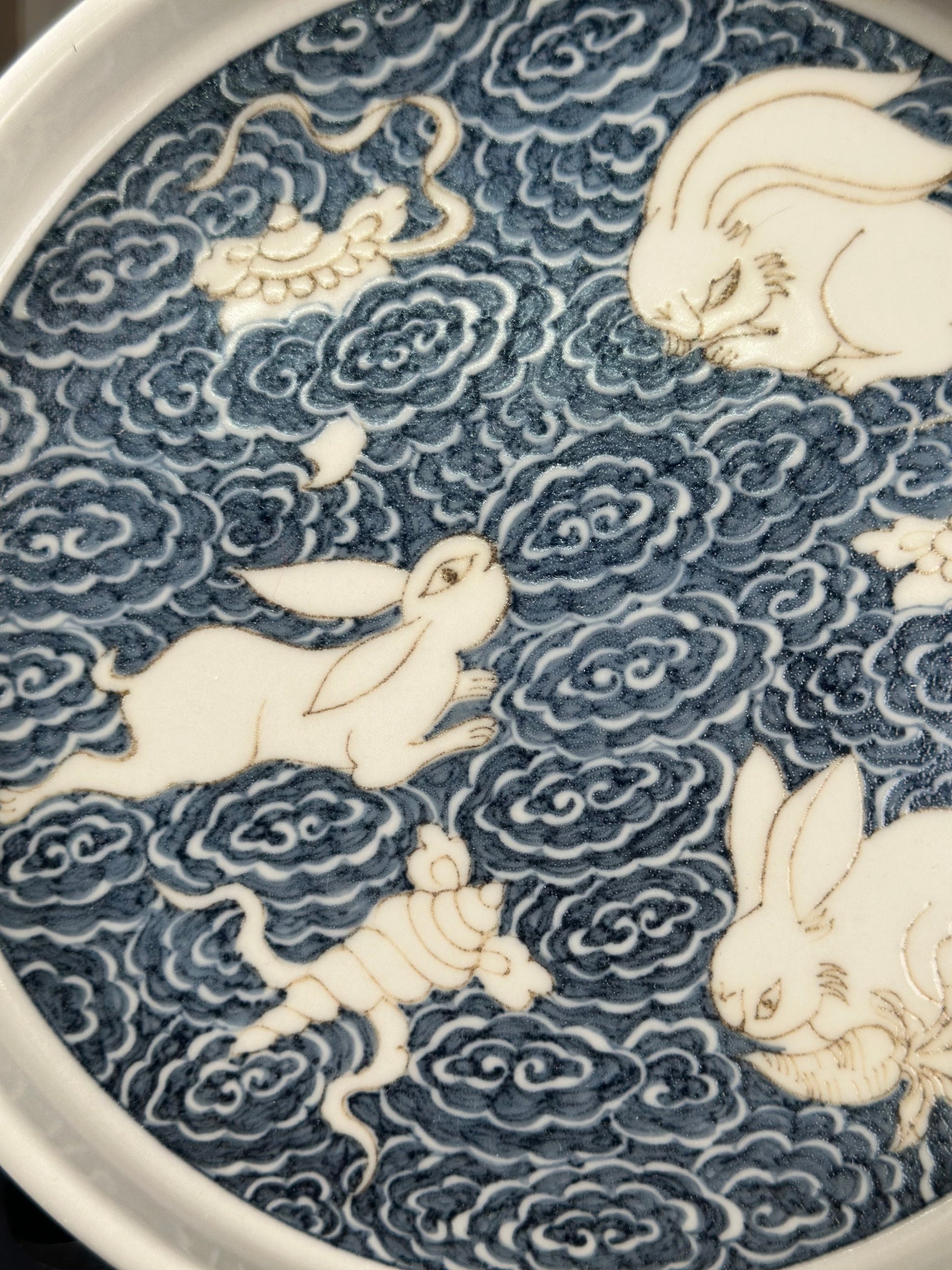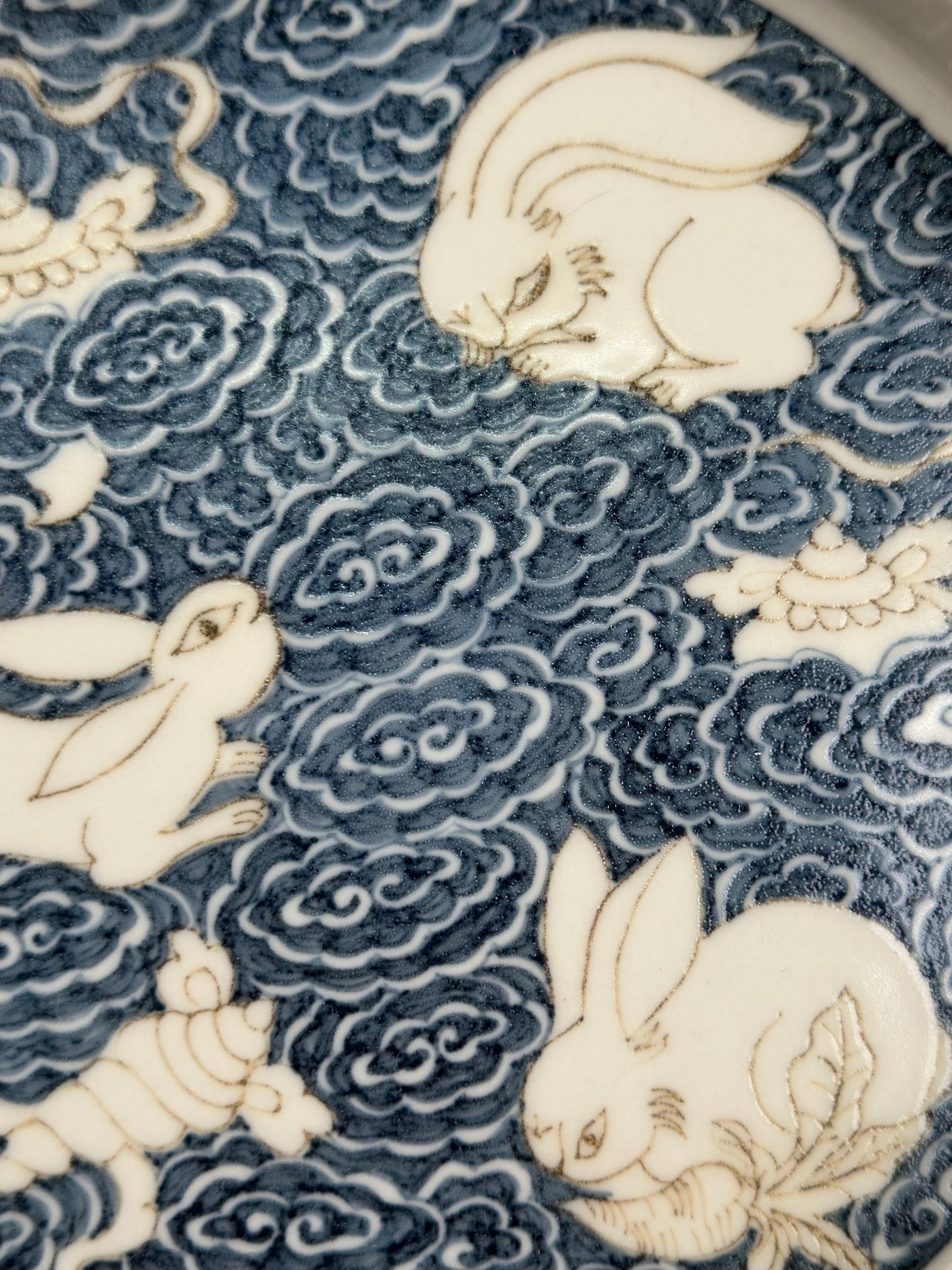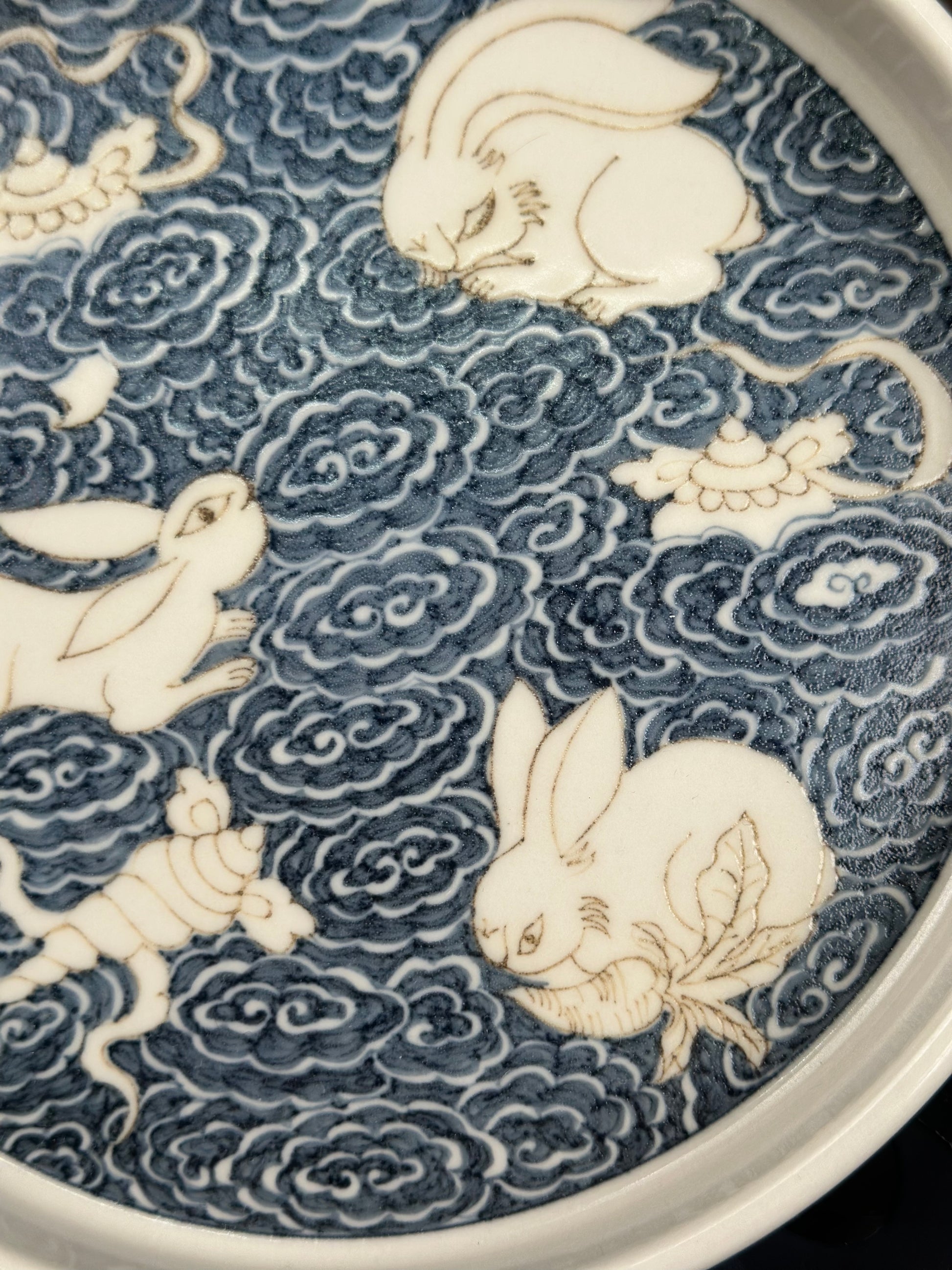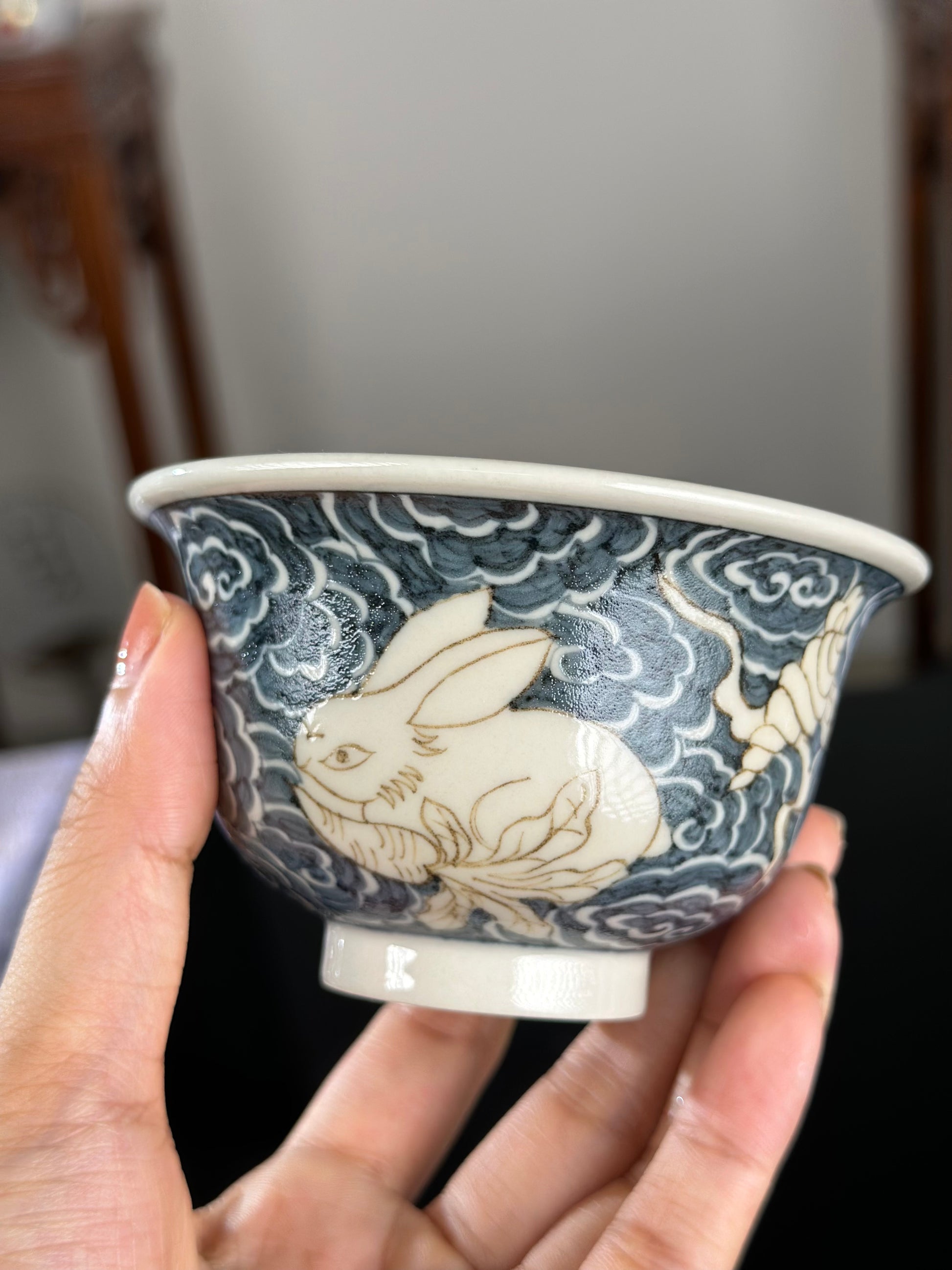 This extraordinary Underglaze Gold set is painted with a Chinese classical rabbit and treasure, ocean waves pattern. The "Assorted Treasures Rabbit" typically refers to a rabbit image that appears alongside various treasures in traditional auspicious patterns. This pattern typically symbolizes good fortune, wealth, longevity, and a multitude of children and grandchildren. The rabbit itself symbolizes gentleness, loveliness, and longevity in culture, and the combination of "Assorted Treasures" further enhances its symbolic meaning of wealth and prosperity.