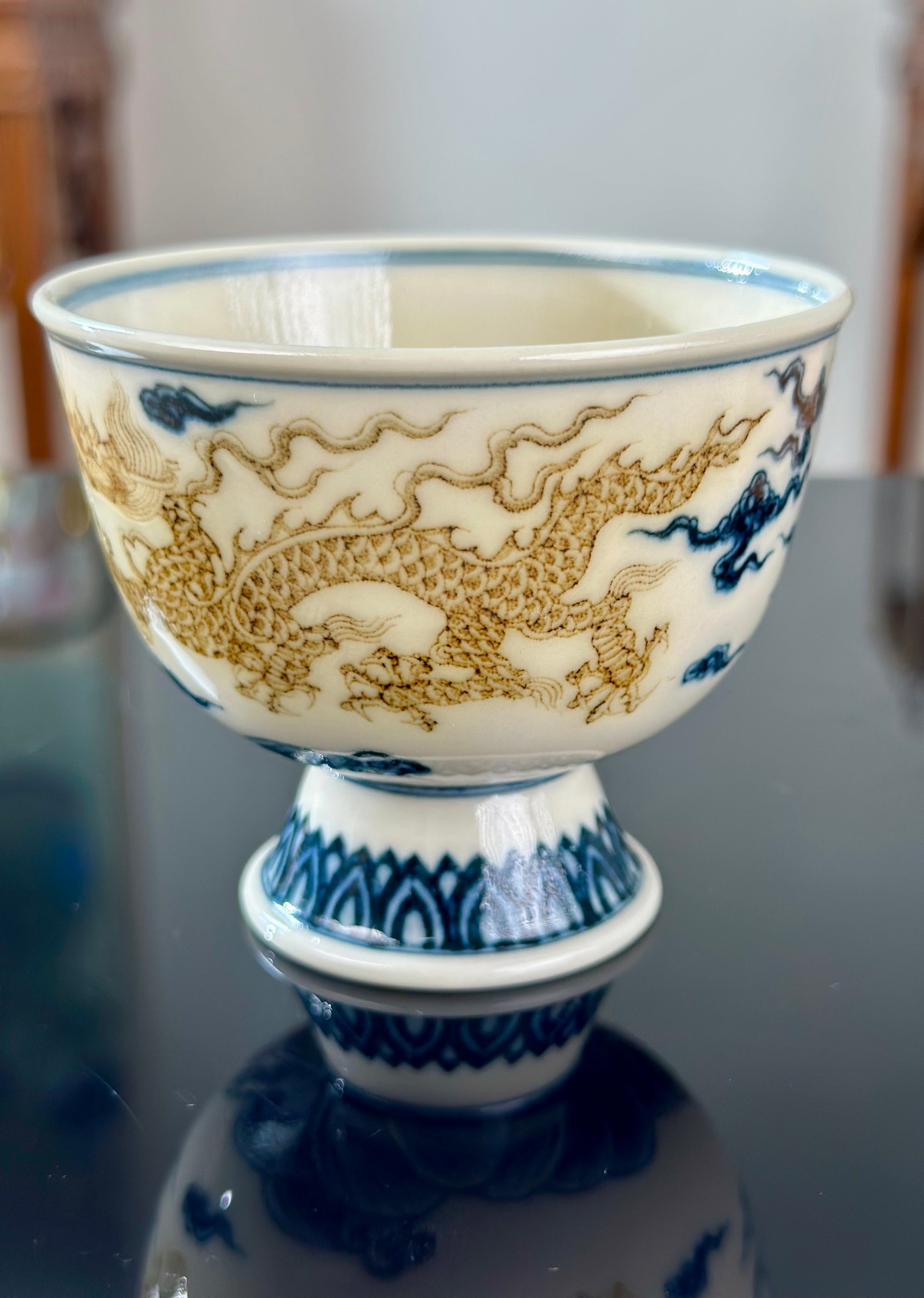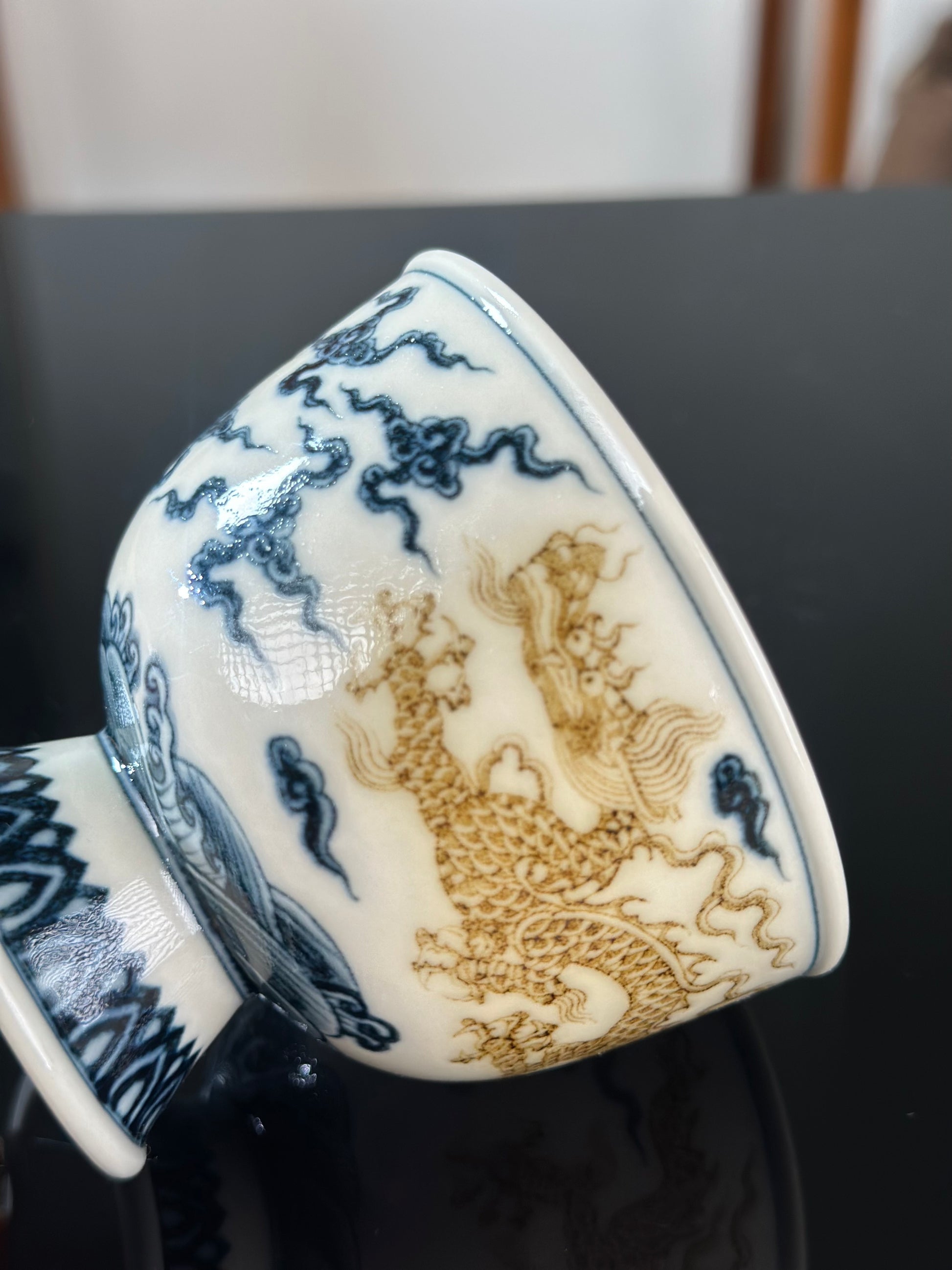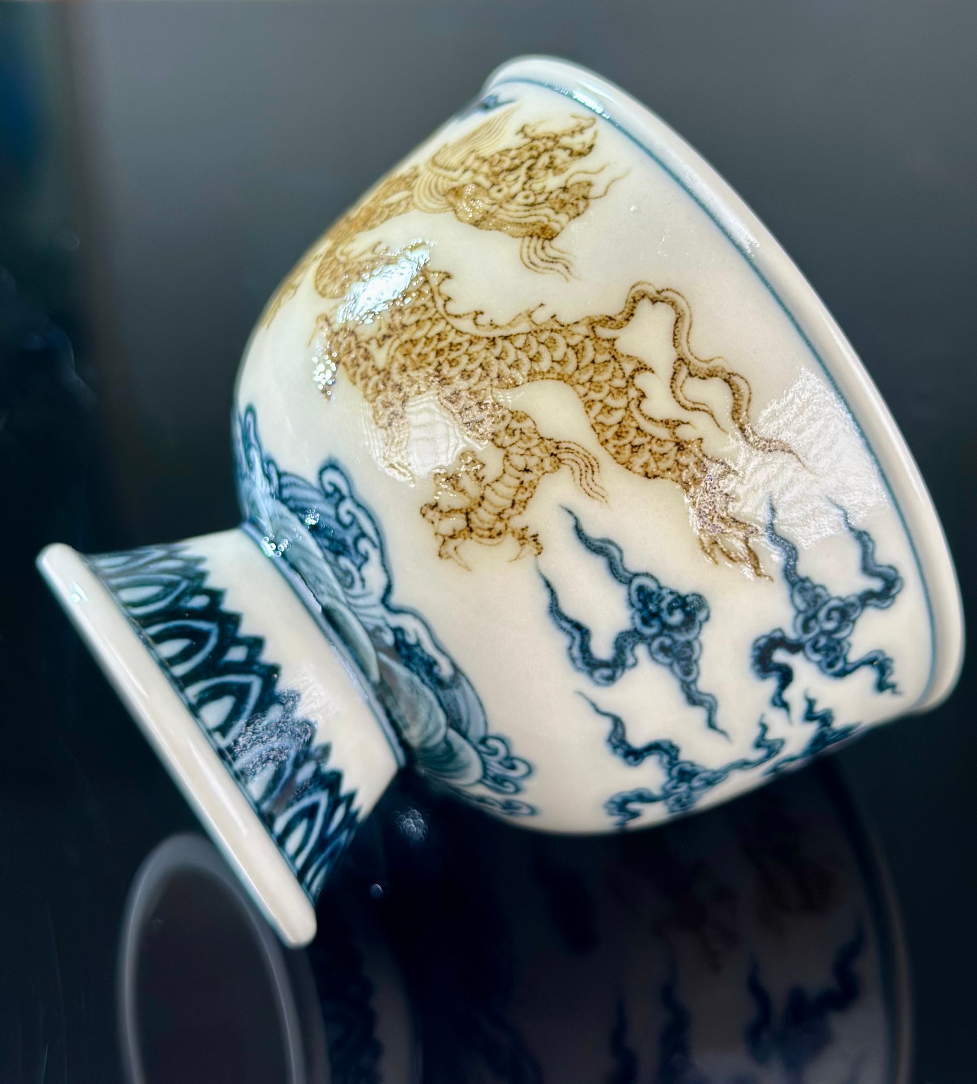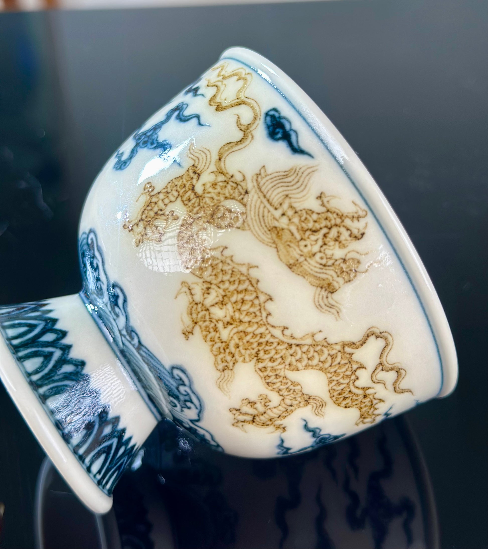 This extraordiary Underglaze Gold set is painted with the Chinese classical Xuande Dragon pattern.