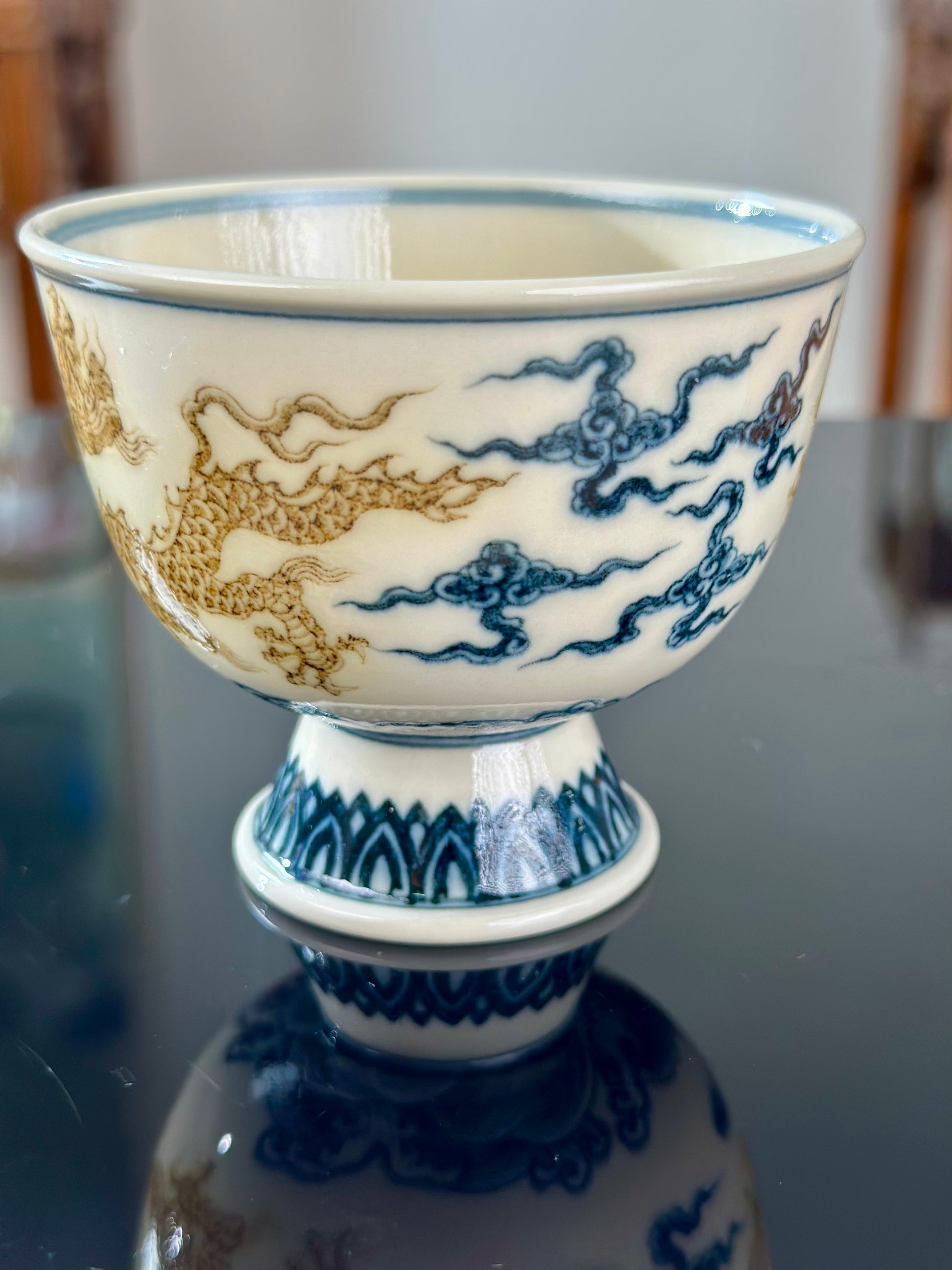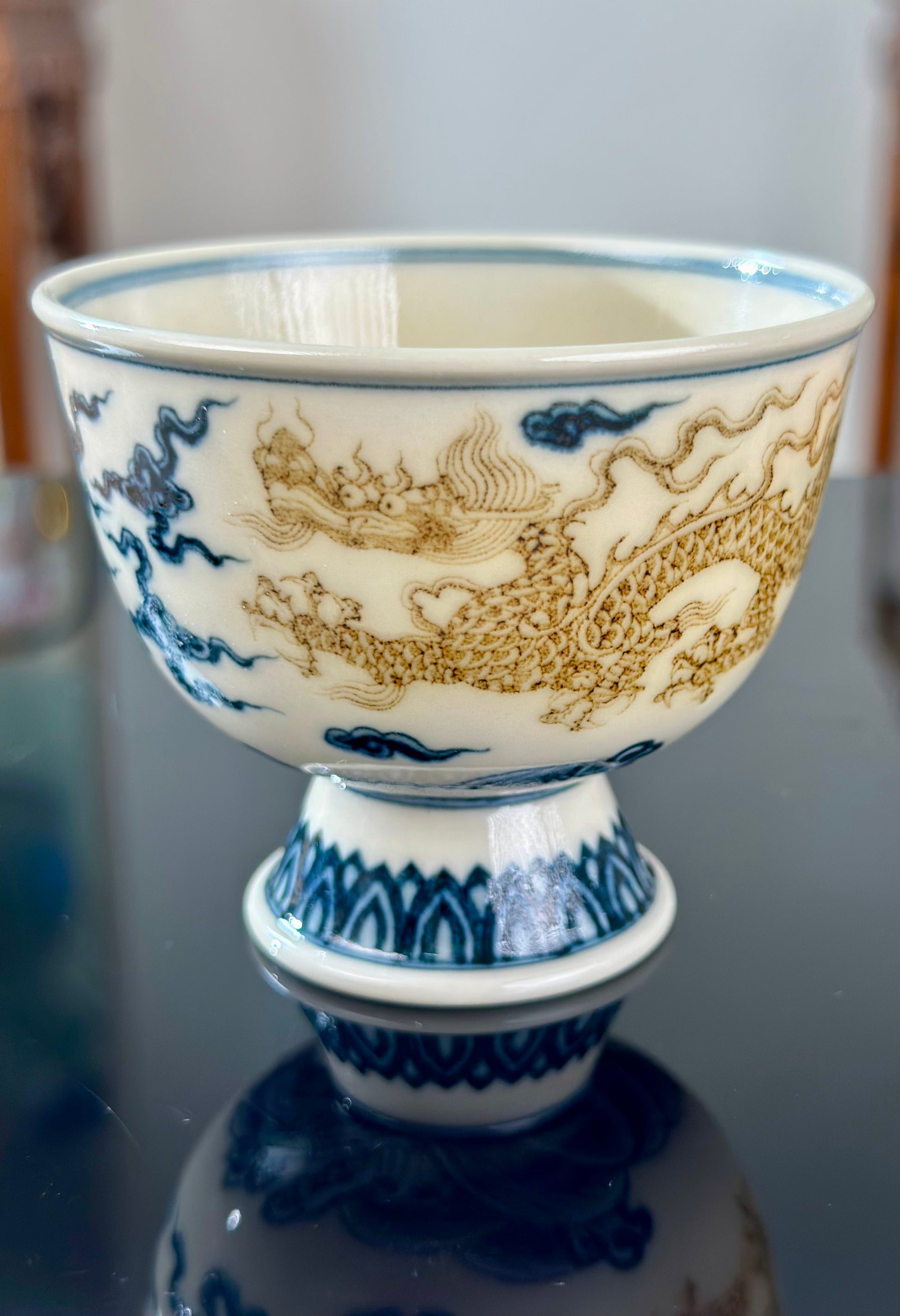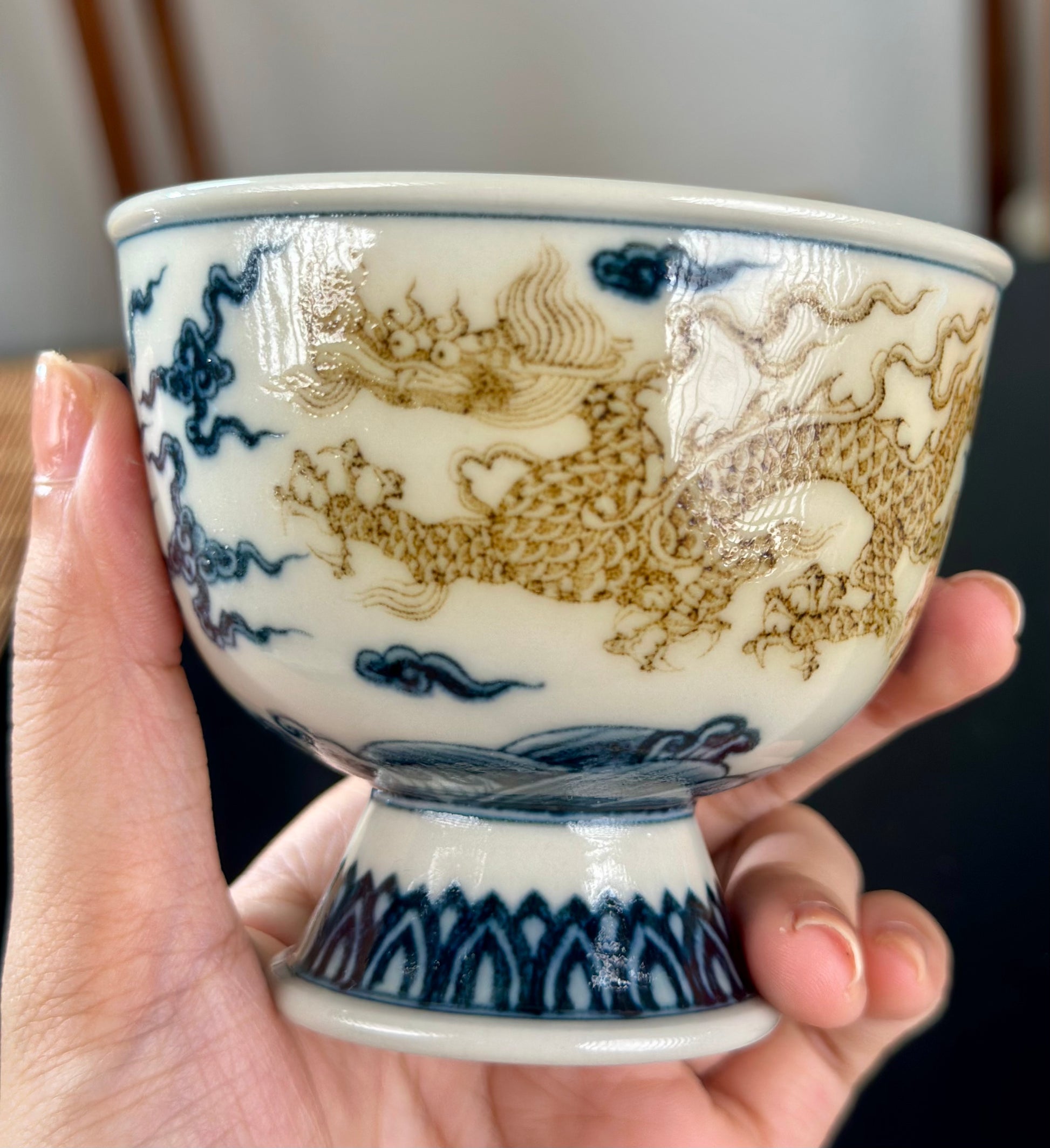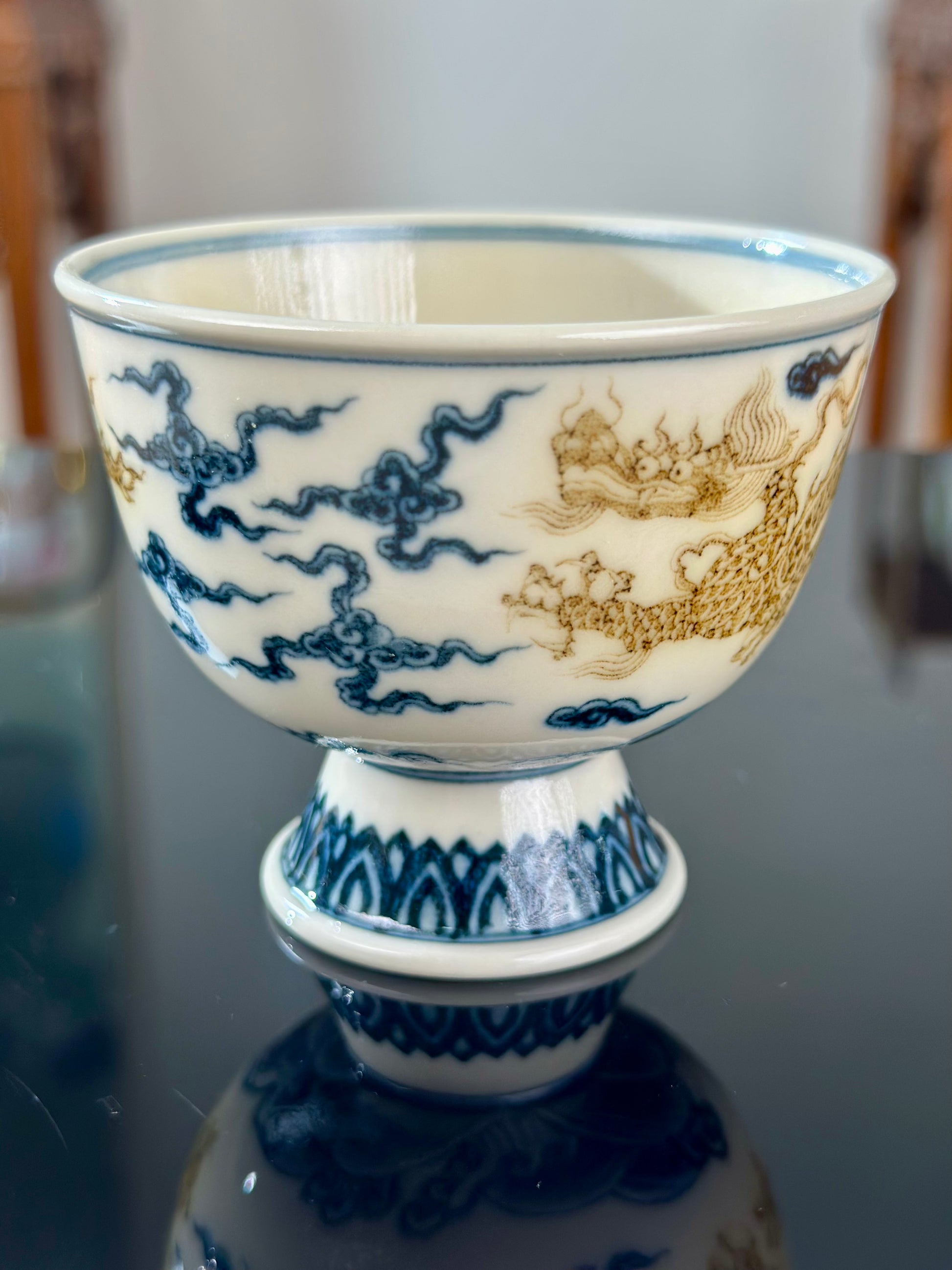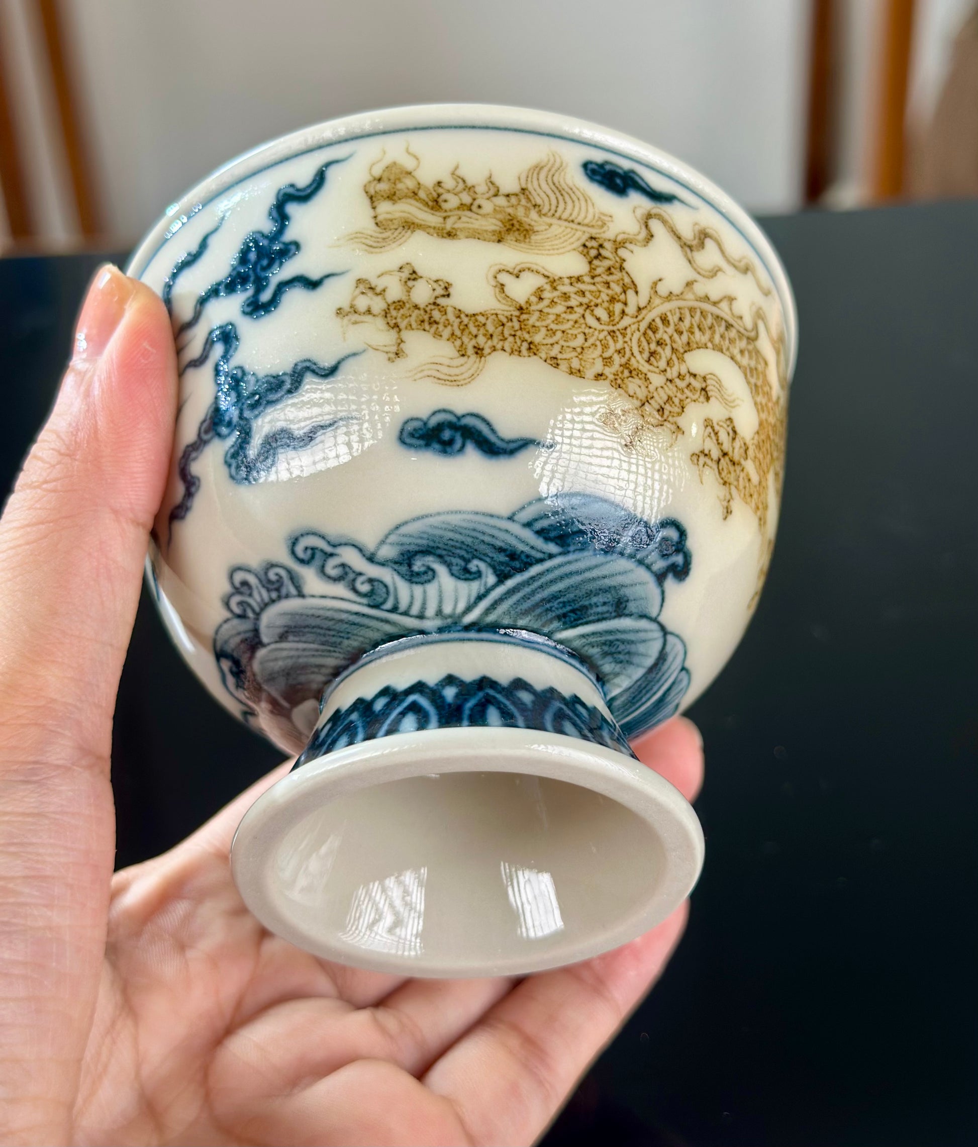 This extraordiary Underglaze Gold set is painted with the Chinese classical Xuande Dragon pattern.