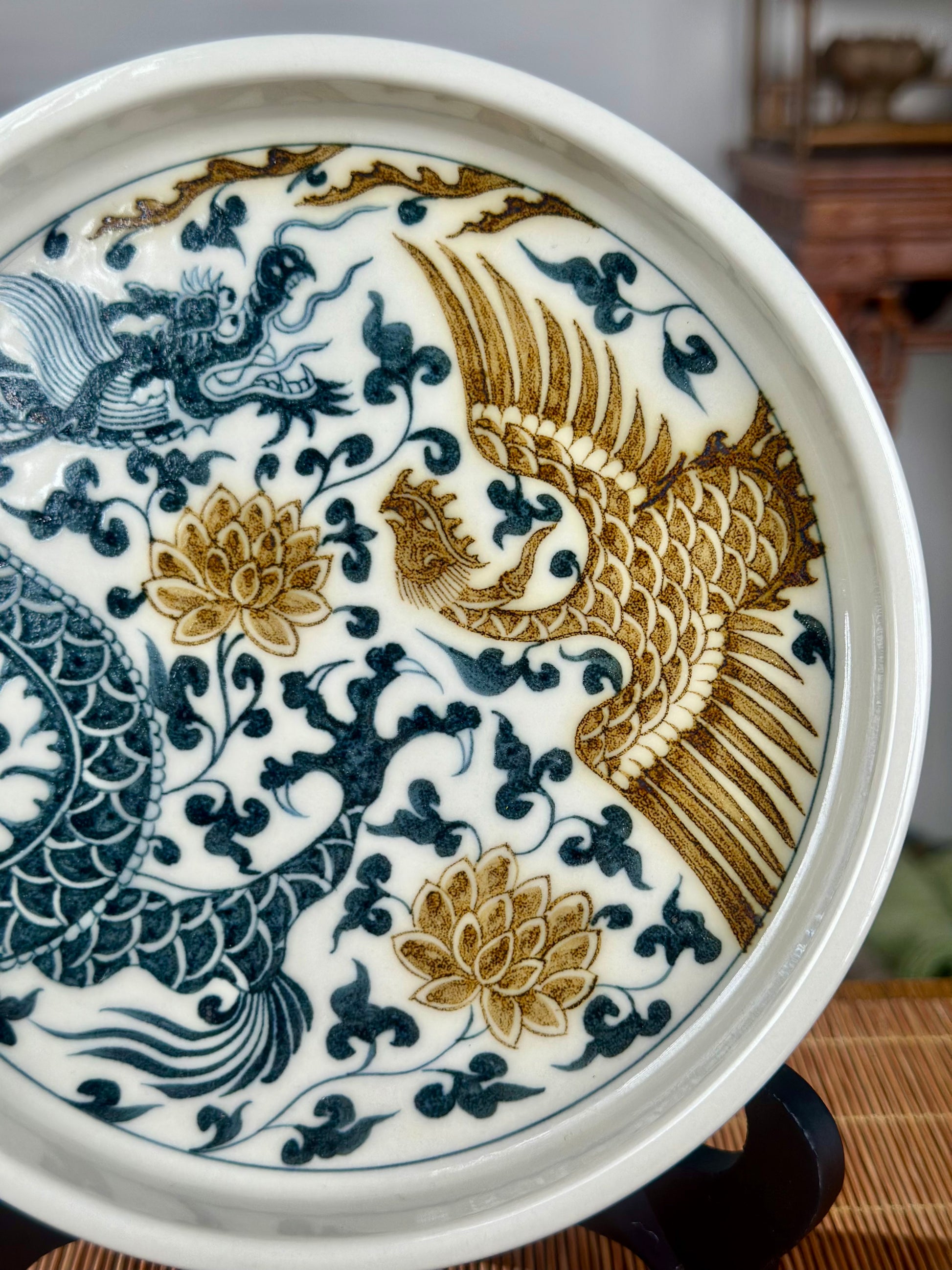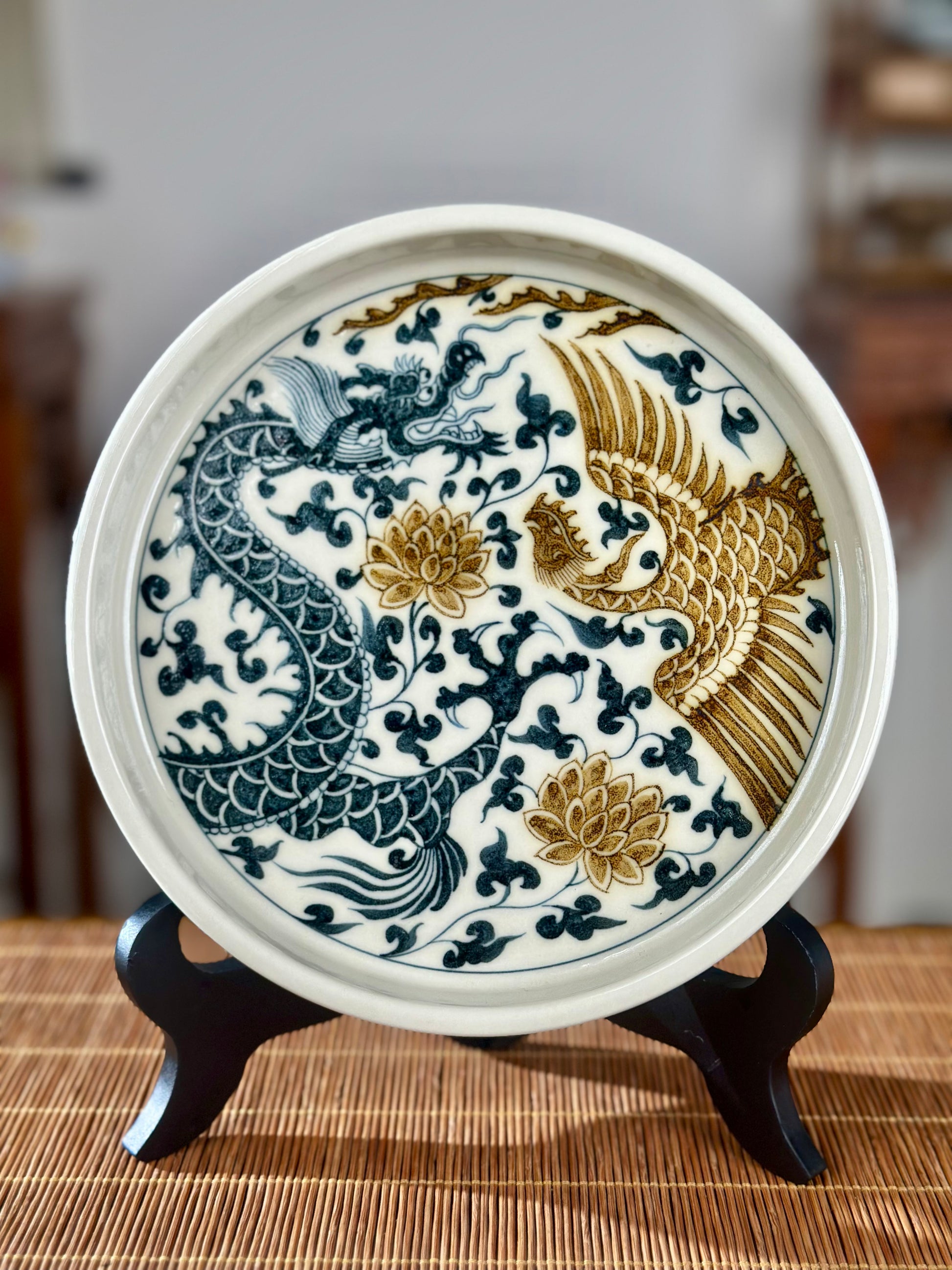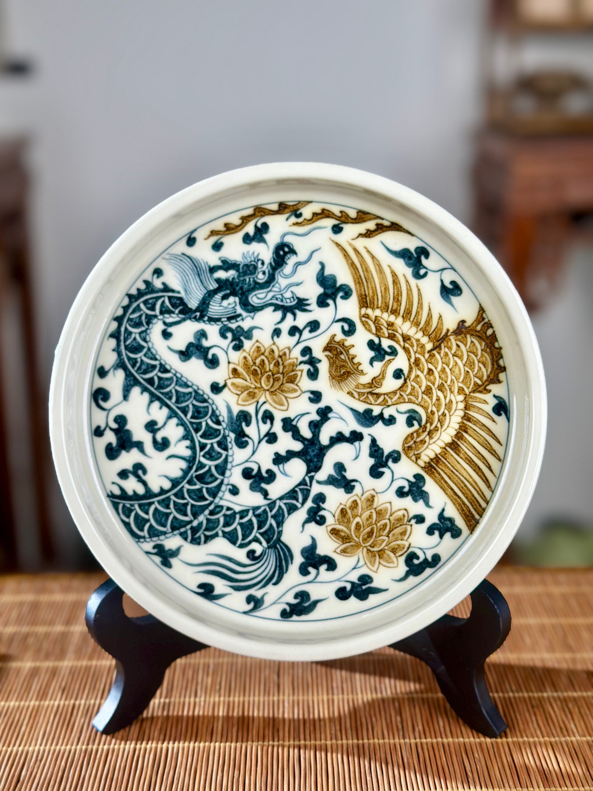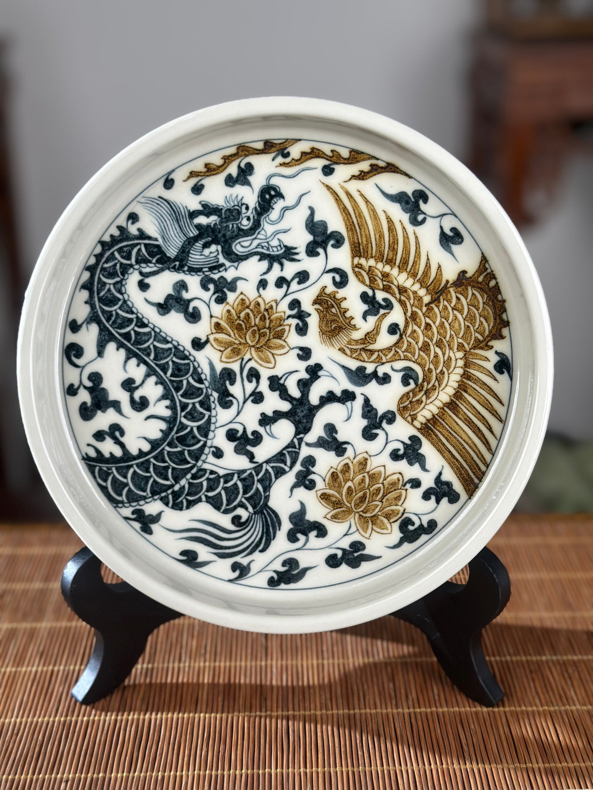 In Chinese culture, the dragon and phoenix are powerful symbols, often paired together to represent harmony, auspiciousness, and good fortune. The dragon traditionally symbolizes the male (yang) and the phoenix the female (yin), representing a balanced union. Together, they often symbolize a fruitful and blissful marriage, prosperity, and the continuation of the family line.