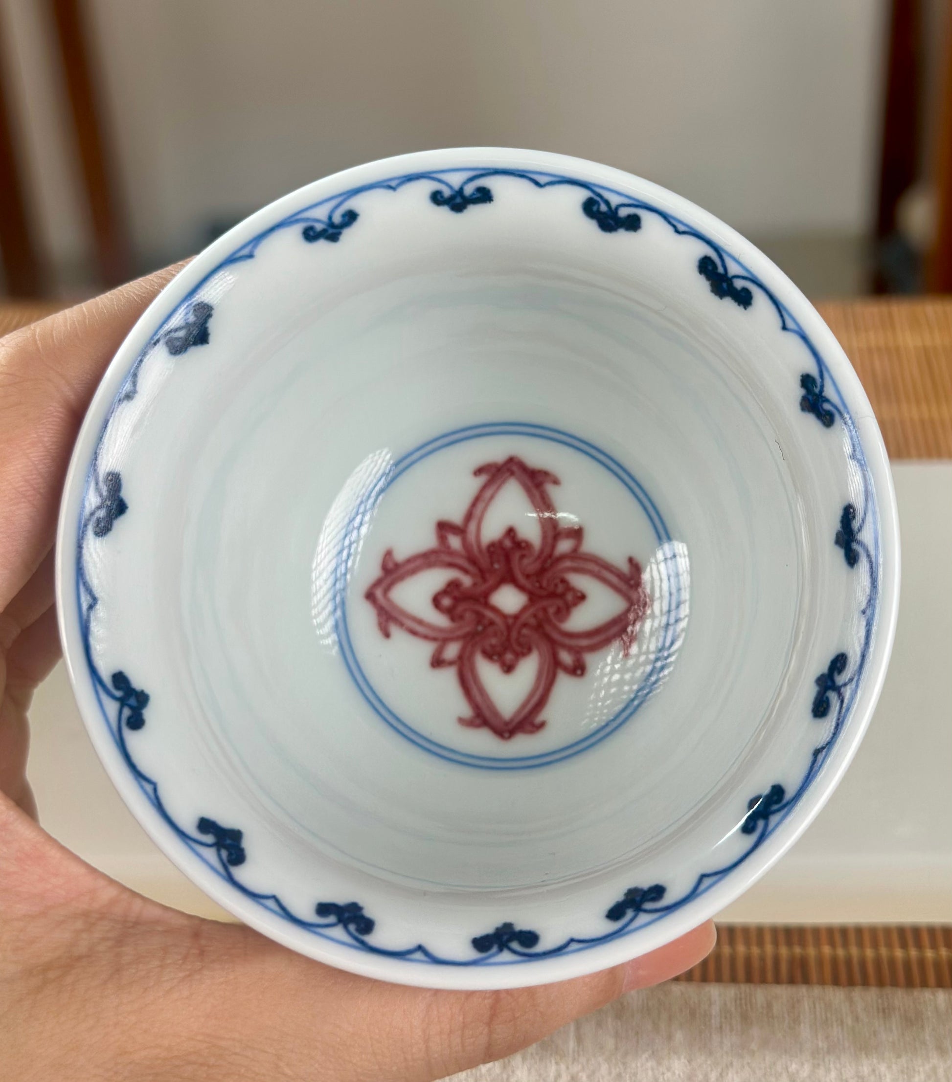 This Jingdezhen artwork teacup is hand-painted with traditional Chinese Baoxiang Flower pattern by a Jingdezhen experienced ceramic painter.