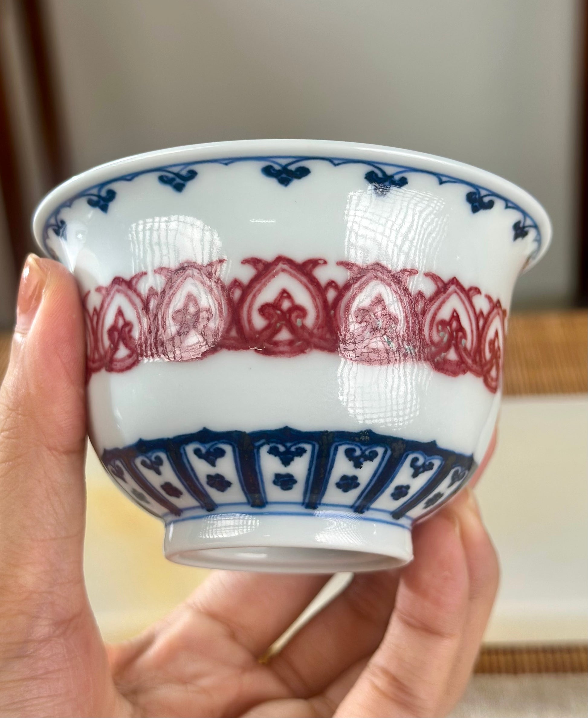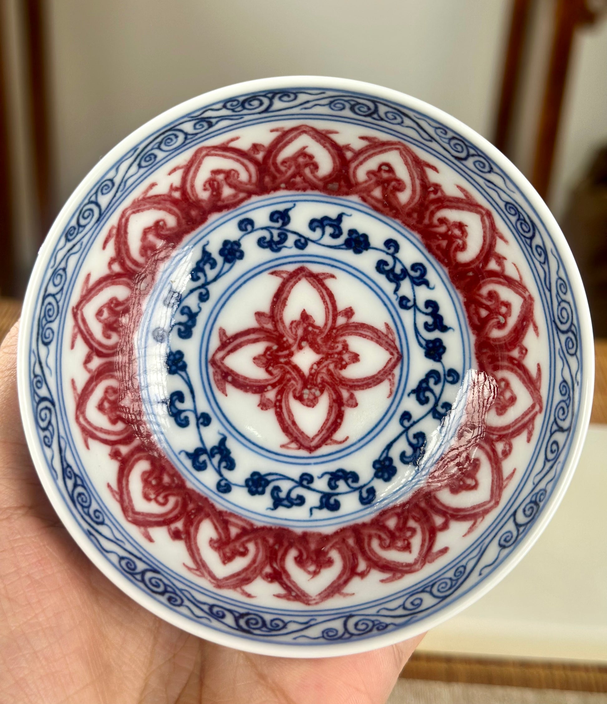 Blue and white underglaze red porcelain, commonly known as "blue and white plus purple", is a decorative technique of underglaze colored porcelain in Chinese ceramic art. It refers to a porcelain decoration technique of adding patterns with underglaze red between blue and white. It began in the Yuan Dynasty (1271-1368 AD), more than 700 years ago, which is regarded as one of the most crafted Chinese porcelains and the most high end ceramic so far.