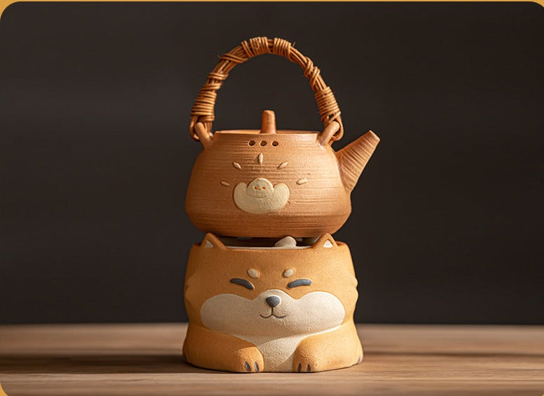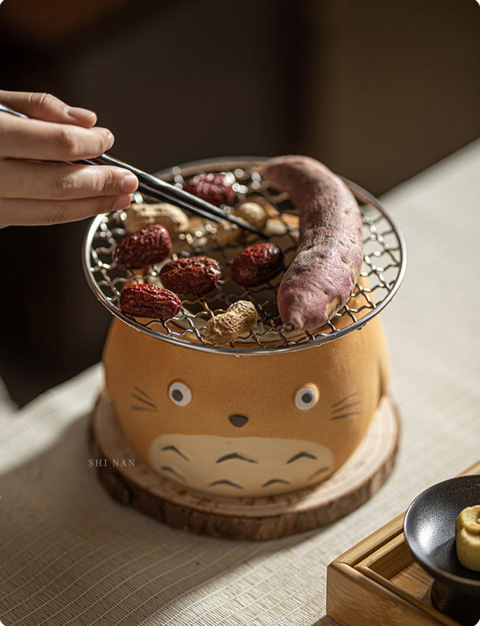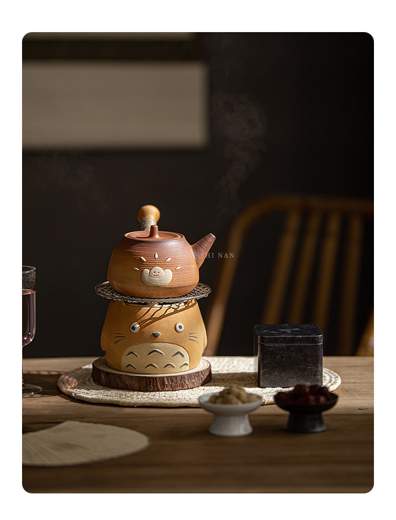 Japanese Totoro Painting Style Kettle Stove Set Handmade Charcoal Stove Set Chinese Master Pottery