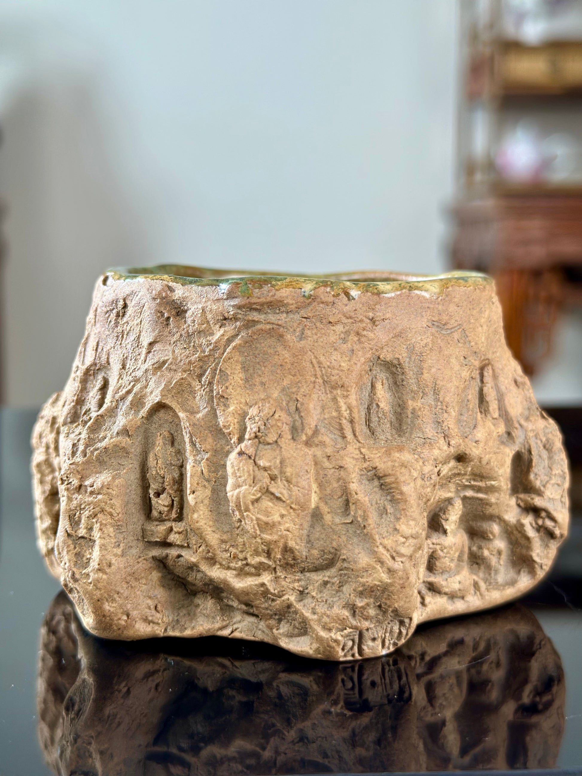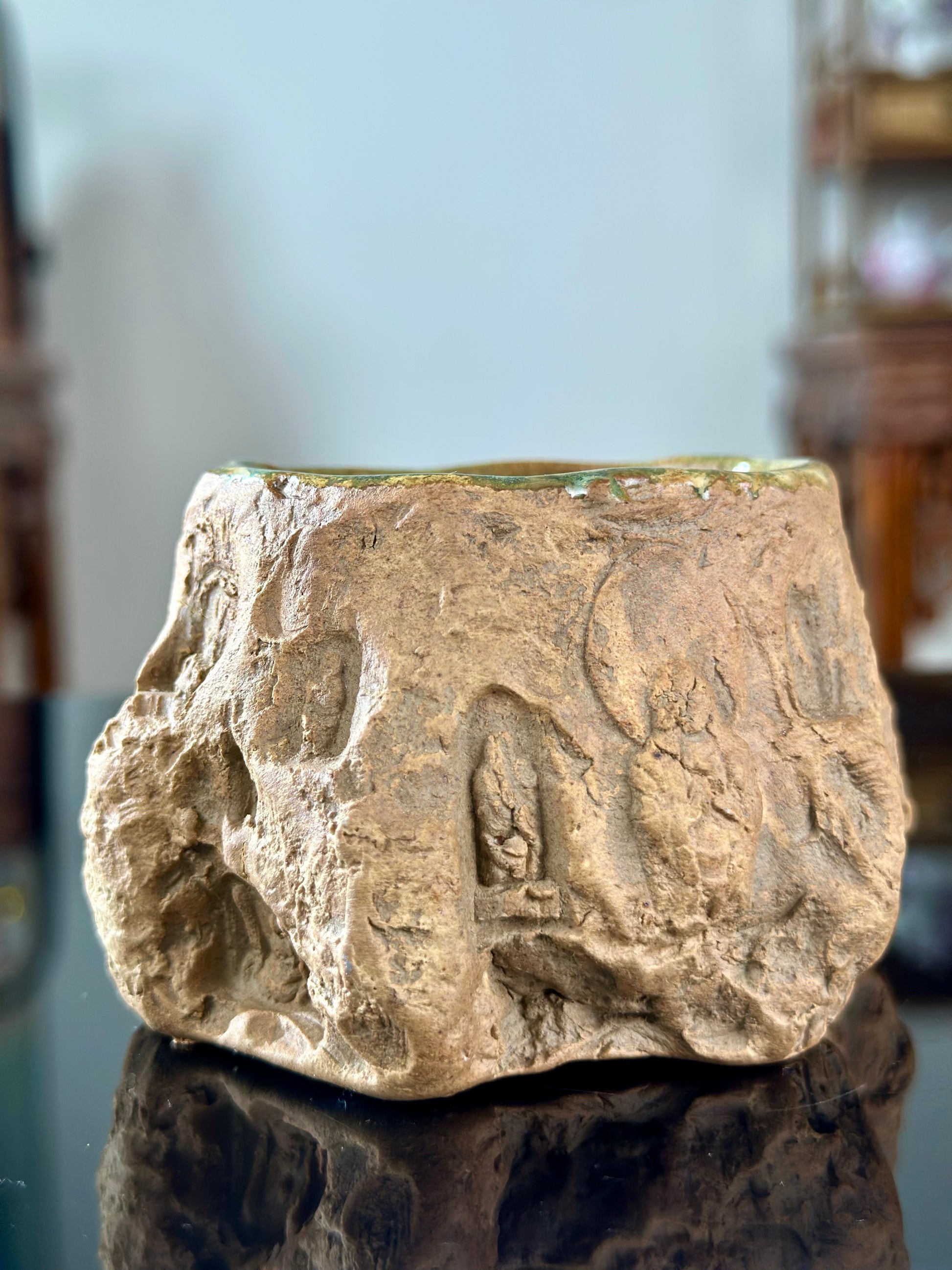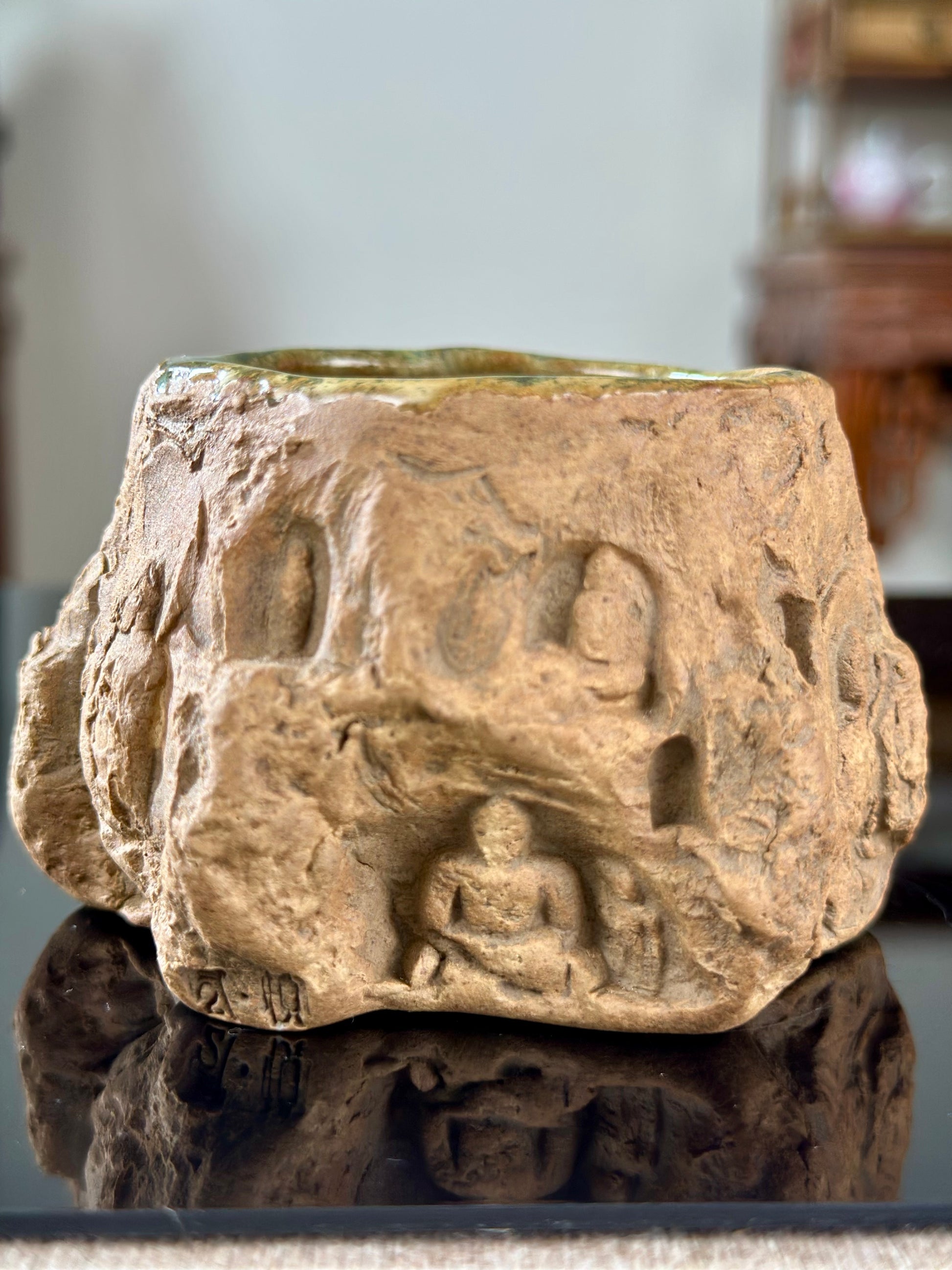 Original Designed Hand Engraved Chinese Bouddhist Bouddha Imitating Grotto Teacup