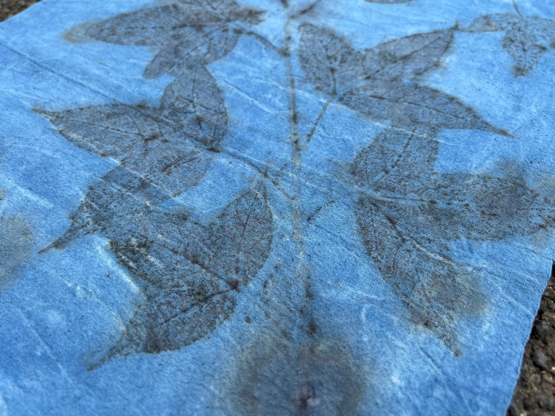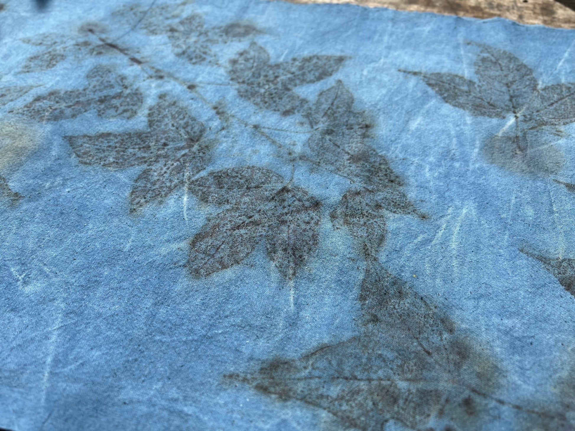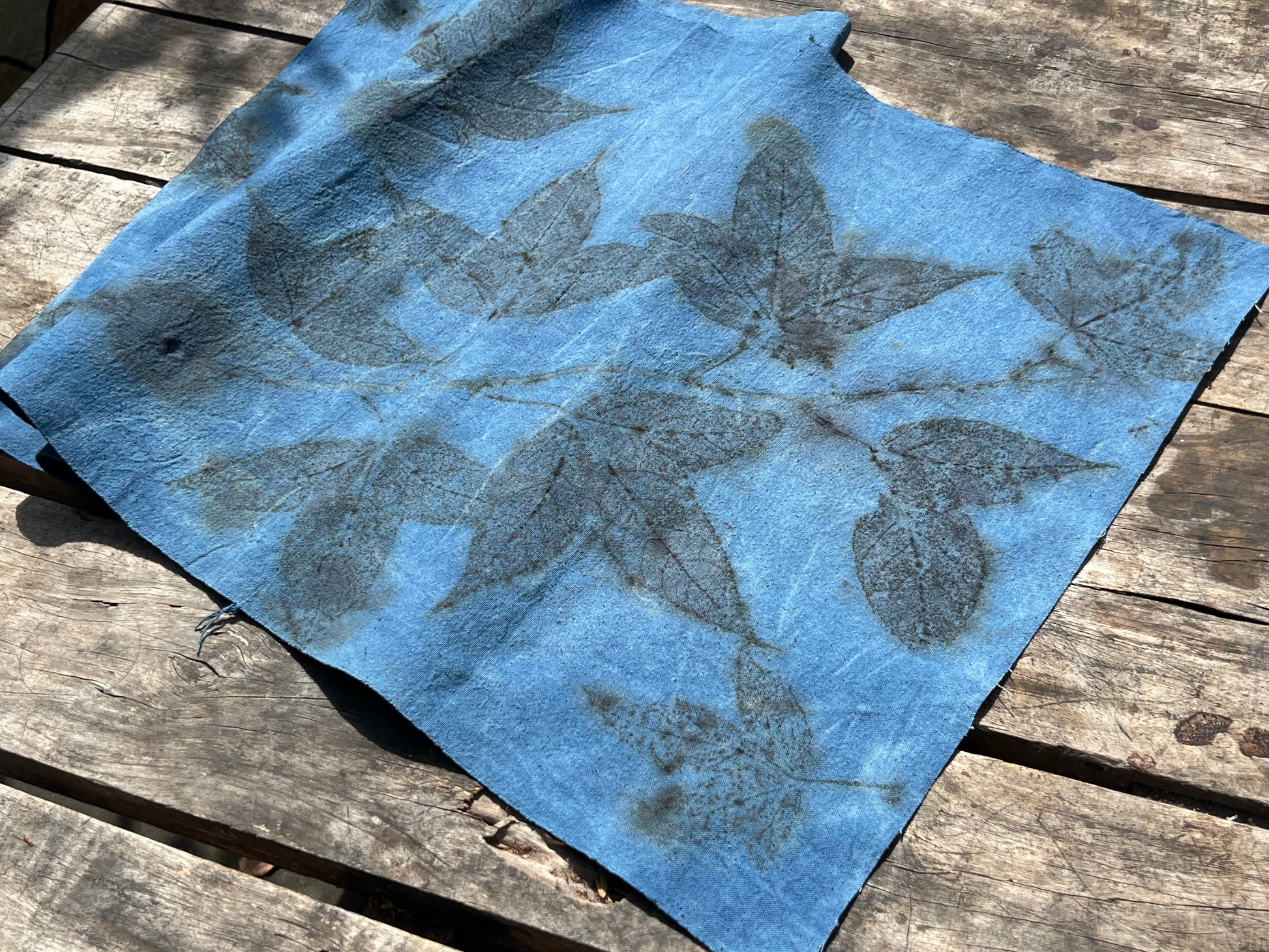 Handmade indigo dyeing + plant heat transfer print tea mat