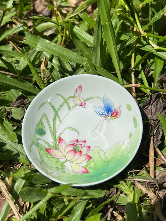 Handcraft Chinese Handpainted Chinese Lotus Enamel Teacup Jingdezhen Teacup Ceramic Master Pottery Artwork