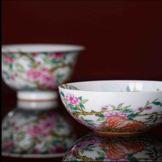 Handcraft Chinese Handpainted Chinese Peach blossom Jingdezhen Enamel Teacup Ceramic Master Pottery Artwork