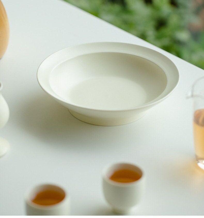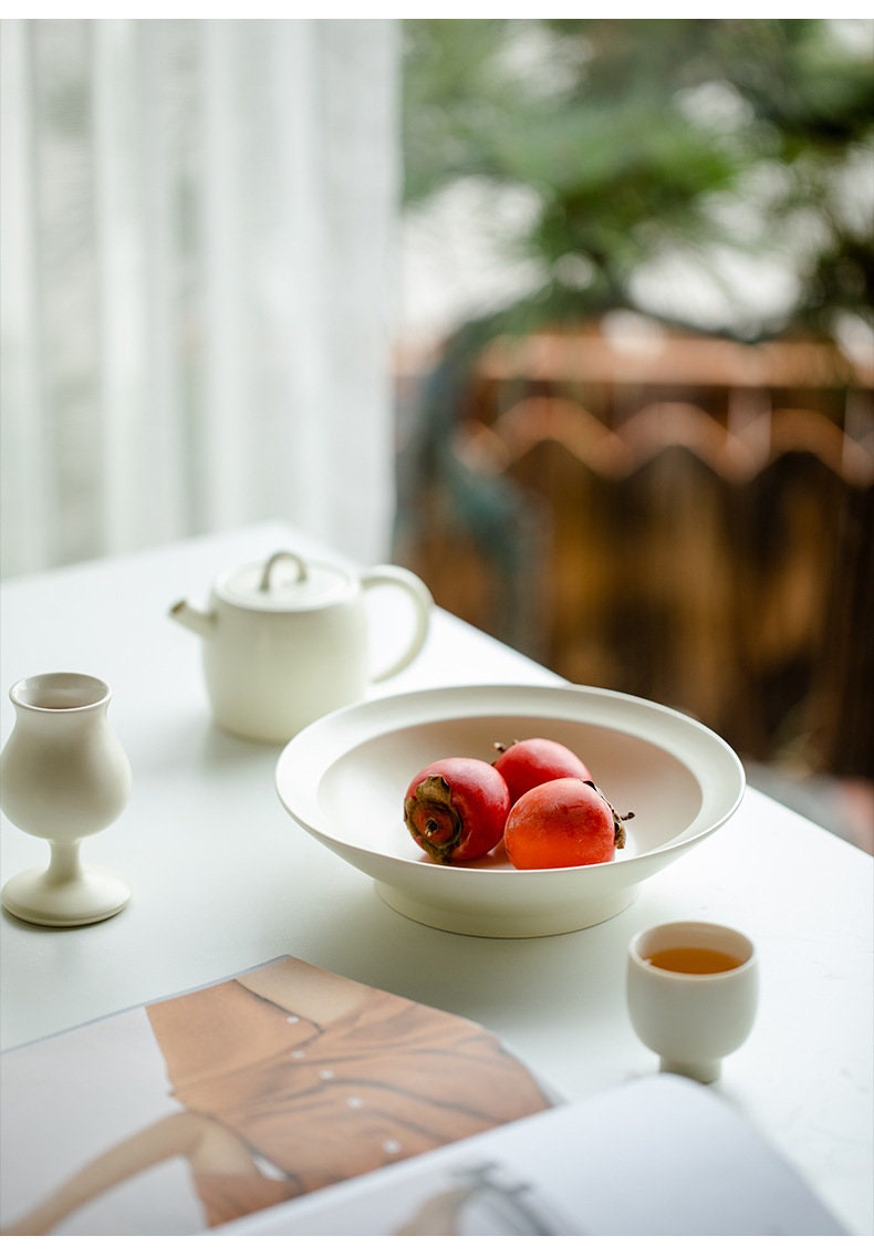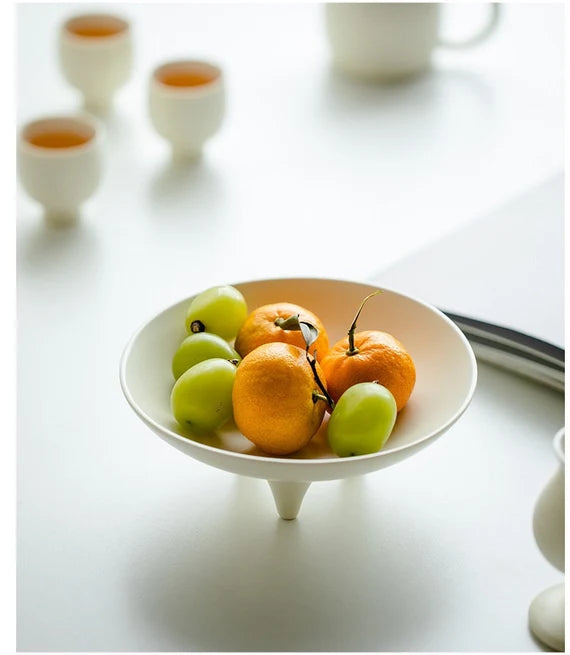 Cream fruit plate simple round foot refreshment tea tray tea boat plate living room decorative ceramic snack plate storage plate