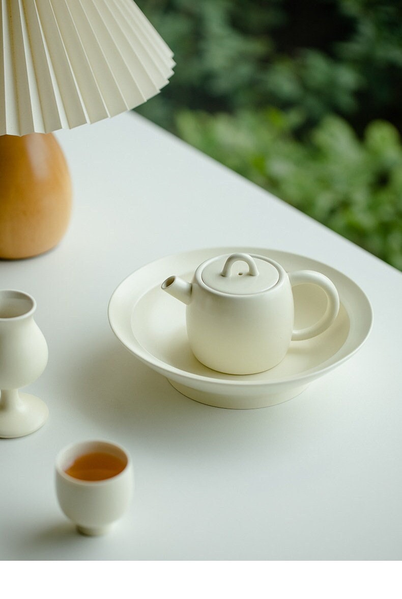 This delicate teapot is a good mix of classical and moderen pottery. Pottery is ordinaryly integrated into life through visual and tactile perception. Through the soft and silky touch, the original charm of pottery is preserved. Cream color, soft and delicate, dignified and elegant, the combination of classical and modern design, warm and beautiful.