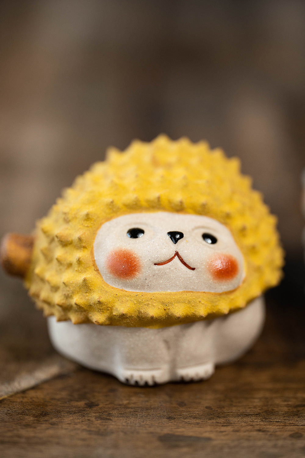 This cute tea pet is designed in the shape of durian combined with small animals. It is so cute and adorable that people can’t put it down. It is very cute and charming when placed on the tea table.