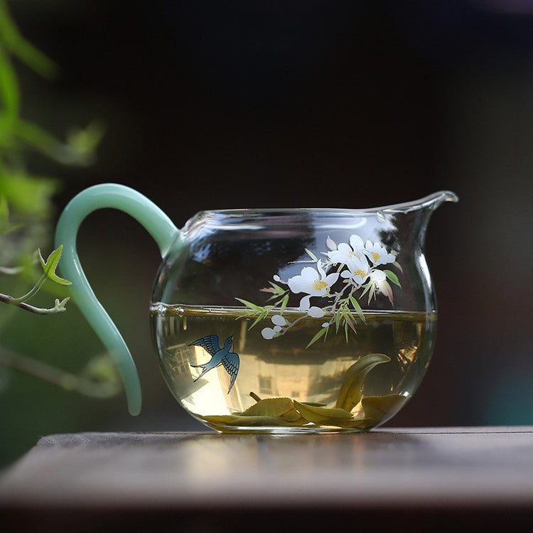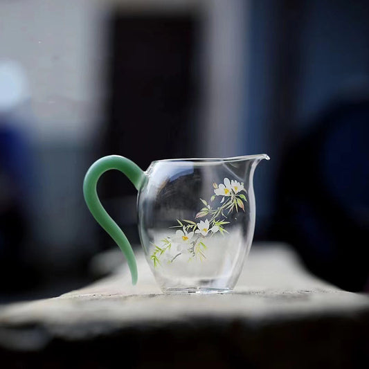 Chinese Original Glass Fair Cup High Borosilicate Glass Gongdaobei Green Handle