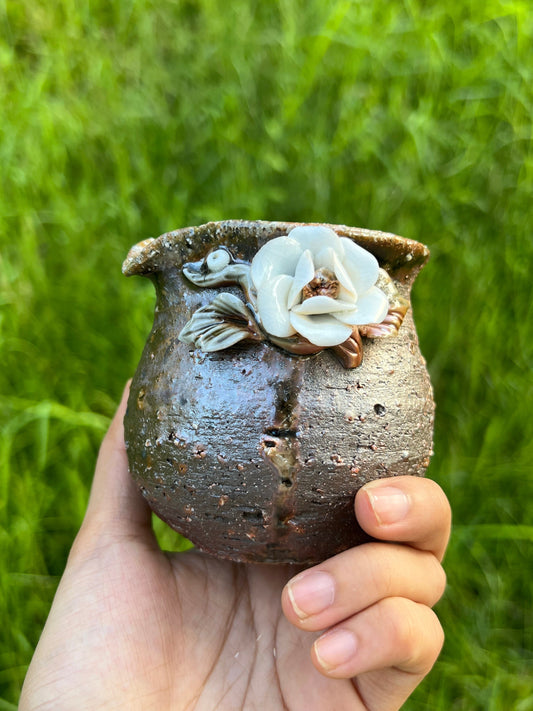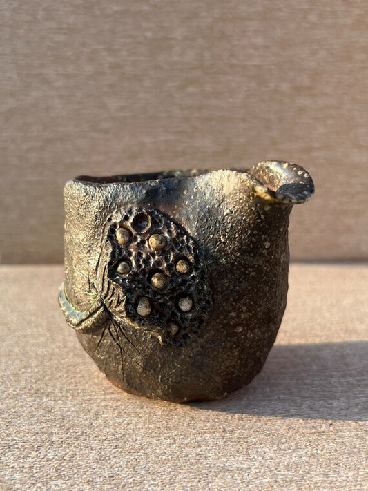 Fair cup Woodfired Flower Gongdaobei Handmade Crude Pottery Cup Gloss Unique Artwork