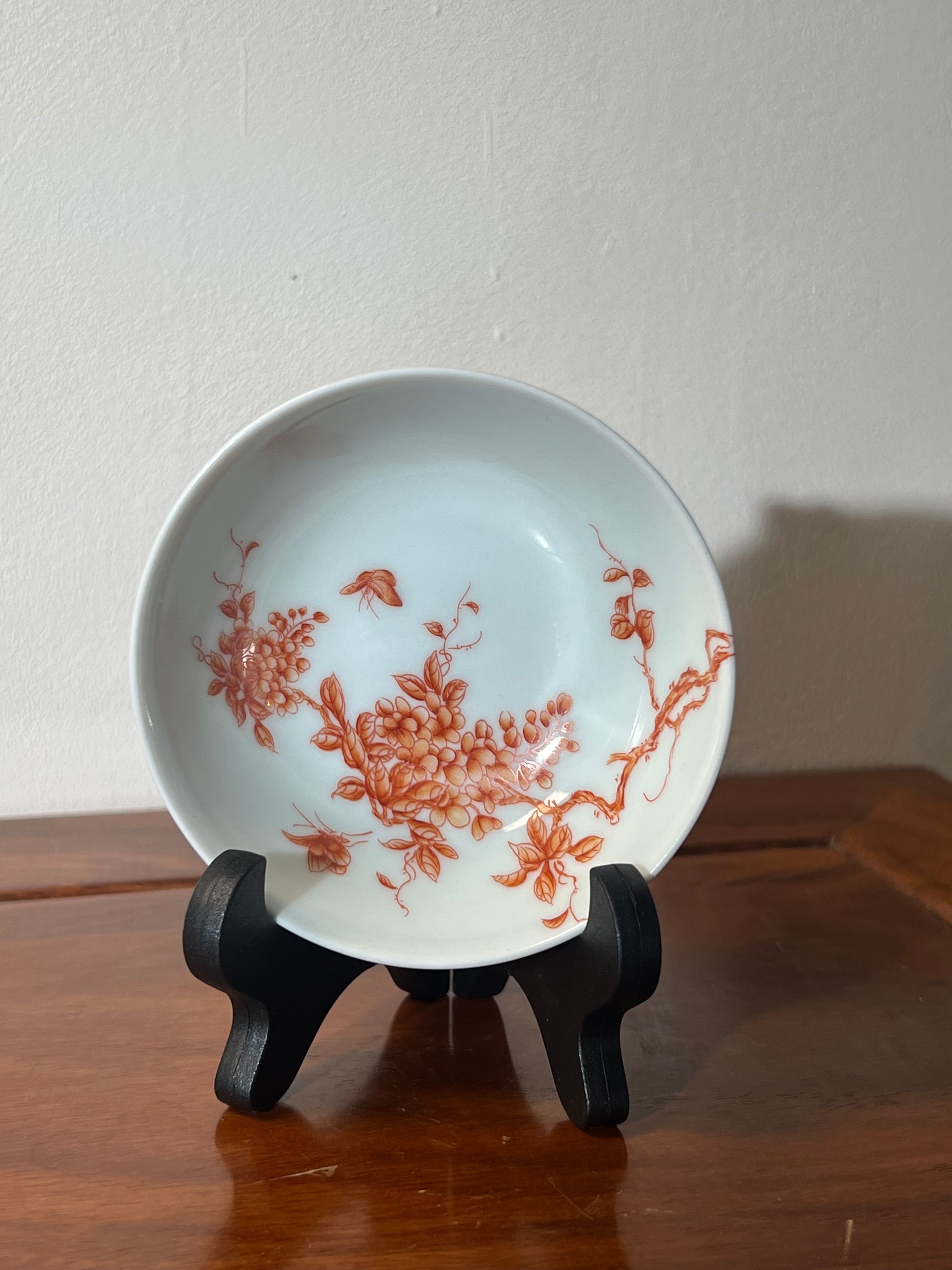 Alum red is a low-temperature On-glaze pigment for Chinese ceramics. It is a low-temperature red glazed with a suspension of ferric oxide. It is also called "iron red", "red color". Its color often has an orange-red color, which is gorgeous and bright. Alum red porcelain is the earliest overglaze color decorative art in Chinese porcelain making history, which appeared in the Song Dynasty.