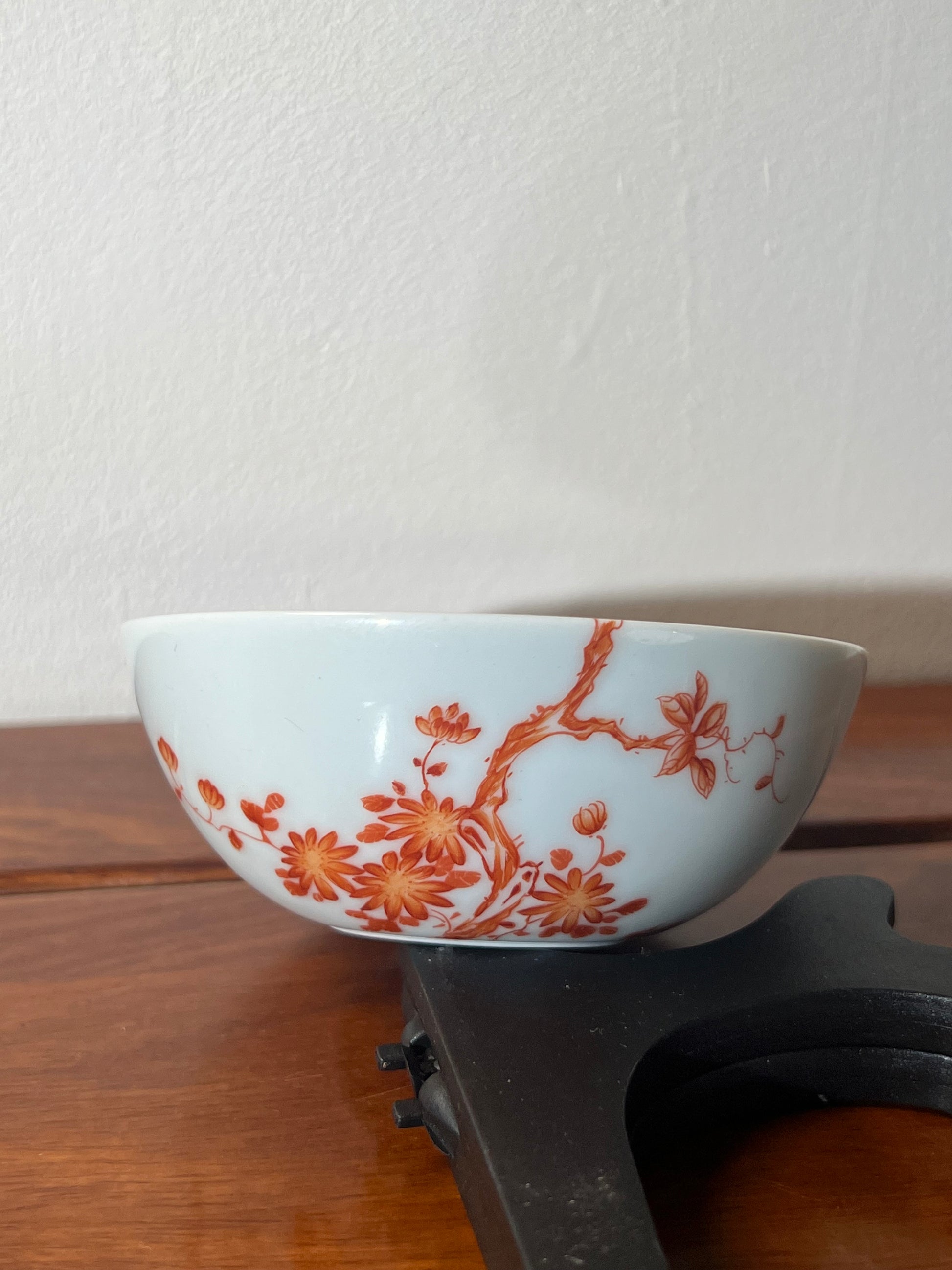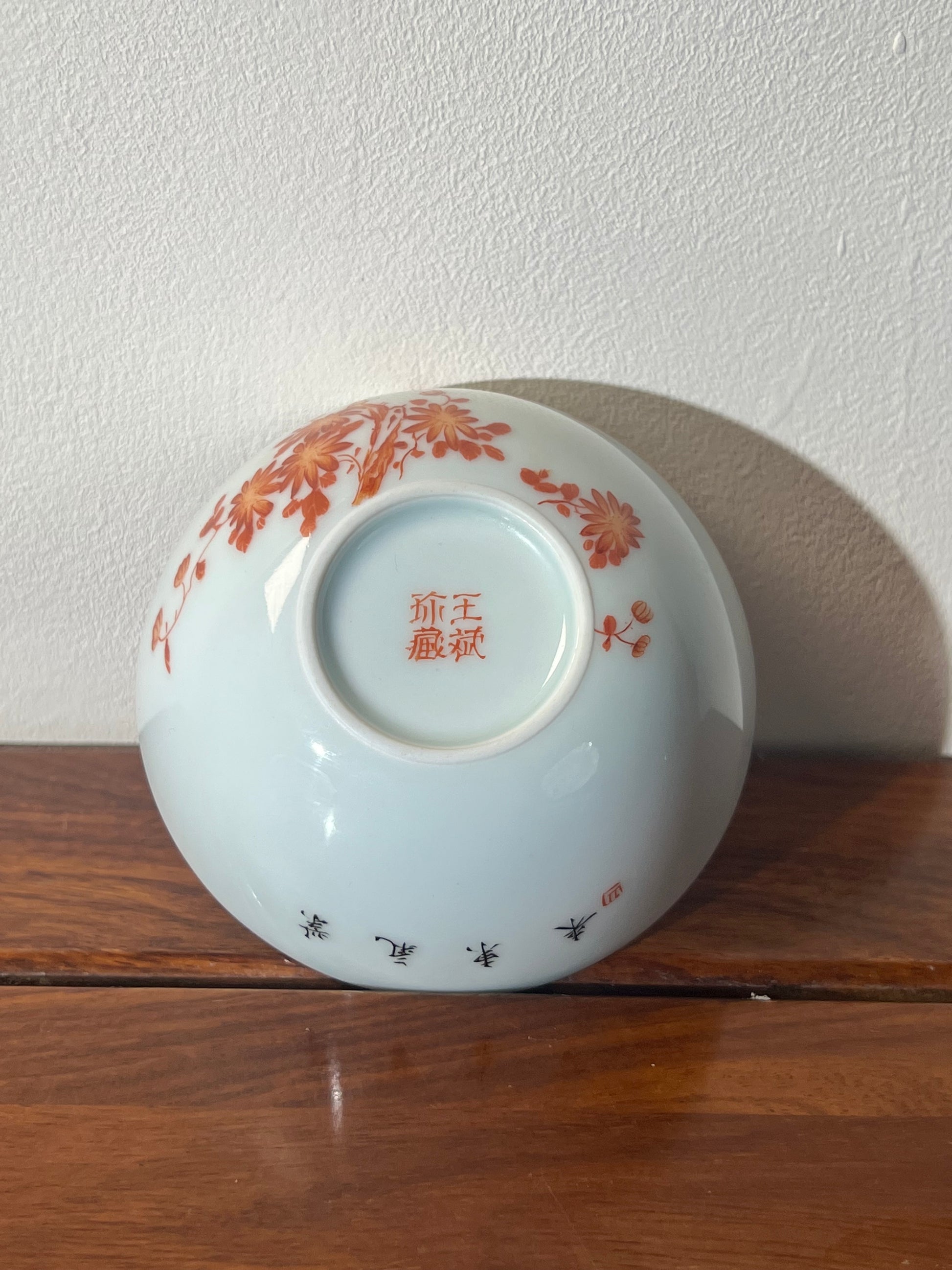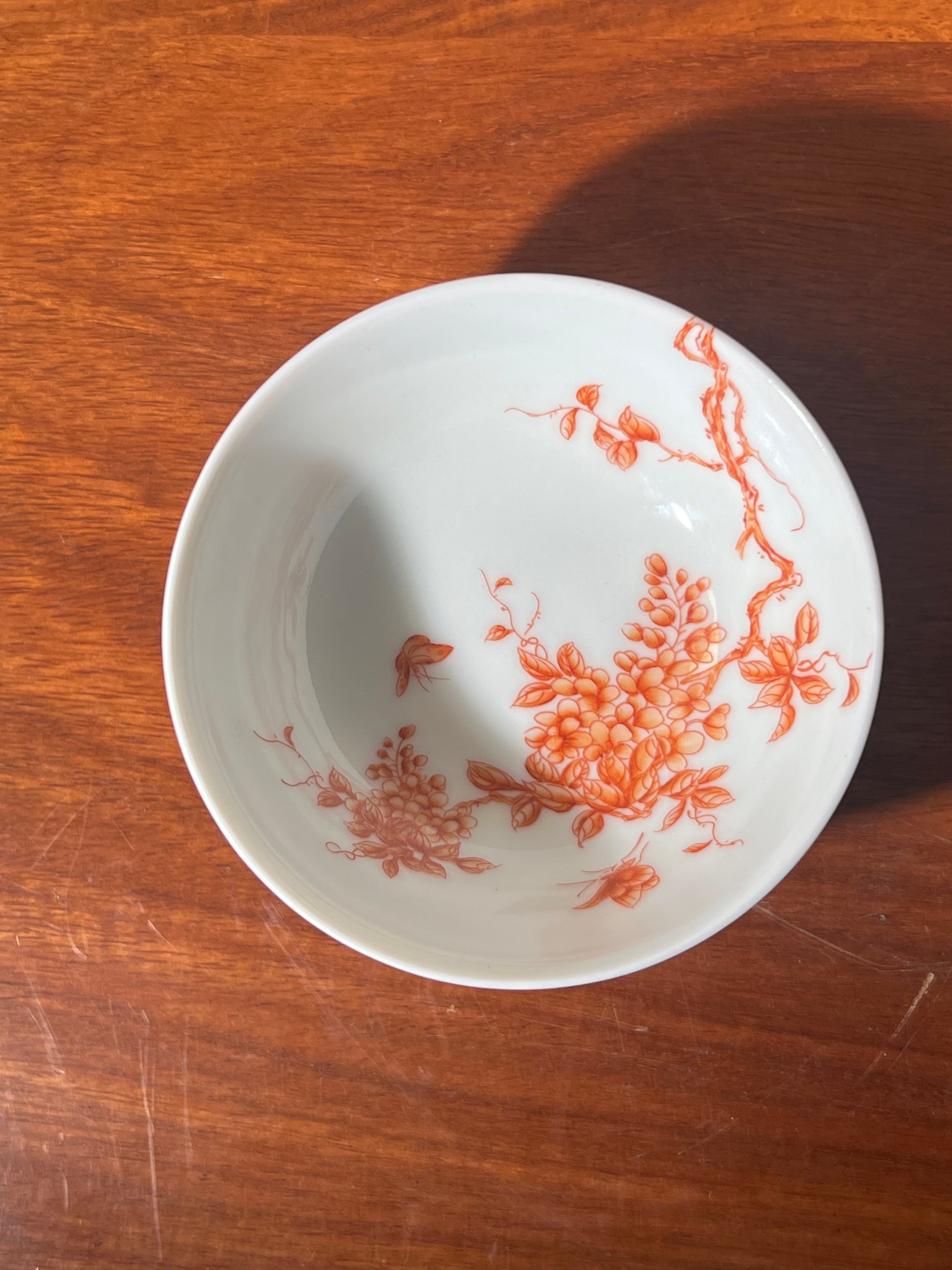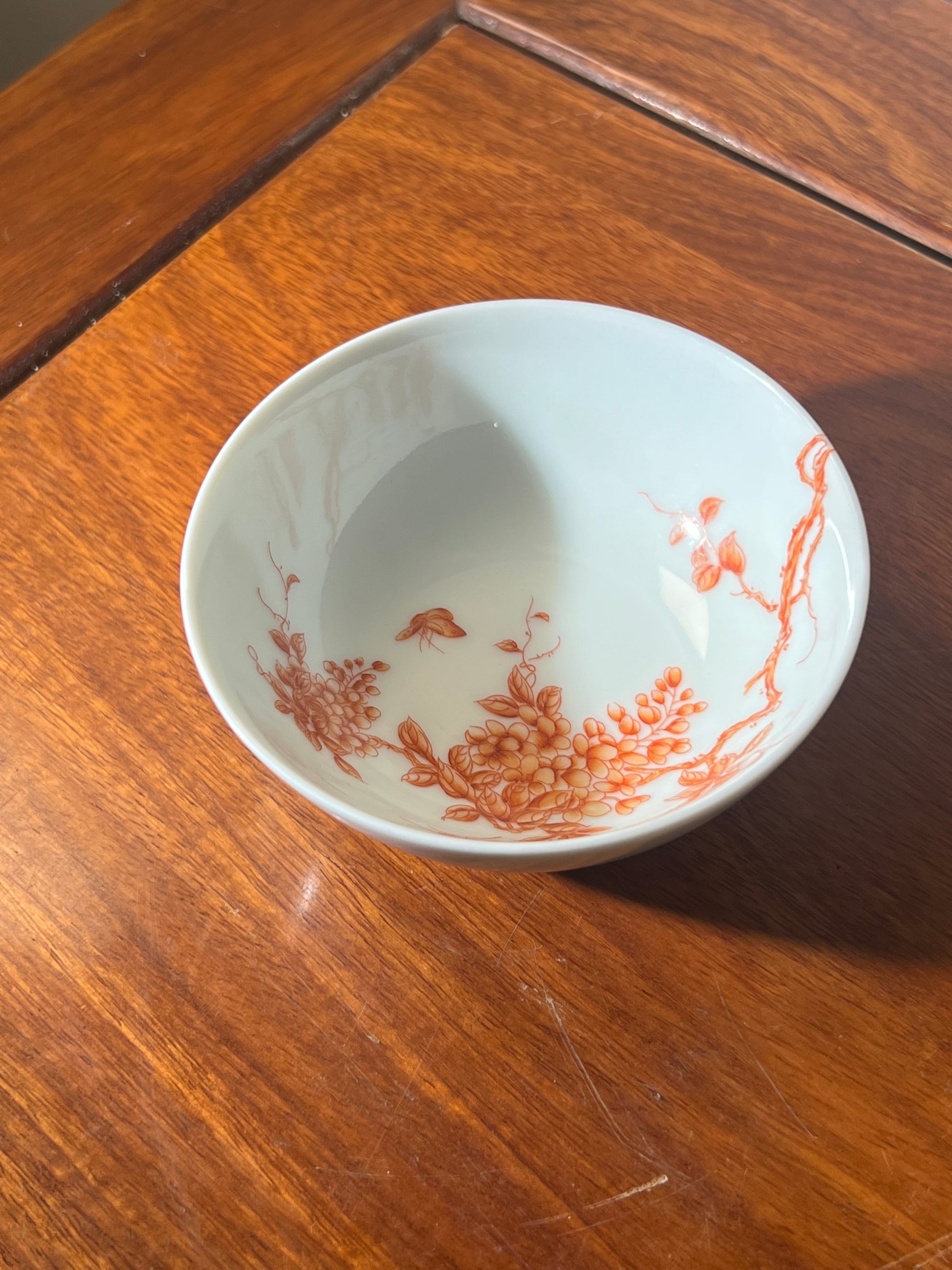 Hand Painted Chinese Peony Flower Alum Red Teacup Orange Red Teacup Jingdezhen Master Ceramic Artwork