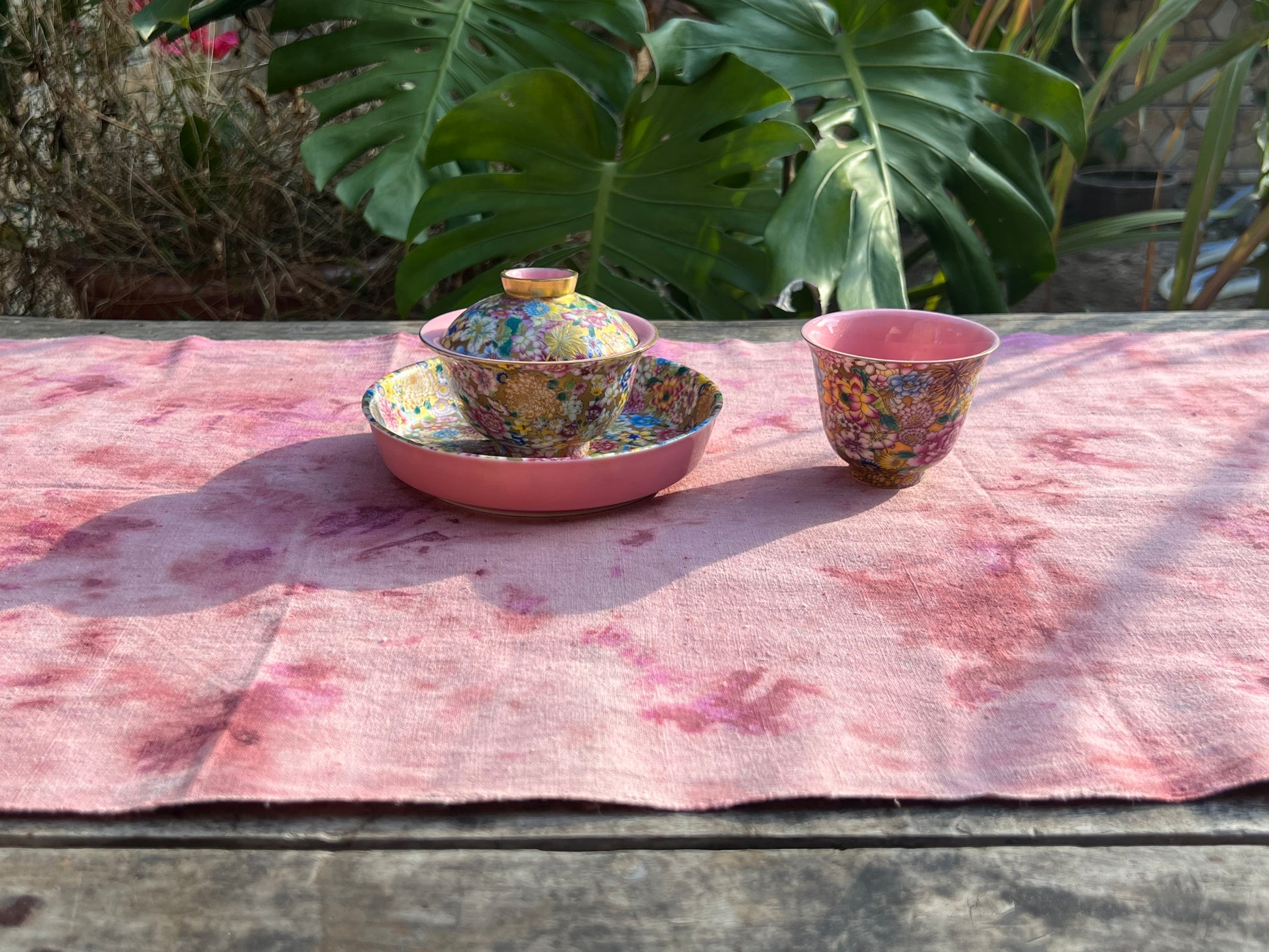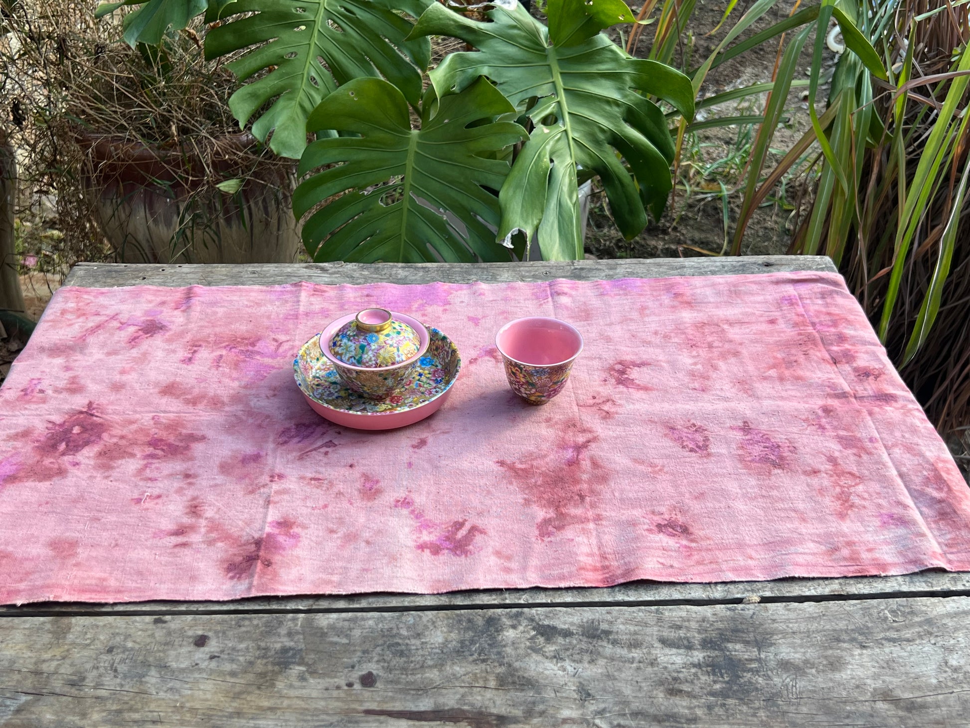 Hand Dyed Natural Dyed Tea Tablr Cloth Pure Cotton Pink Tea Mat Chabu Chaxi