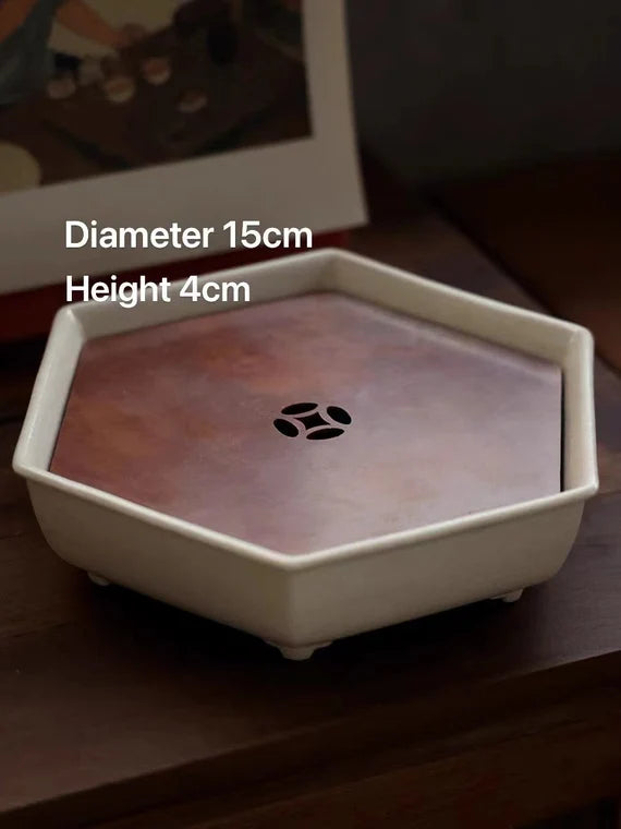 this handmade tea tray is made by Chaozhou local craftsmen, you can see a change of copper color after use in the photo. The ceramic is ice cracked pattern, which makes the tray more delicate and fine.