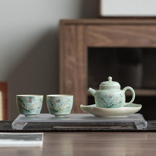 Handpaited Original Orchid Flower Pattern Teapot Set Chinese Porcelain Ceramic One Pot Two Cups Portable Storage Travel Tea Set