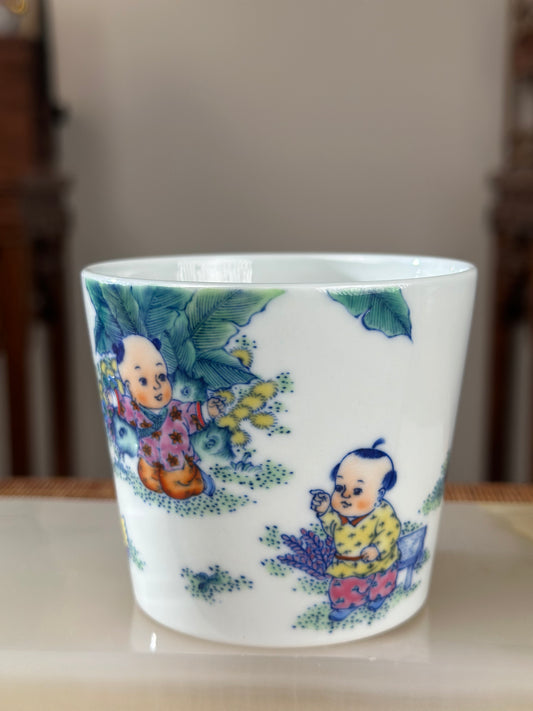 Handpainted Traditional Children Joy Pattern Chinese Jingdezhen Doucai Master Fine China Teacup