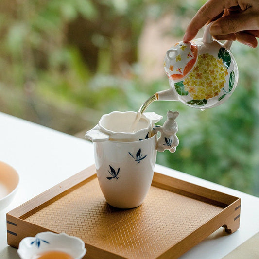 Pure hand-painted Phalaenopsis orchid rabbit filter tea cup tea leak tea filter tea filter tea set accessories