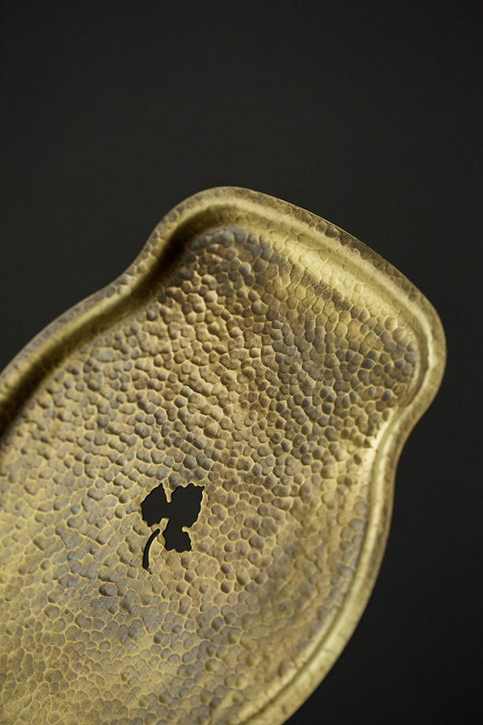 Tea Tray Copper Handforging Flower Tea Boat Chaozhou Chinese Master Artwork Teapot Holder