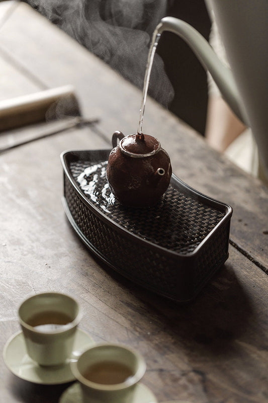 Tea Tray Copper Handforging Ceramic Tea Boat Chinese Master Pottery Ceramic Japanese Ceramic Tea Ceremony