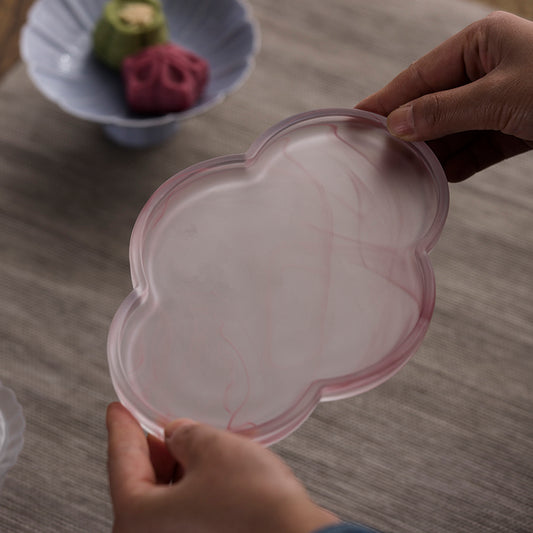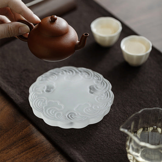 Tea Tray Handmade Frosted Glass Auspicious Clouds Teapot Holder Dry Tea Boat