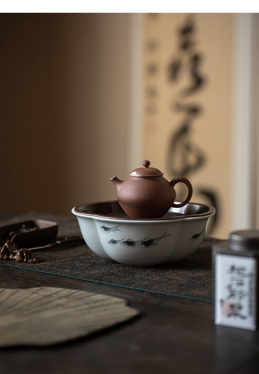 Tea Tray Purple Copper Handforging Ceramic Tea Boat Chaozhou Chinese Master Pottery Ceramic Tea Basin