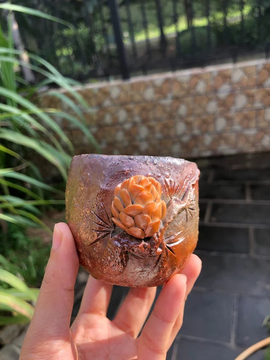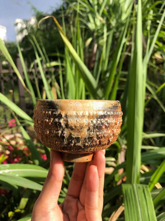 Woodfired Handmade Crude Pottery Teacup Gloss Unique Artwork Chinese Master Pottery Ceramic Japanese Ceramic Tea Ceremony