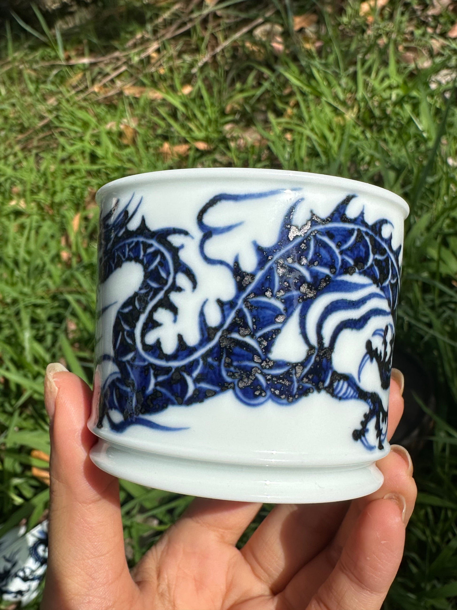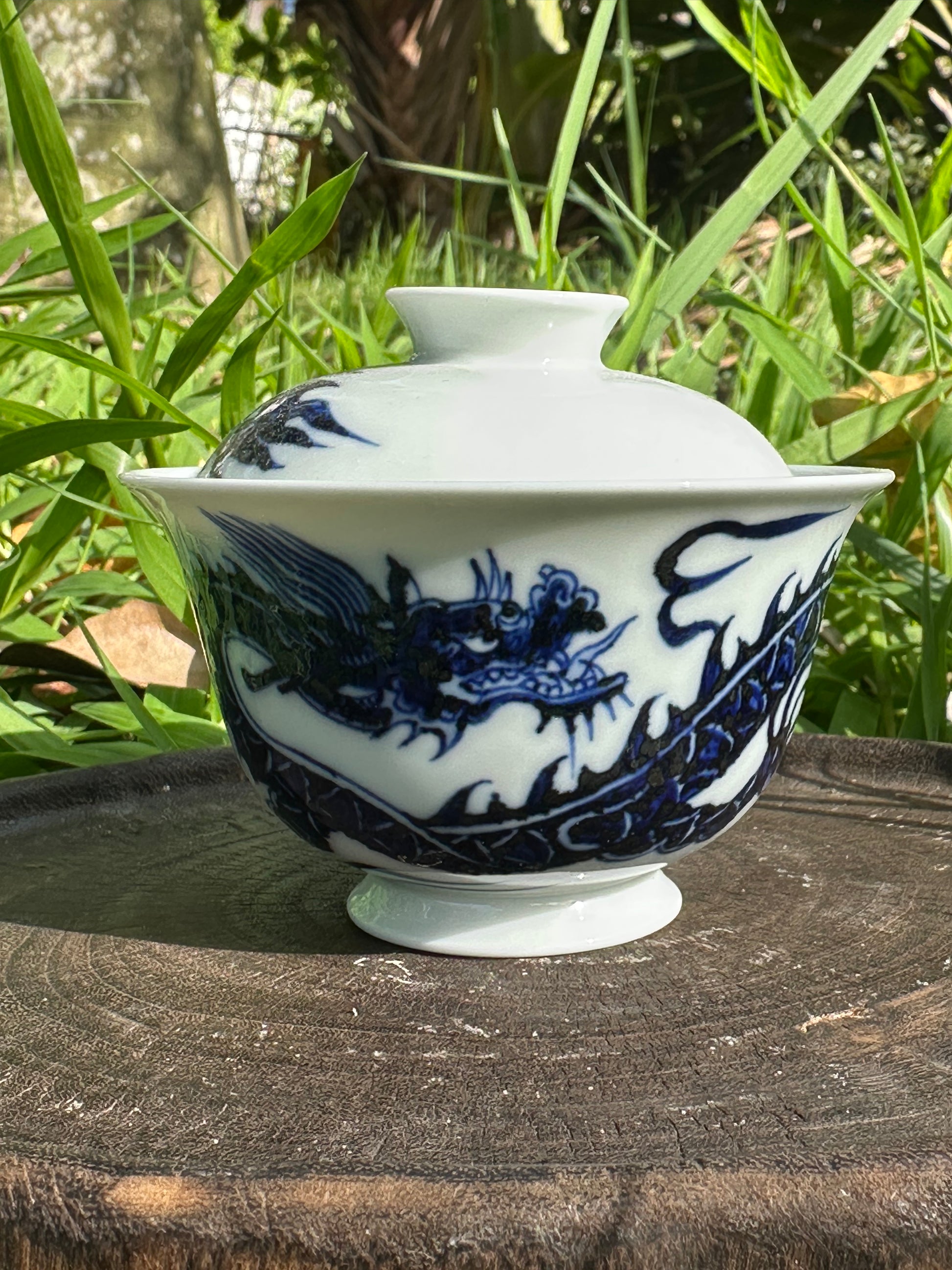 Chinese Handpainted Dragon Blue and White Porcelain Jingdezhen Gaiwan Master Artwork