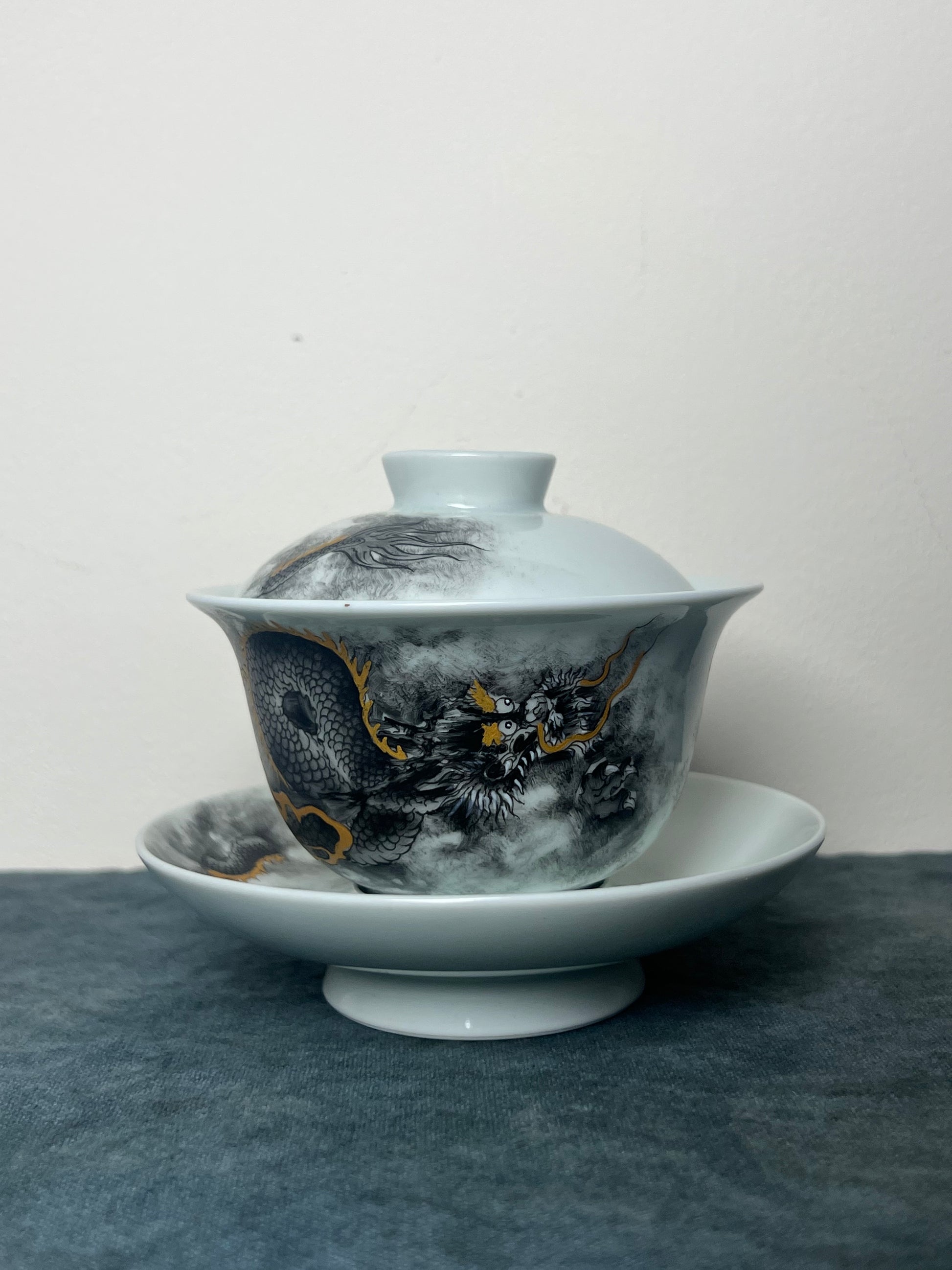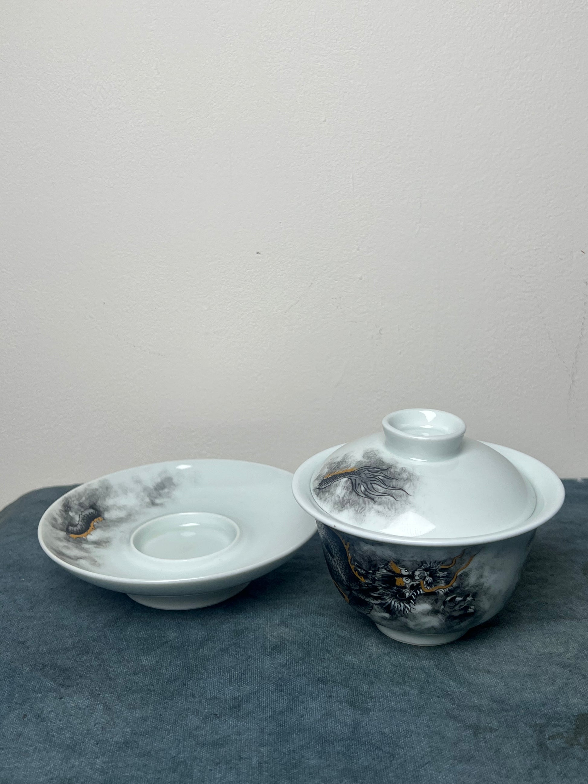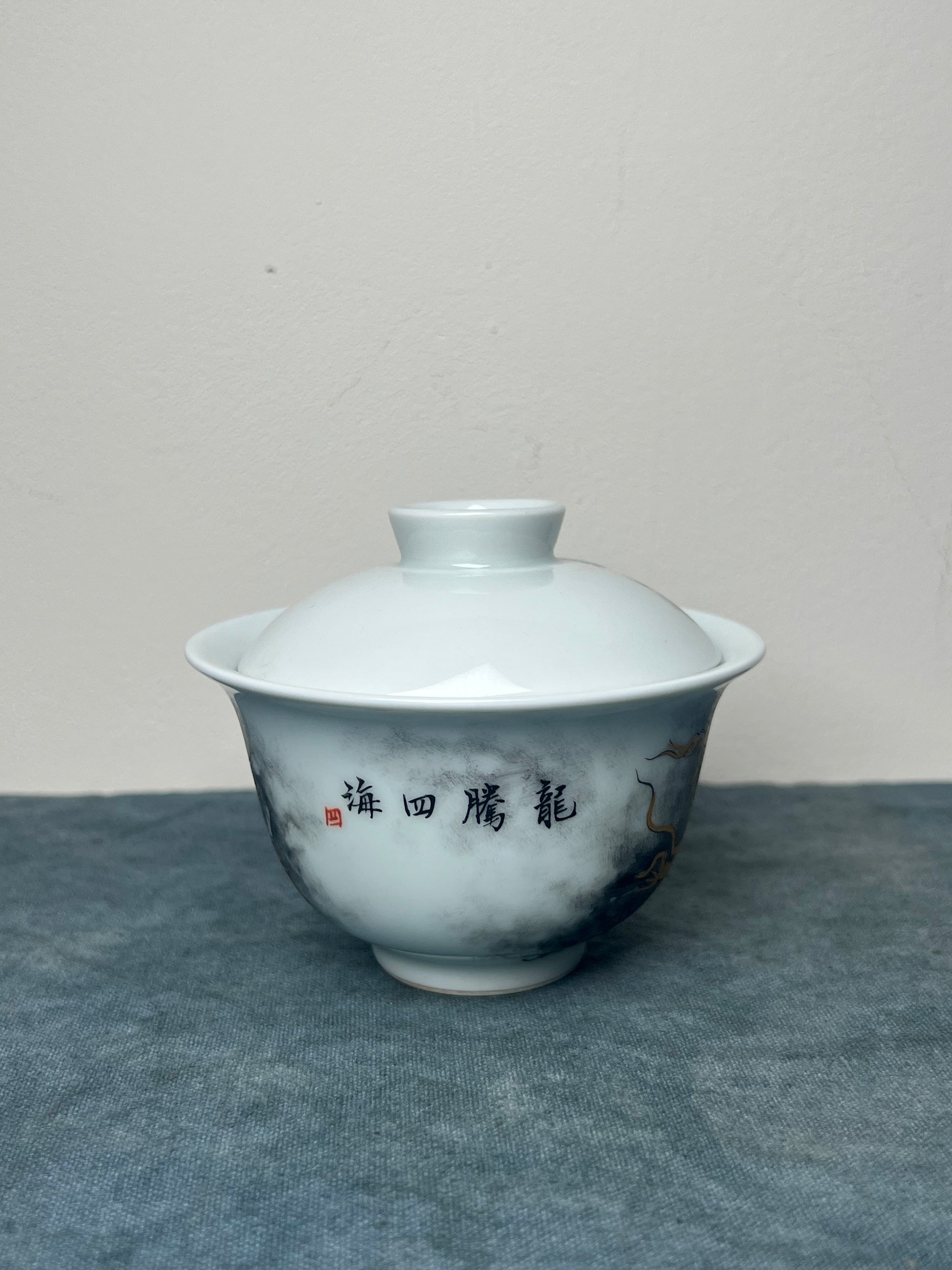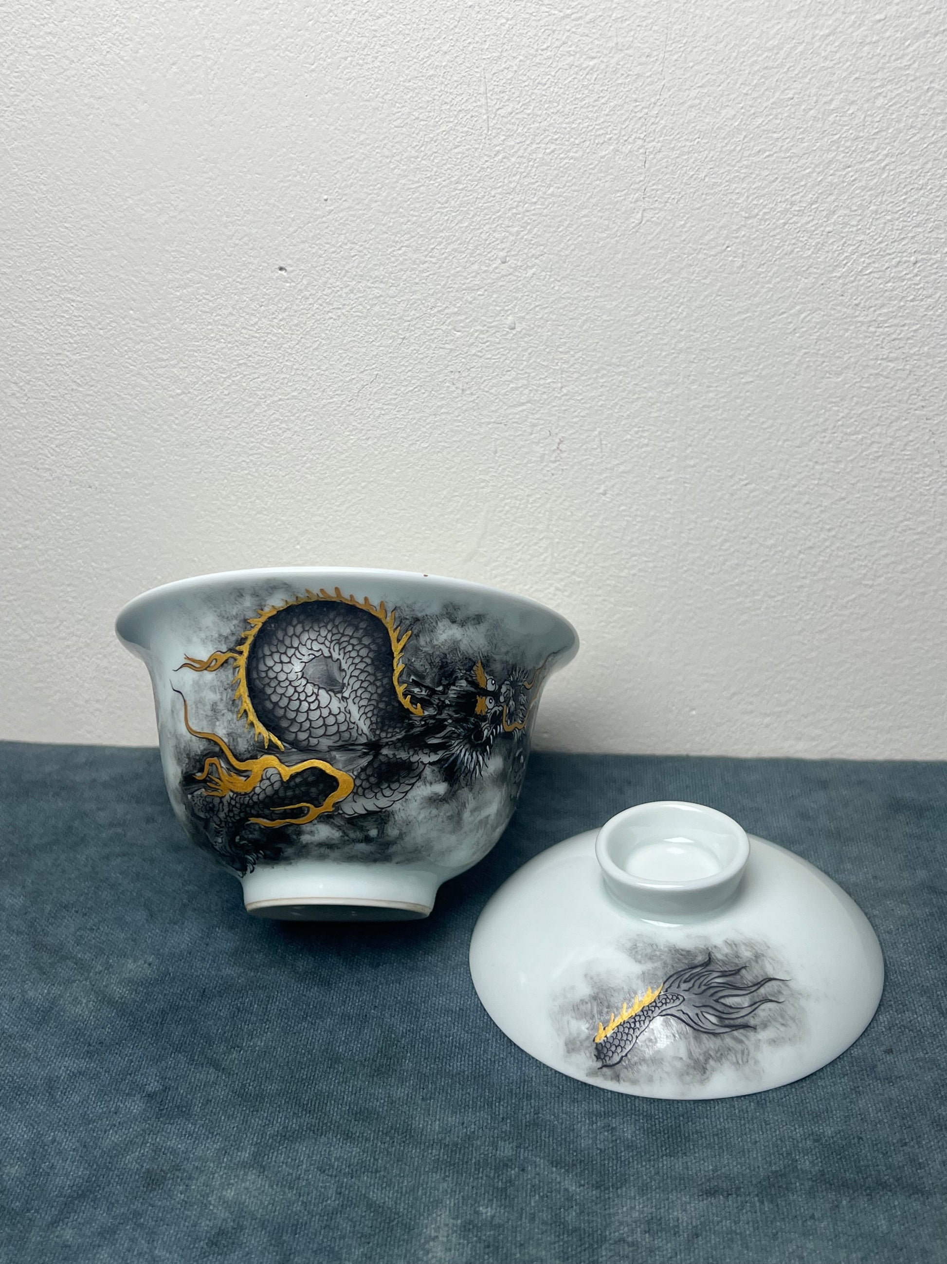 This Jingdezhen artwork teaware is painted with a Chinese dragon by Jingdezhen experienced Pottery painter, Wangbin.