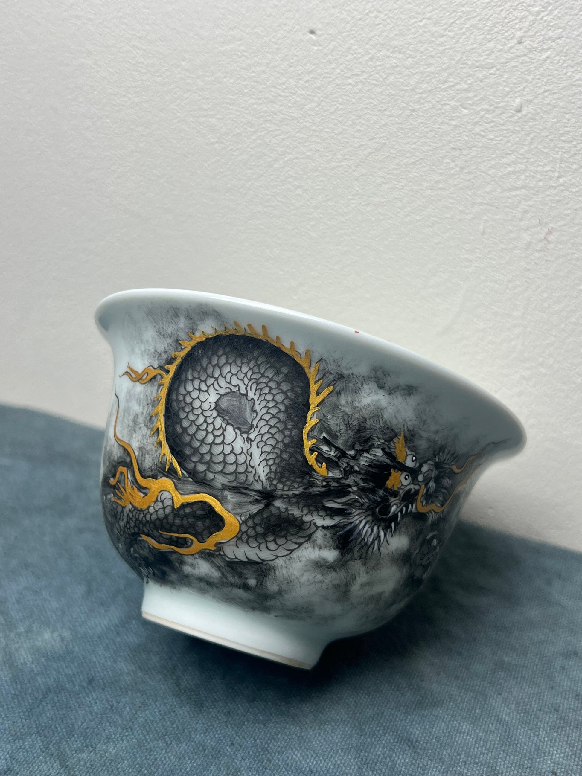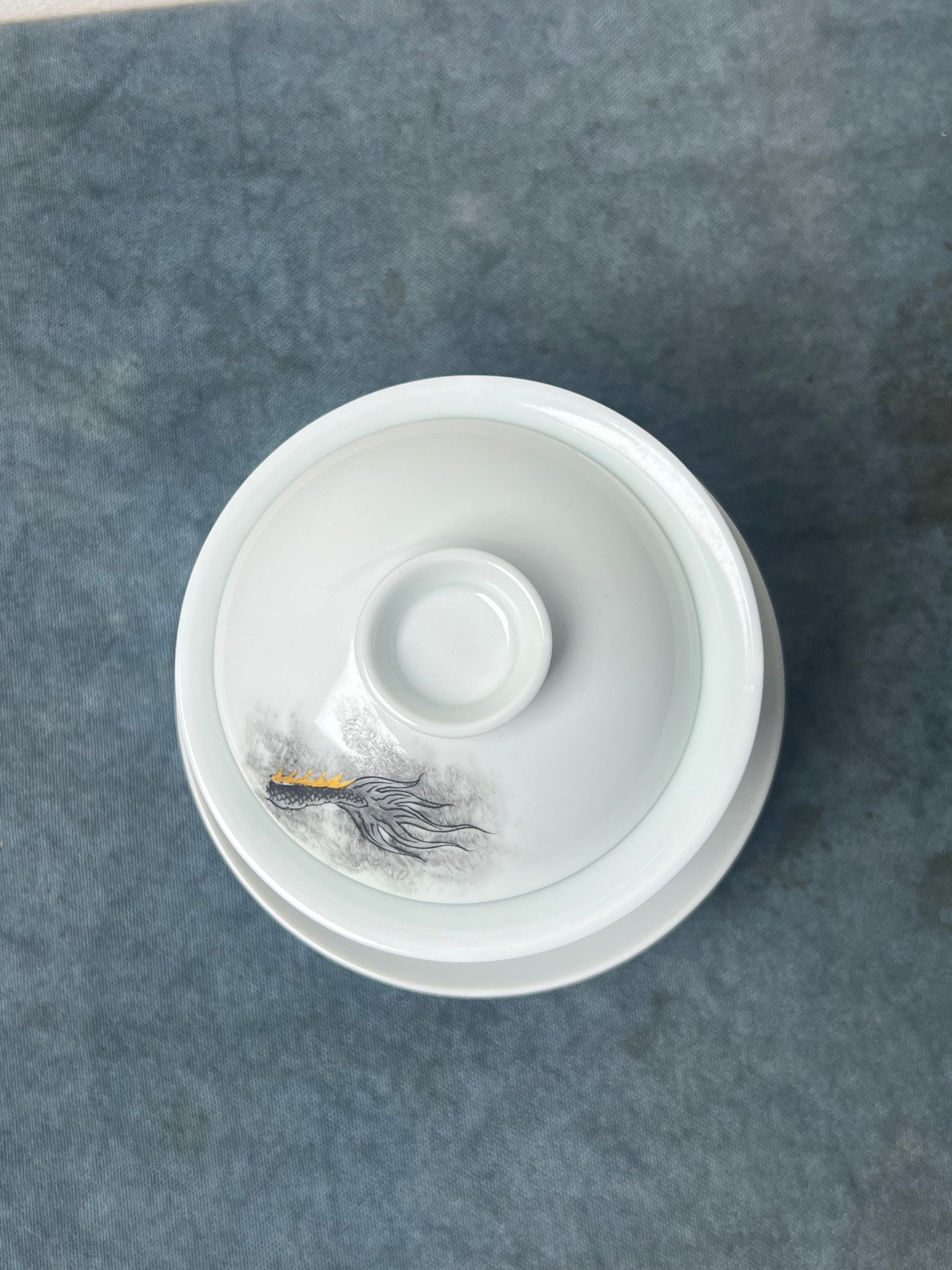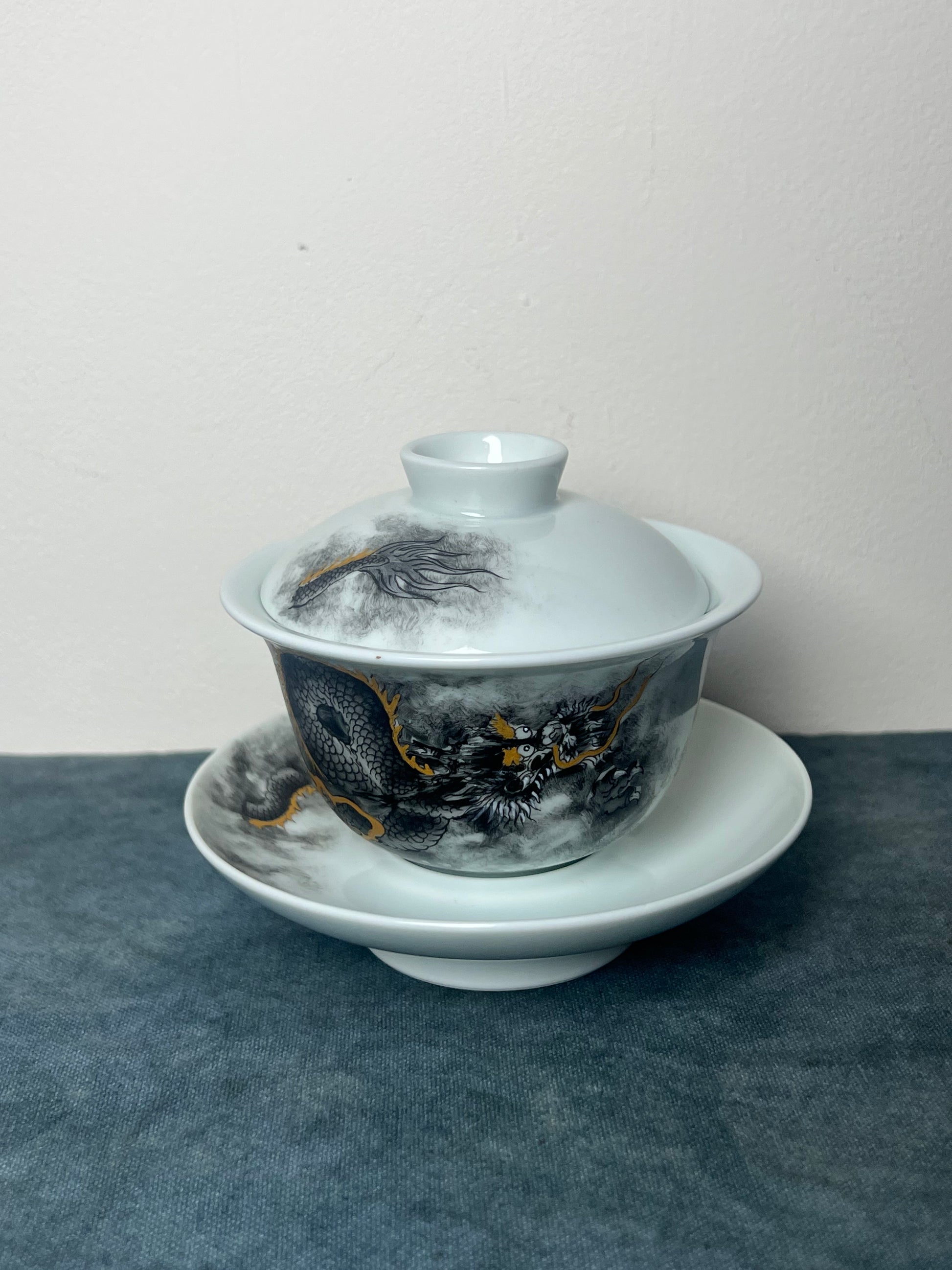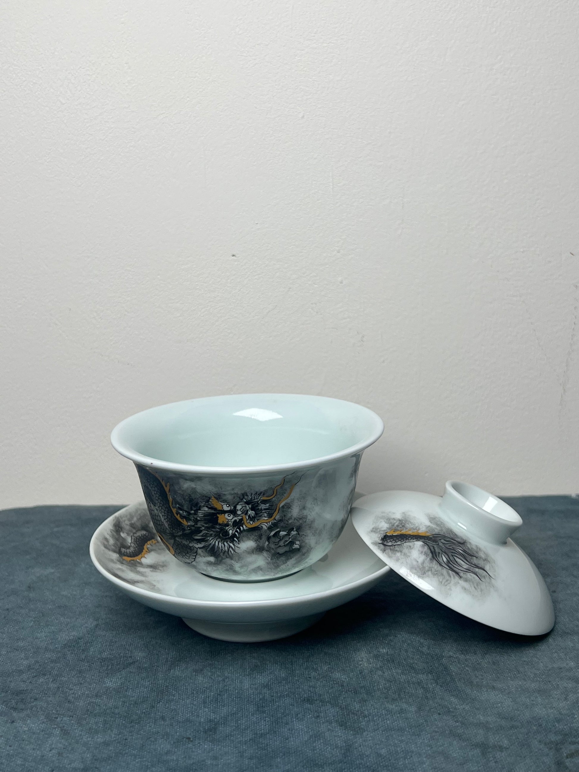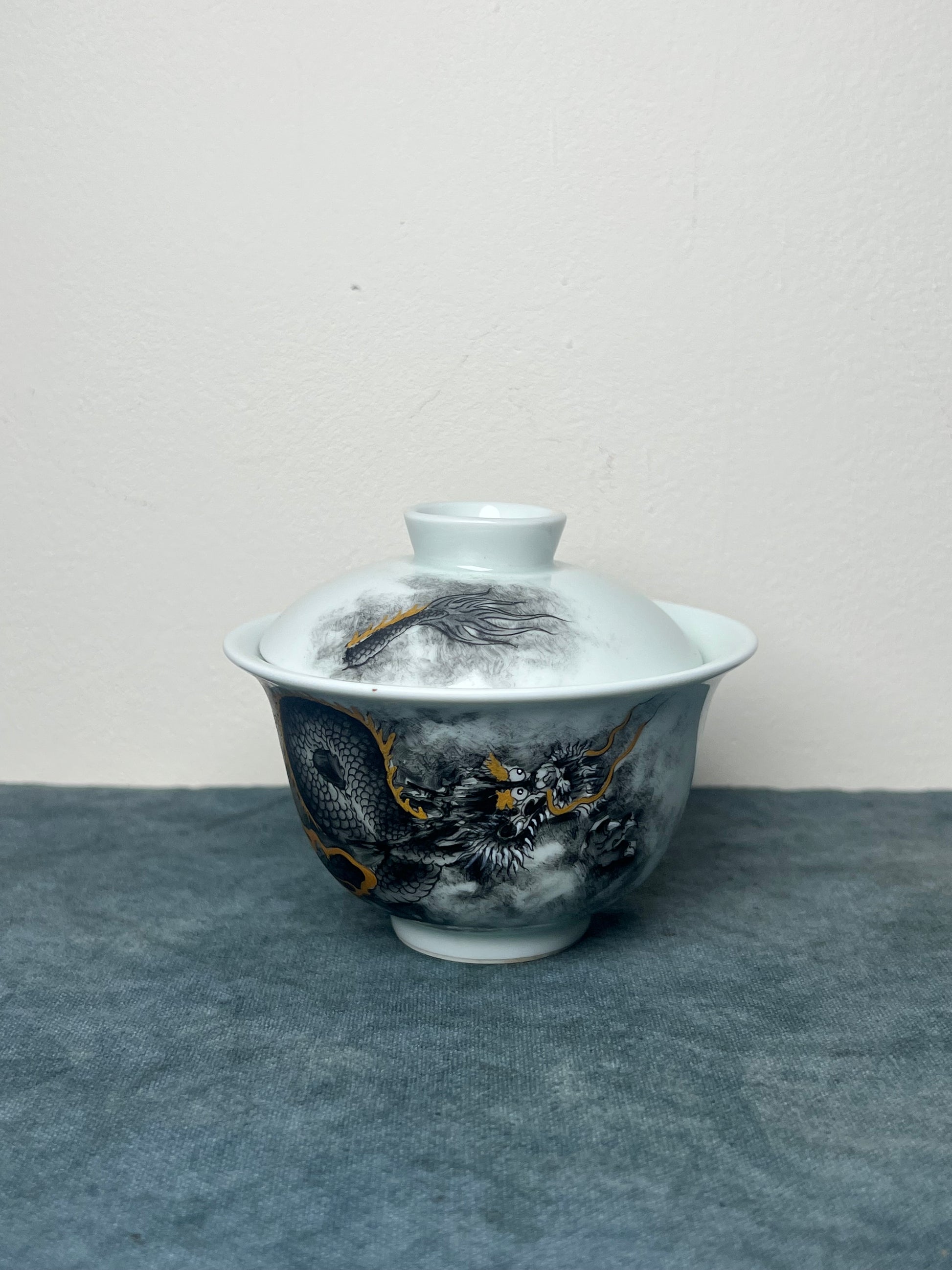 This Jingdezhen artwork teaware is painted with a Chinese dragon by Jingdezhen experienced Pottery painter, Wangbin.