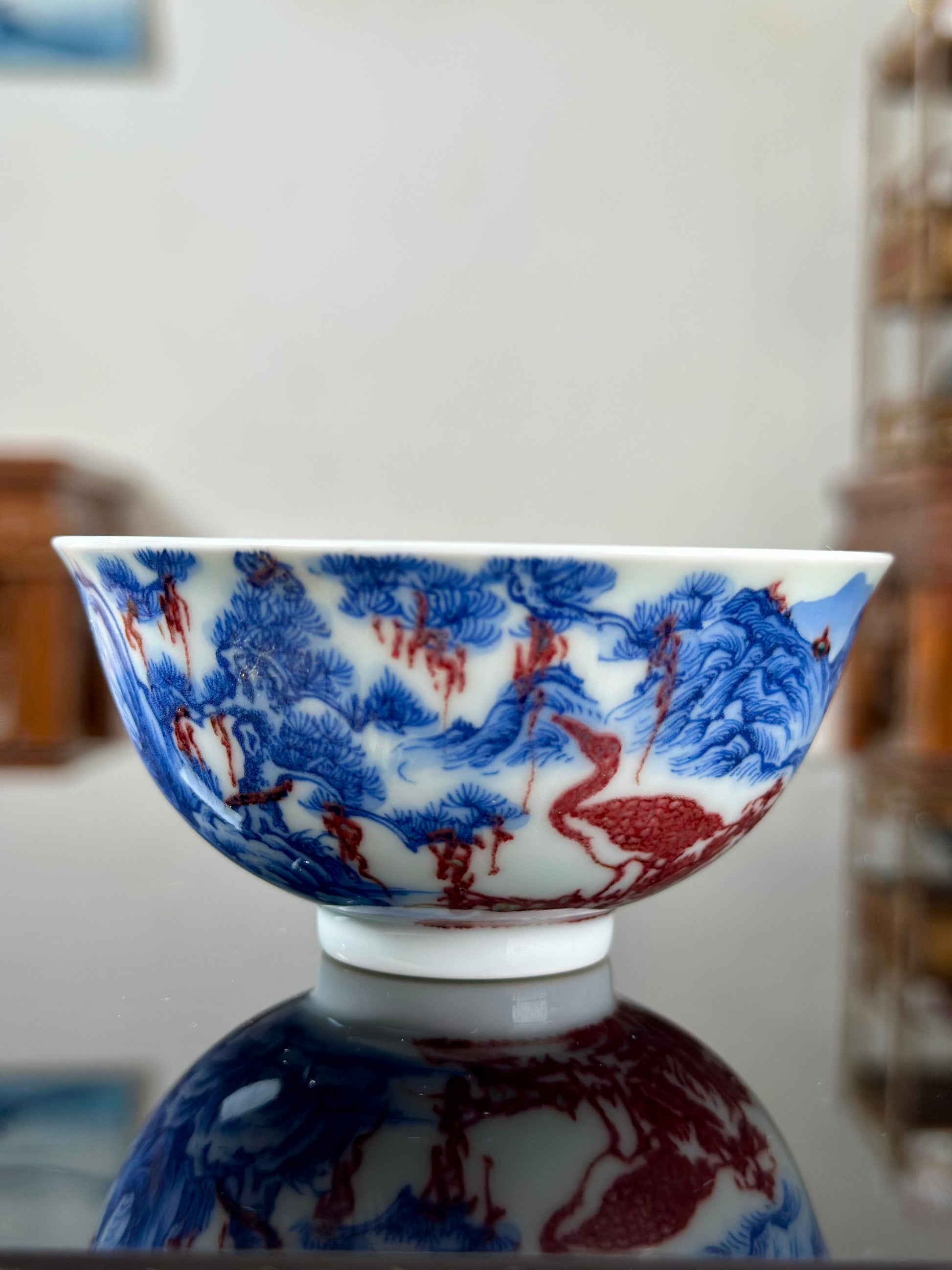 This Jingdezhen artwork teacup is handpainted with Chinese landscape and Chinese crane by an experienced Jingdezhen ceramic painter.