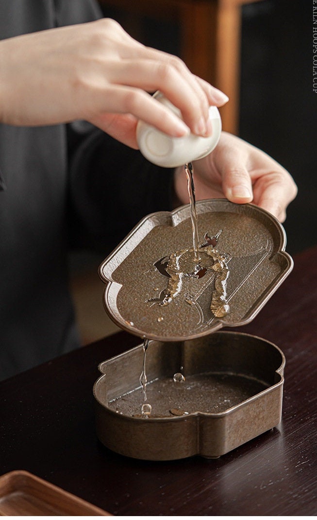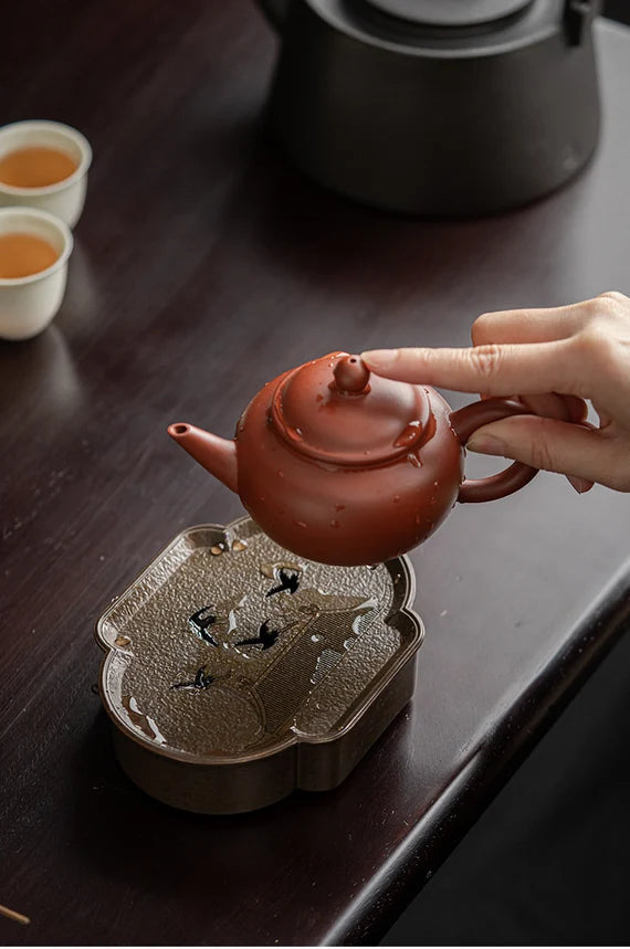 The pattern of the copper tray is inspired by a very famous paint of Emperor Huizong of Song: Auspicious Cranes. The tea tray is forged by Fujian copper artisan with Chinese traditional copper crafts. The tray is very exquisite and fit all teapot colors.
