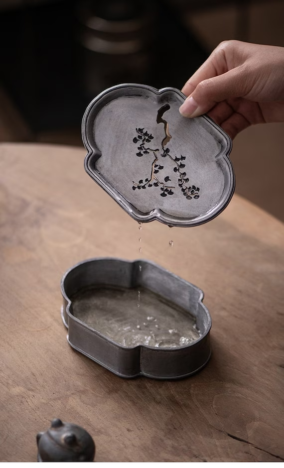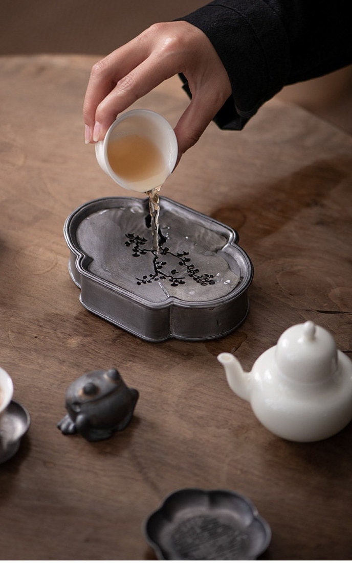Handforging Pure Tin Tea Tray Tea Boat Artwork Chinese Tea Boat Tea Tray Gongfu Tray