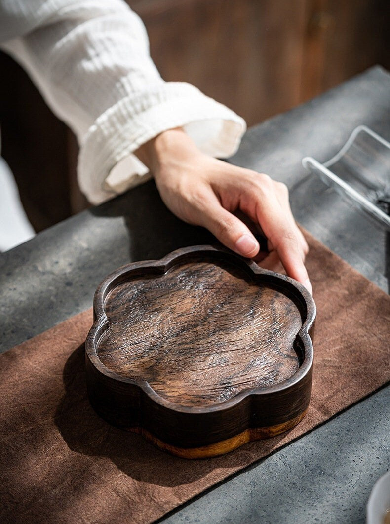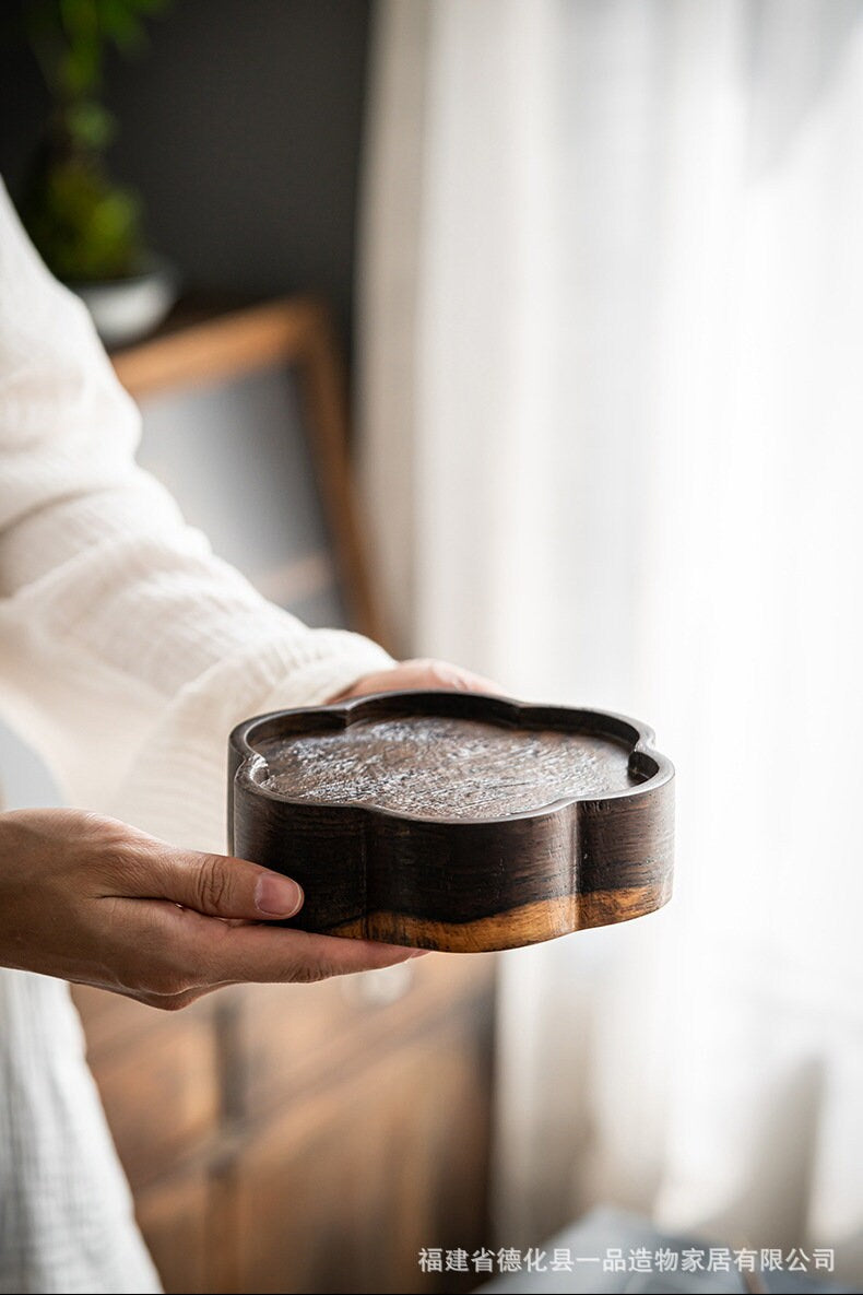 Handmade Chinese Black Ebony Wood Dry Tea Tray Tea Boat Flower Tea Boat Origial Tray Teapot Saucer