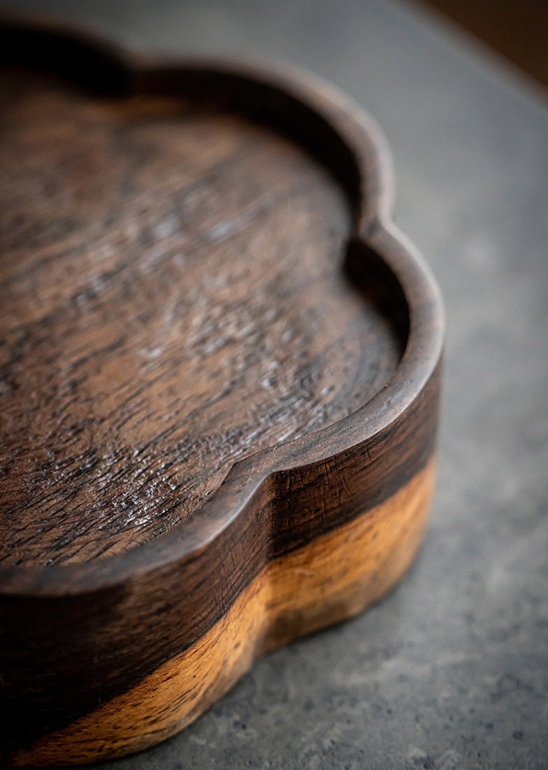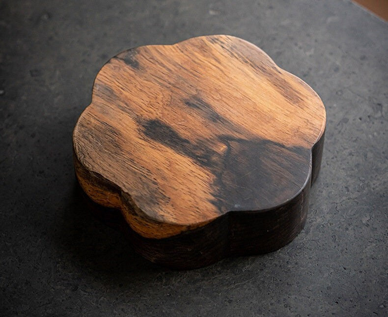 This natural and unique wood teapot tray is made of Chinese black ebony. The wood is shiny and has no special odor and it's not easy to crack. The ebony with natural streaks is very classic for putting tea teapot. Please understand that the wood effct of every piece is different and unique :)