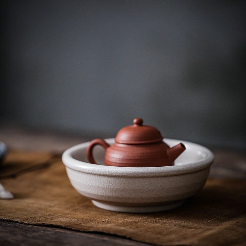 Handmade Iced Crackled Teapot Holder Dry Tea Tray Chinese Master Artwork Teapot Holder Tea Boat