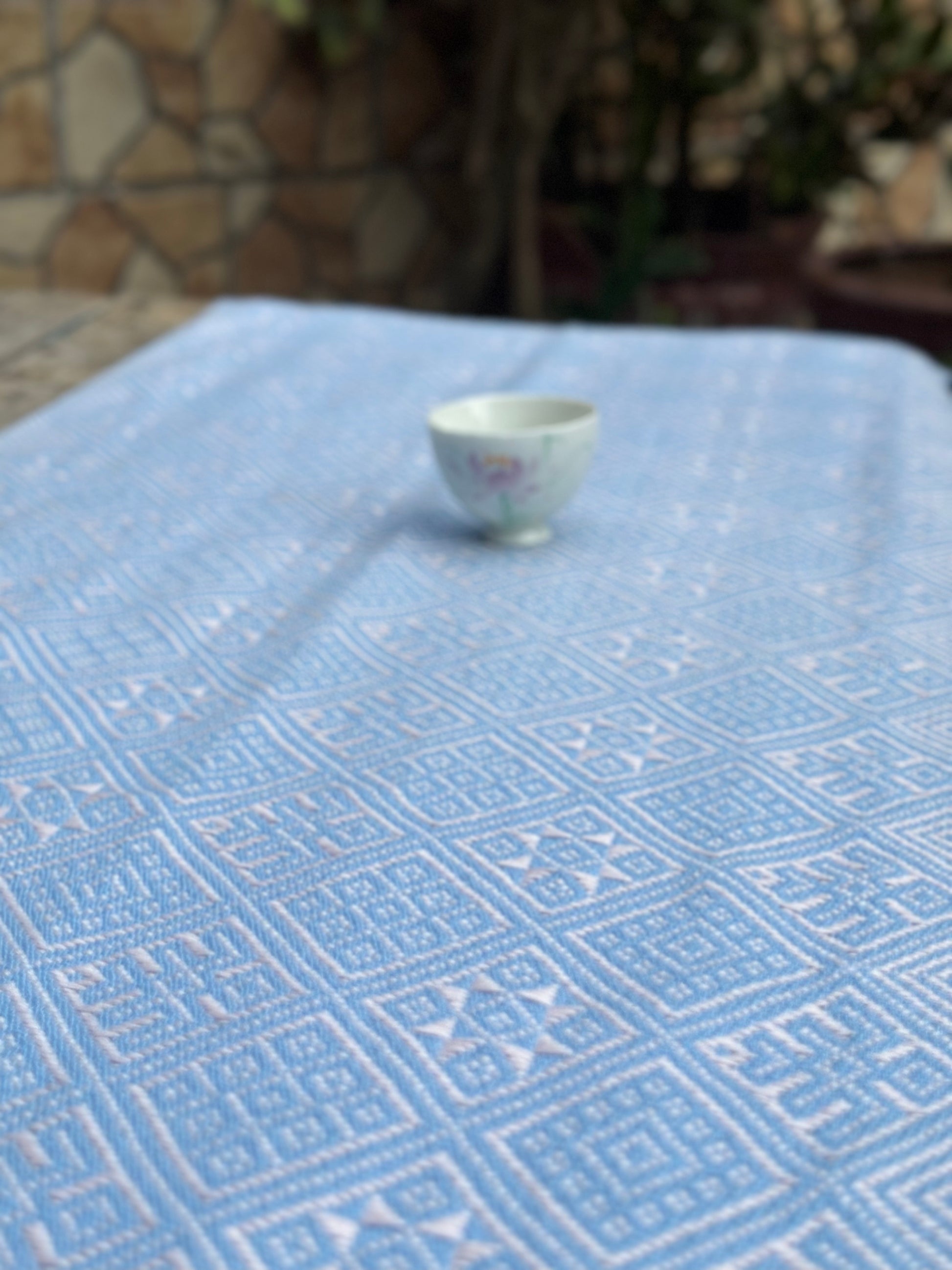 High-end Handcrafted Swallow Field Anise Pattern Chinese Blue white Zhuang Brocade Silk Cloth Scarf Tea Table Cloth