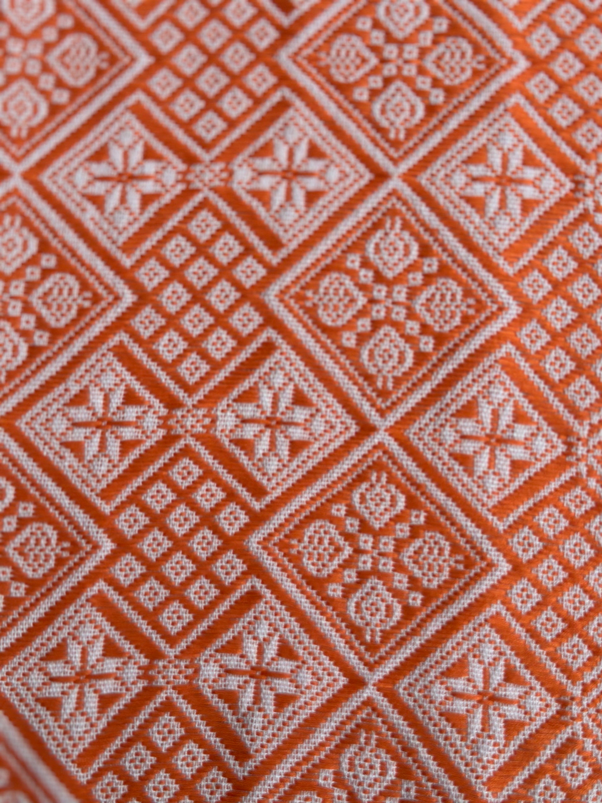 High-end Handcrafted Anise Pattern Chinese Orange White Zhuang Brocade Silk Cloth Scarf Tea Table Cloth