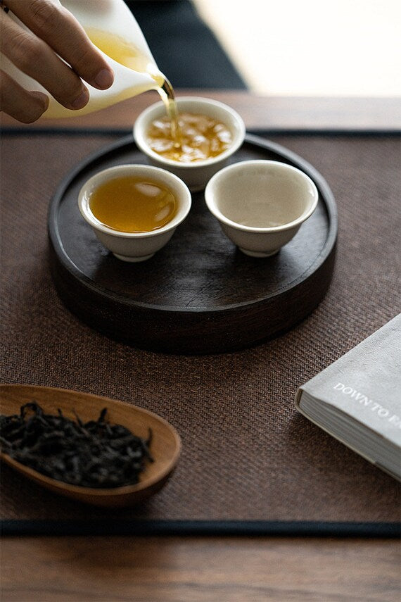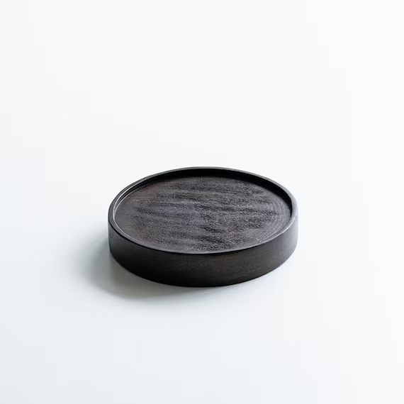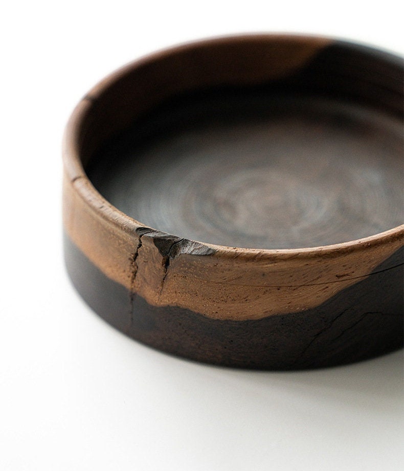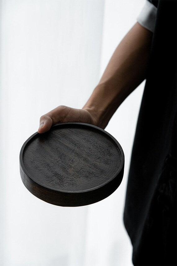 Wood Tea Tray Handcrafted Original Round Black Ebony Tea Boat Mini Tea Table