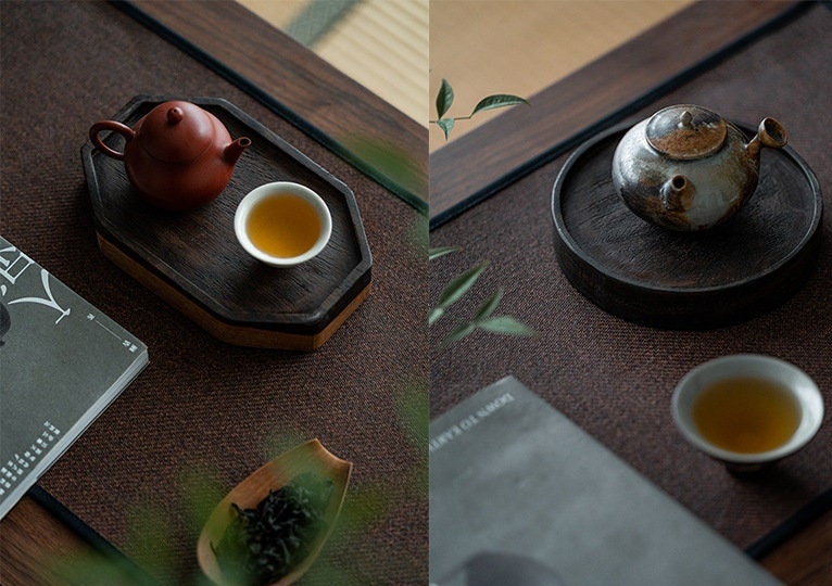 This tea tray is made of high-quality Chinese black ebony wood. The texture of each wood tray is different from one to one. Please understand that the yellow texture part is random and every piece is well selected. This black tray can match with many style and varied colored teapots.