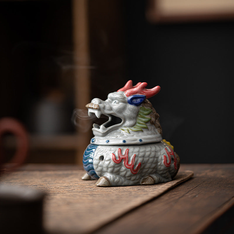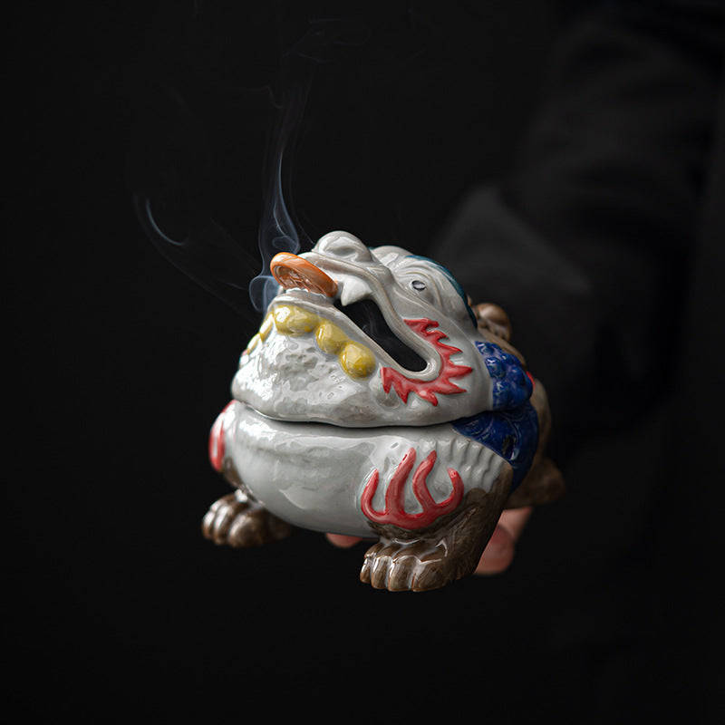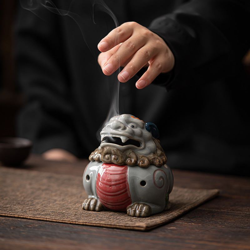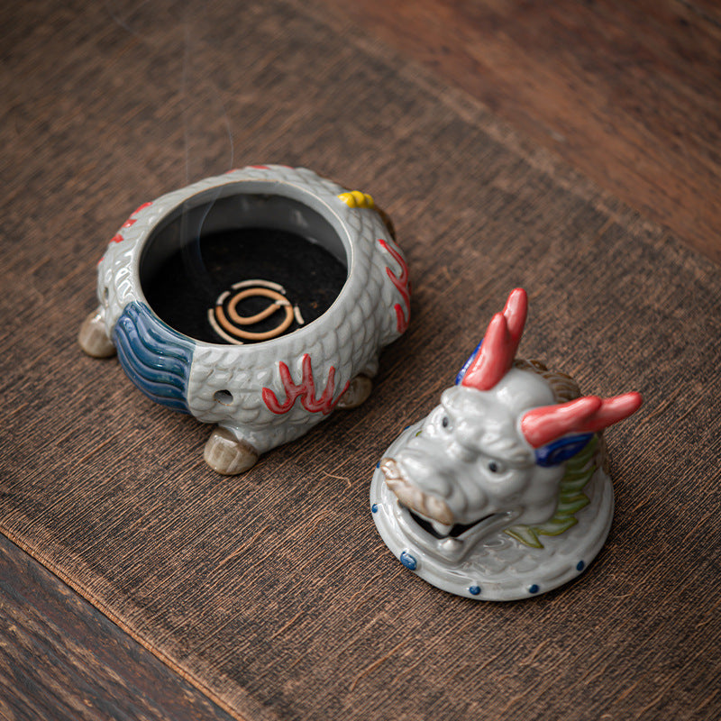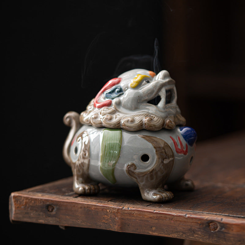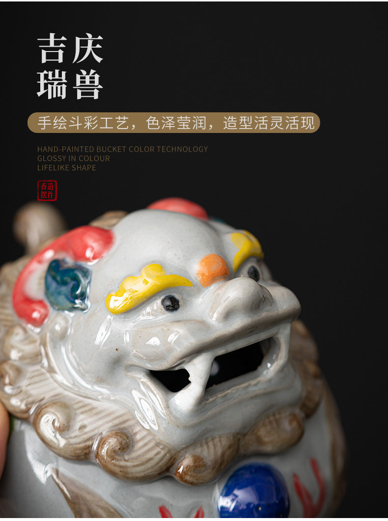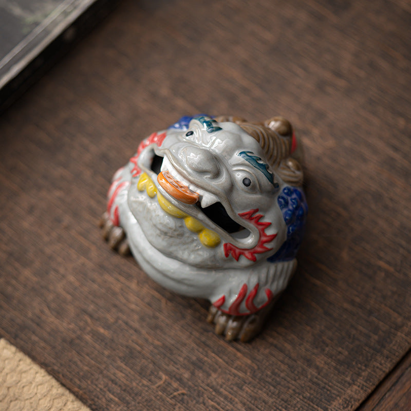 Suanni looks like a lion. It likes to be quiet but not active. It likes to sit and likes fireworks. It is often used to decorate the feet of incense burners.