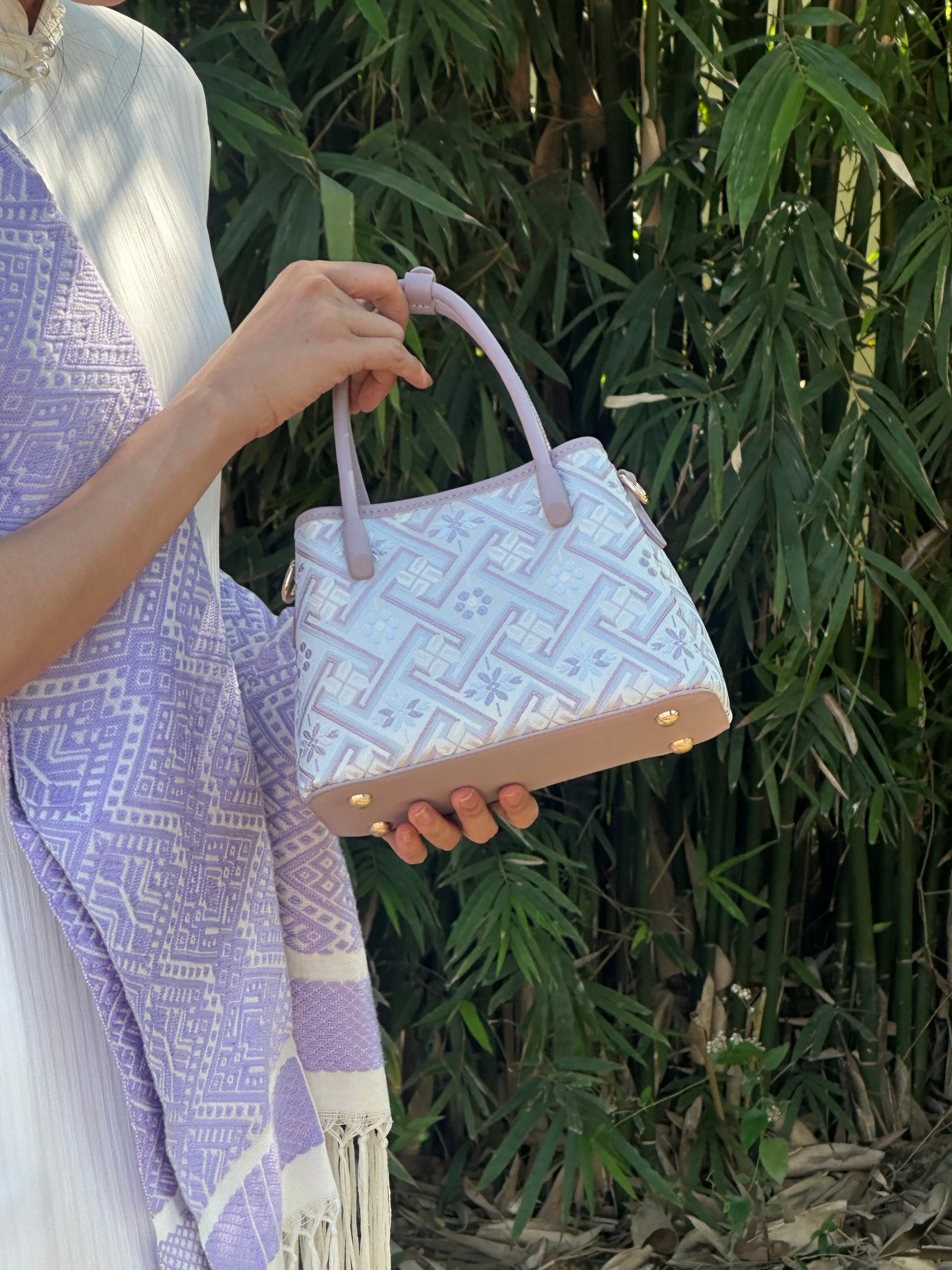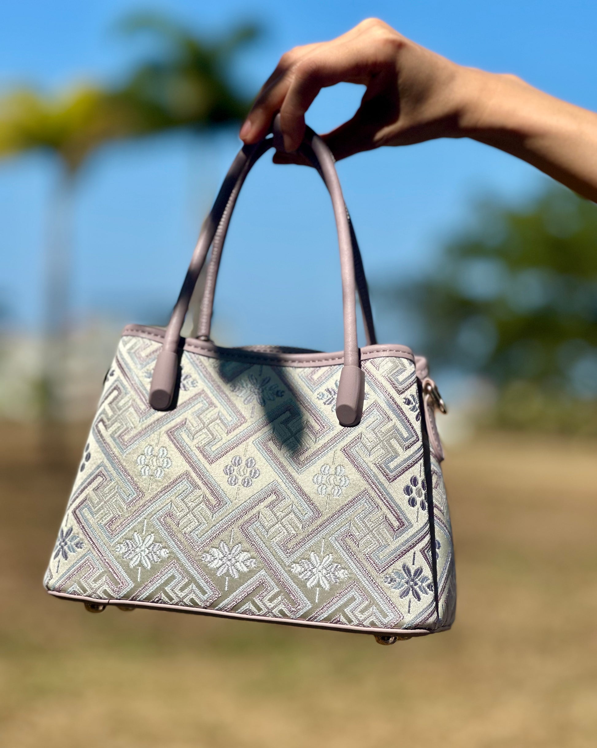 Handmade Chinese High-class Zhuang Brocade Wanji Pattern Classic Purple Handle Bag