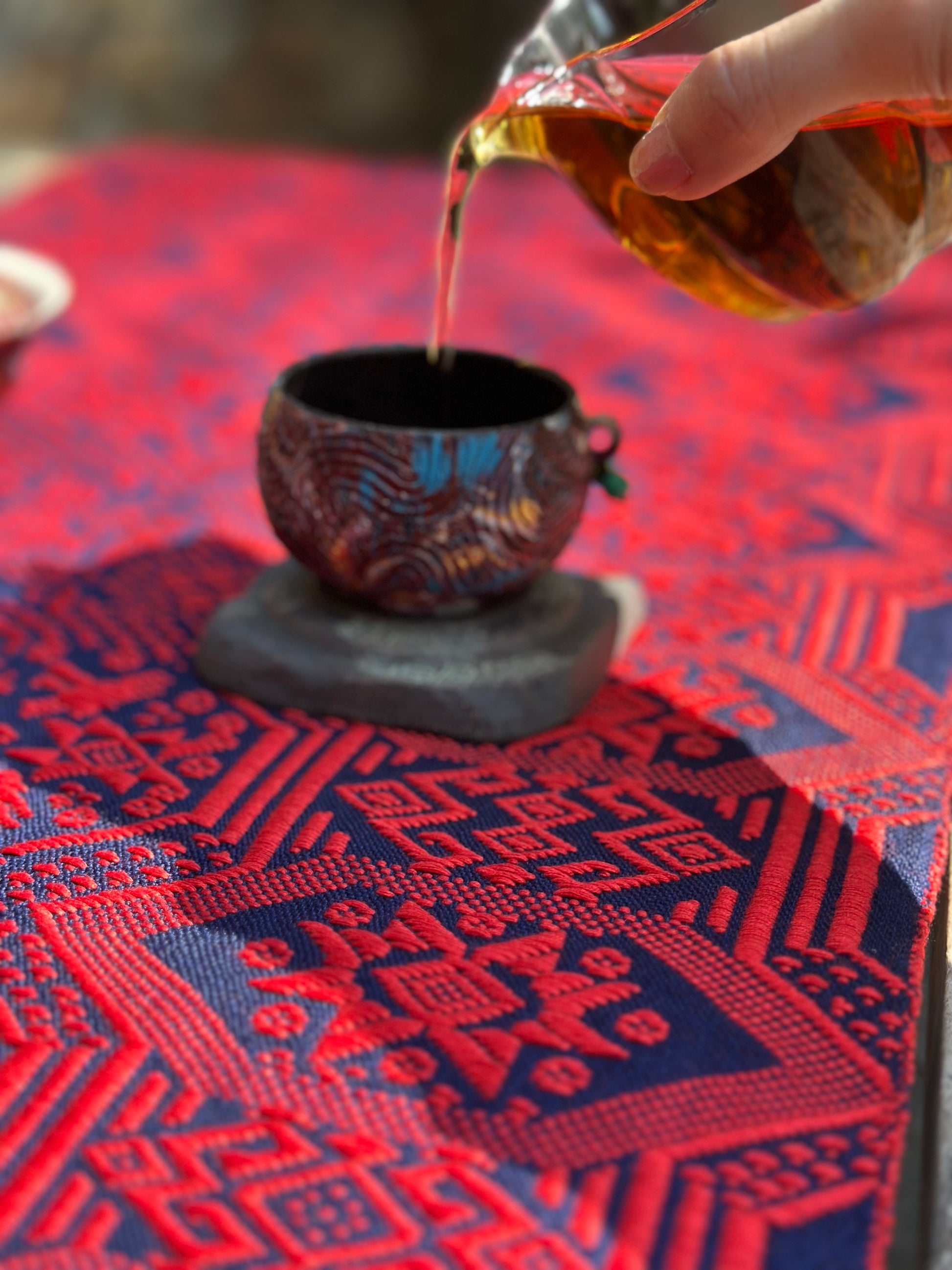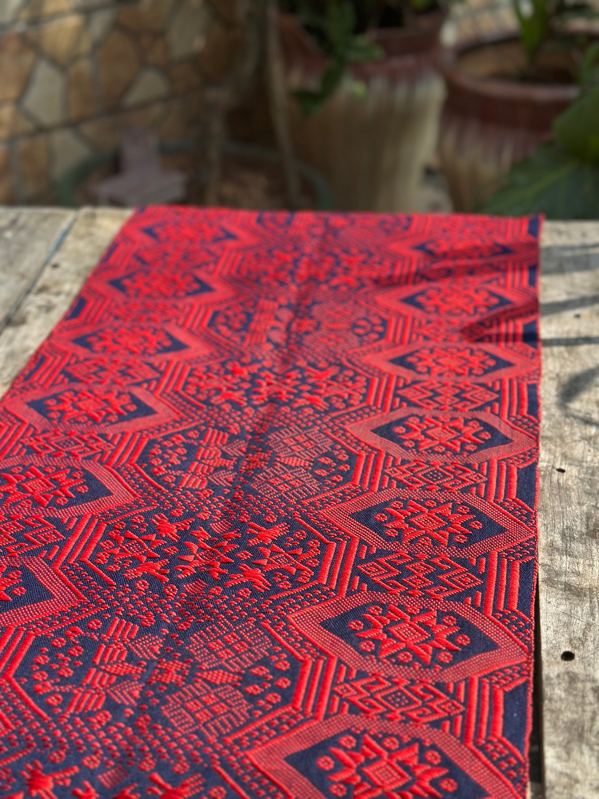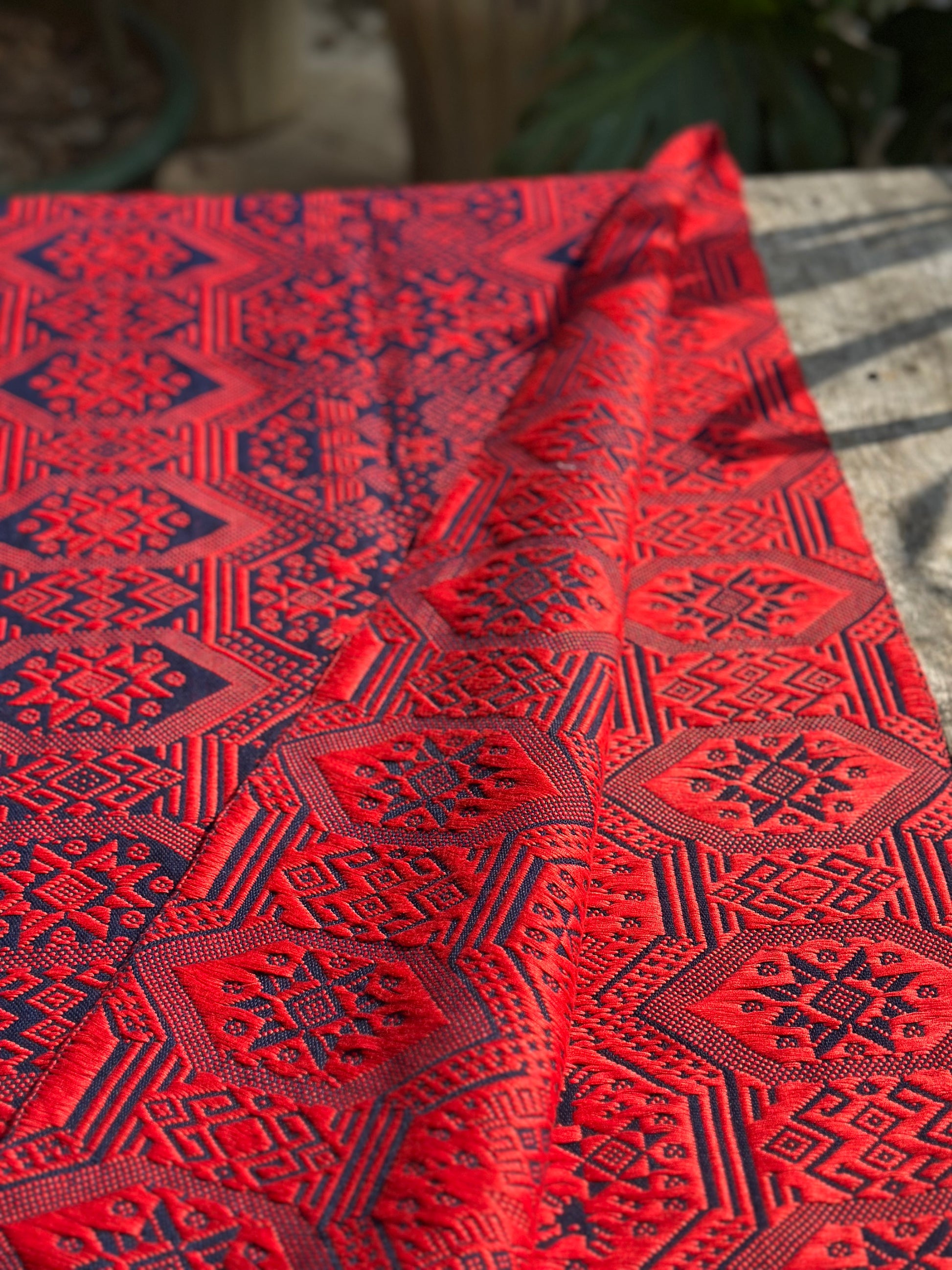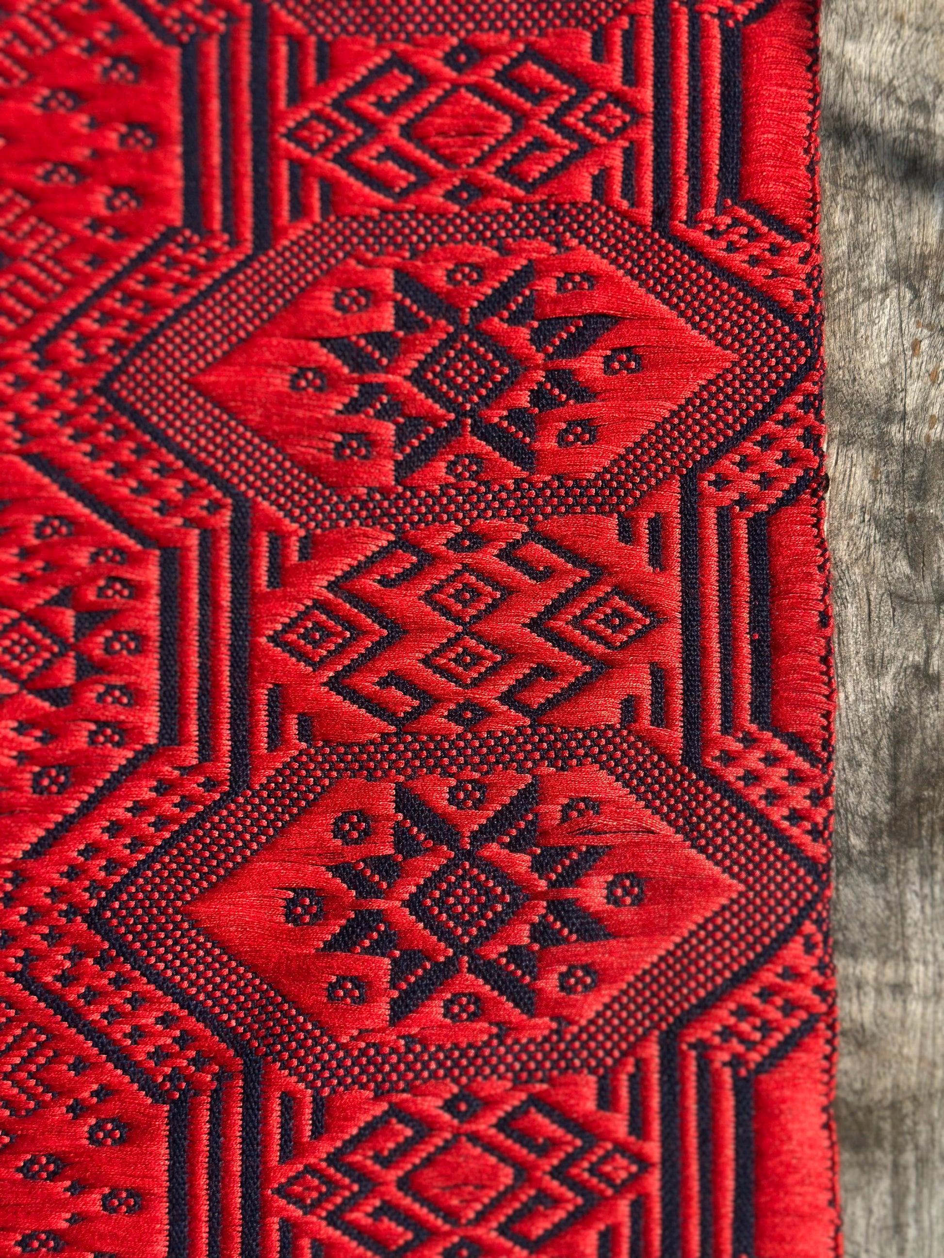 High-end Handcrafted Orange Red Blue Phoenix Dragon Pattern Chinese Zhuang Brocade Silk Cloth Scarf Tea Table Cloth